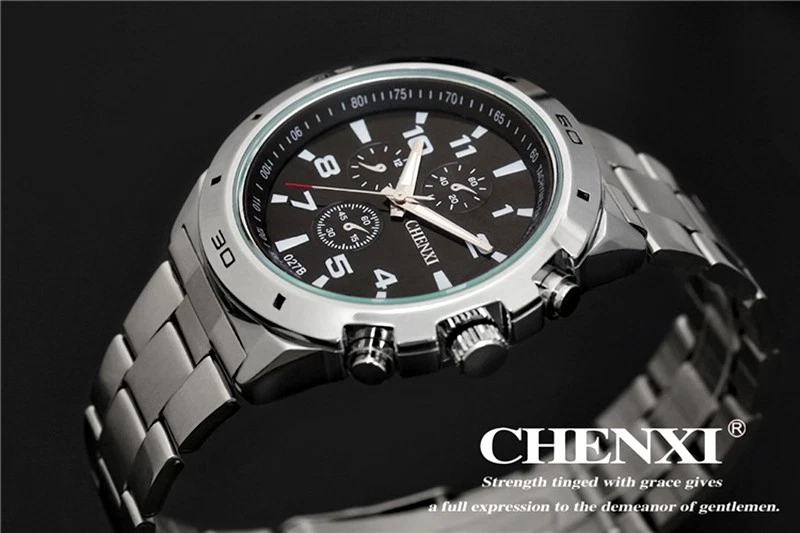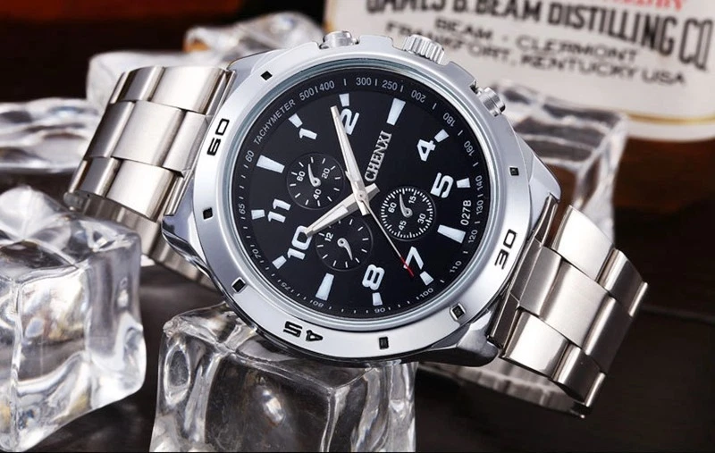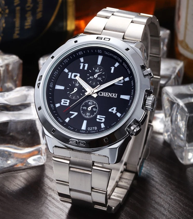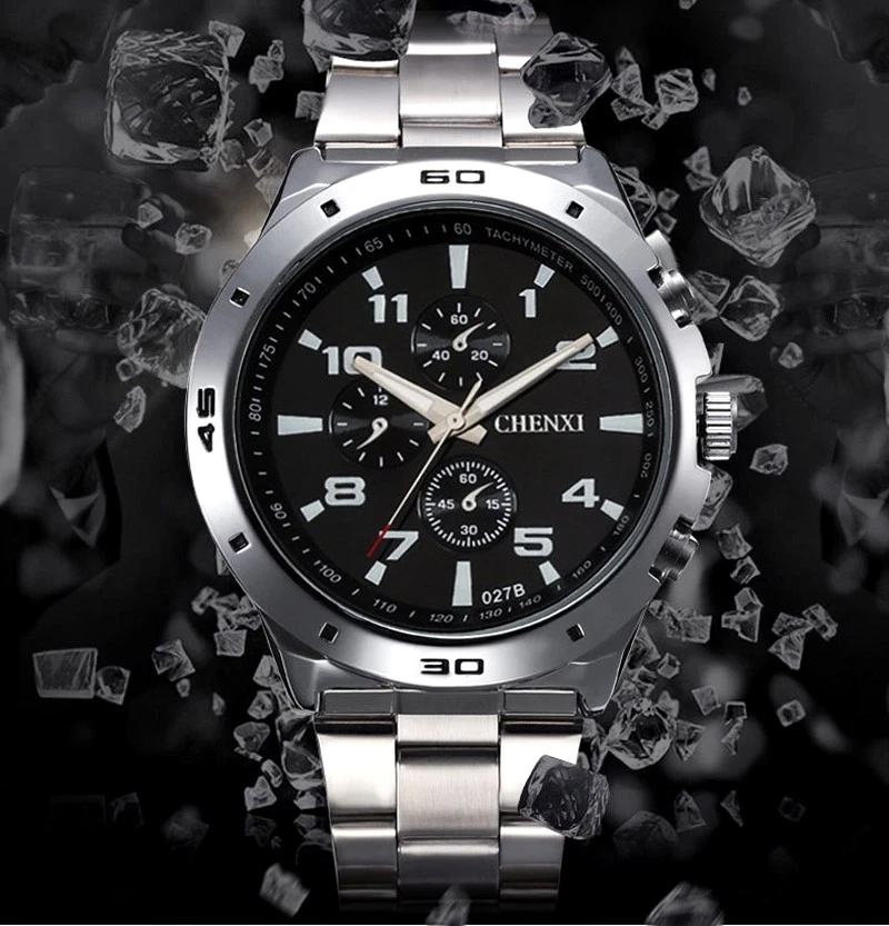 Stainless Steel Men`s 30m Waterproof 3 Decoration Dials Business Quartz Watches