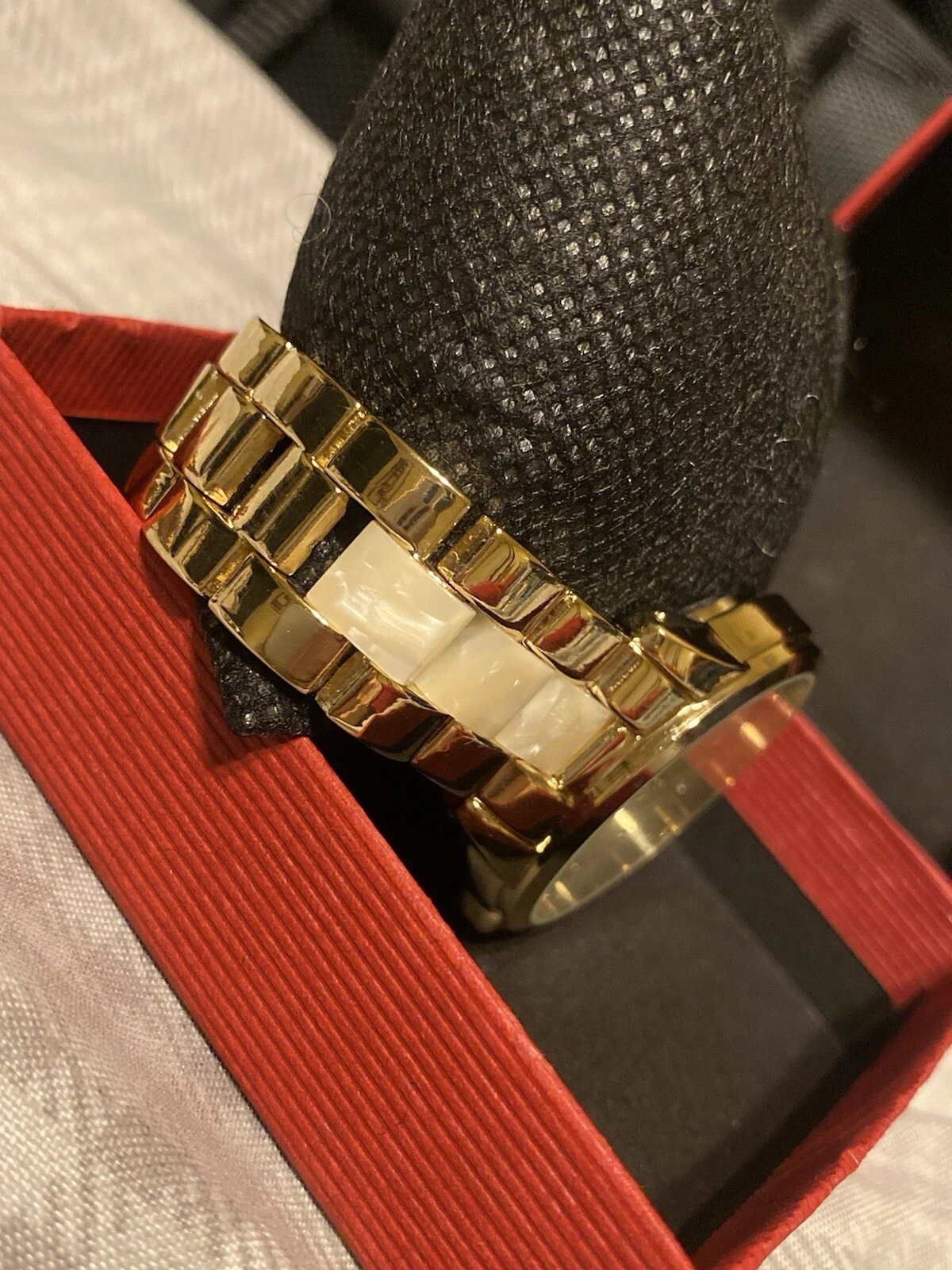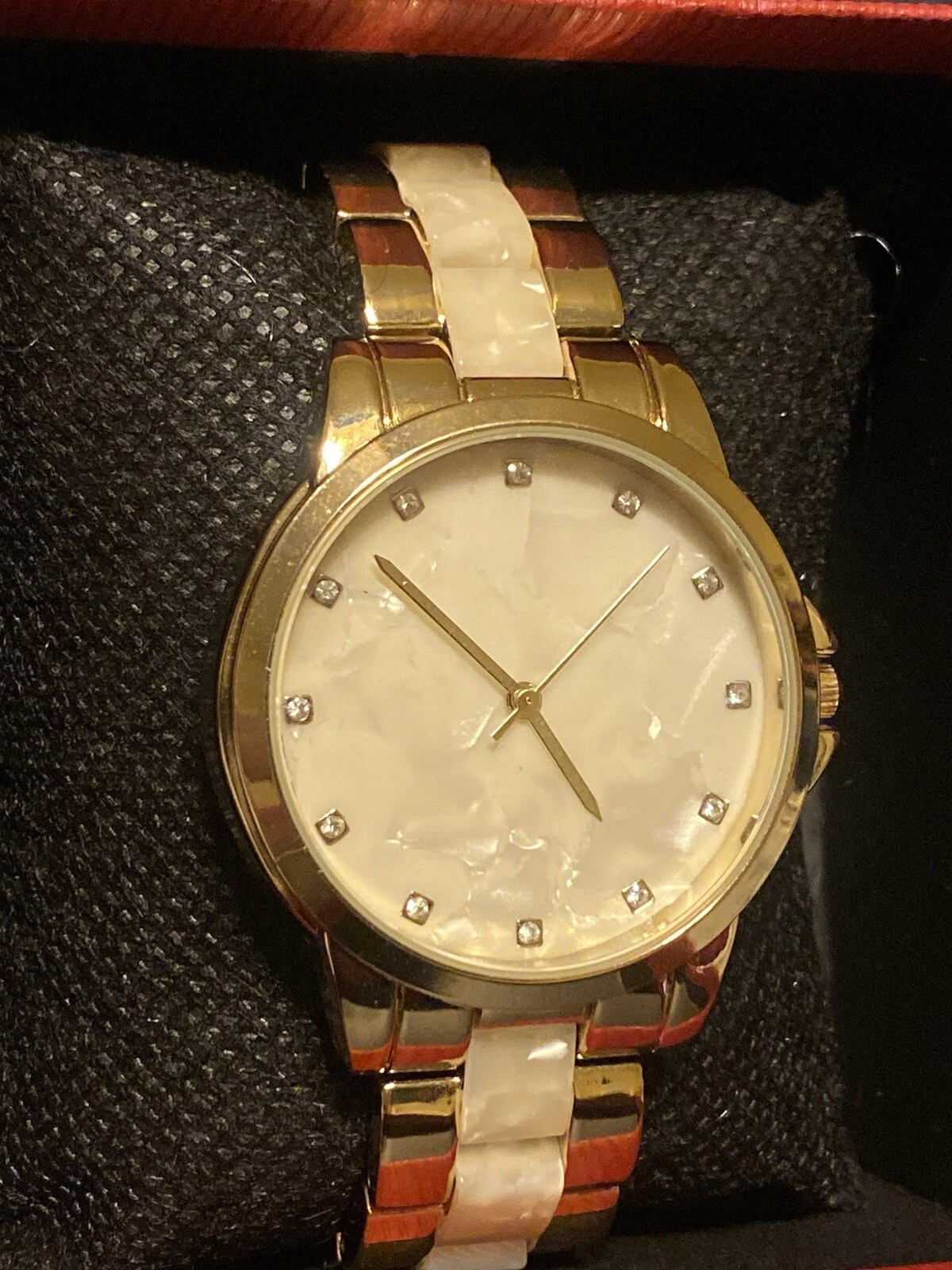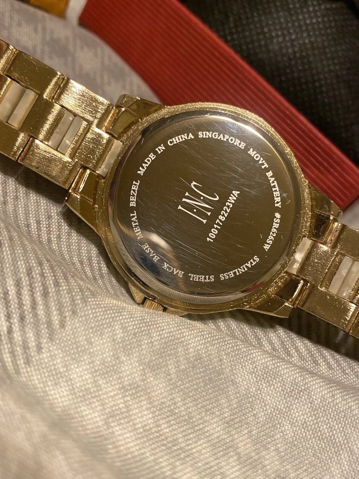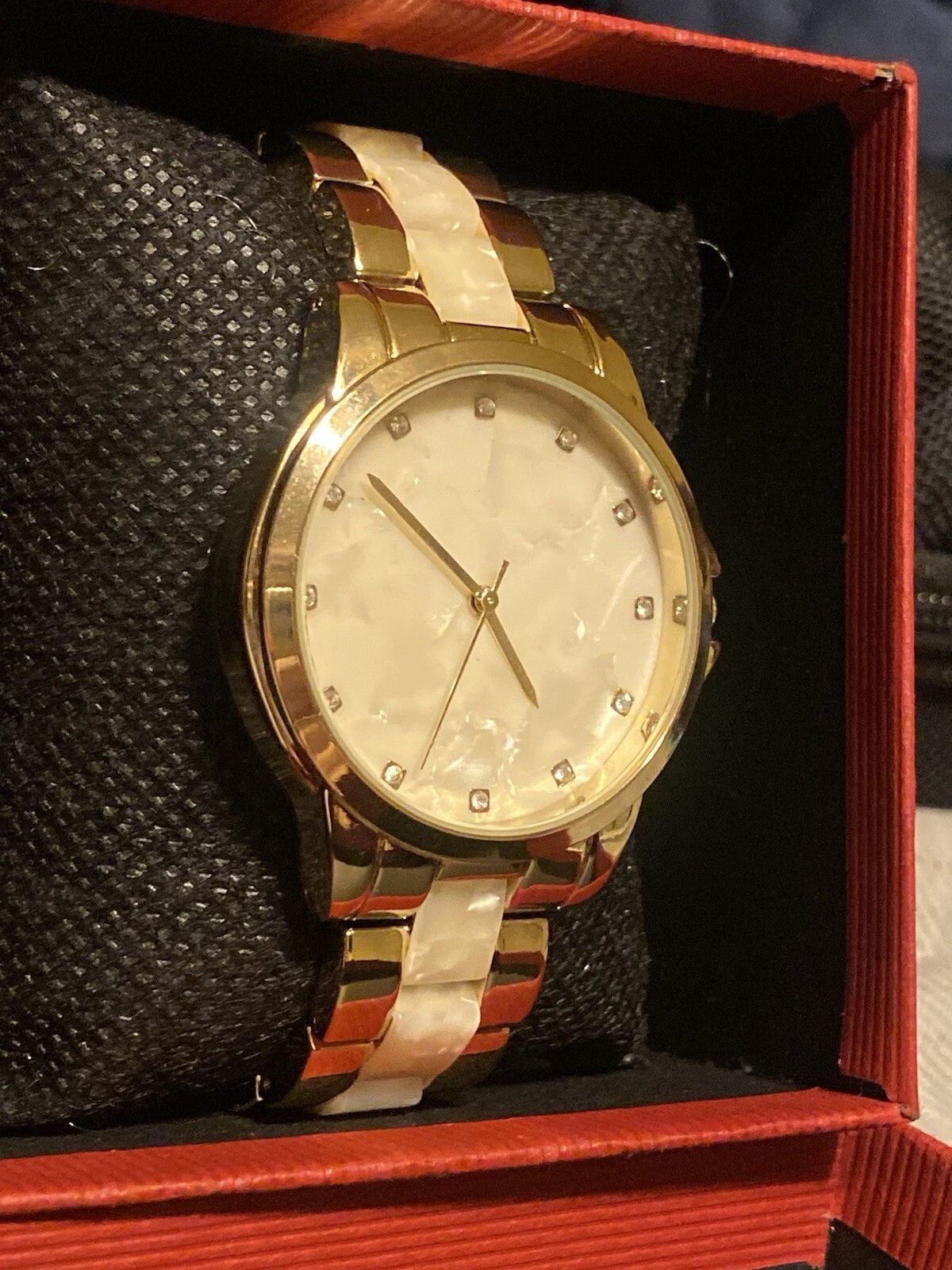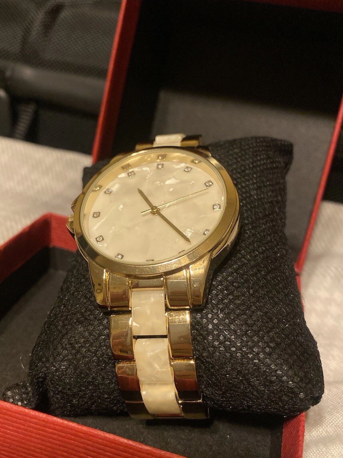 INC International Gold/ Pearl Tone Women’s 38MM Watch W/ Crystals NEW Battery