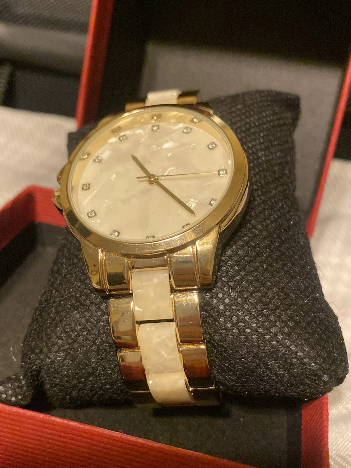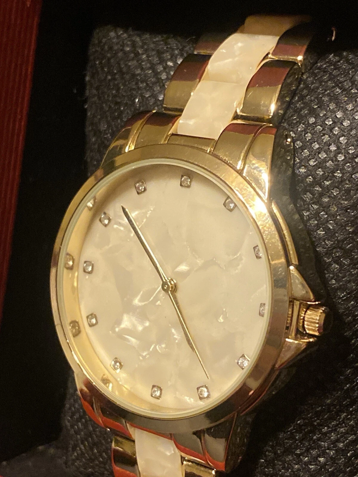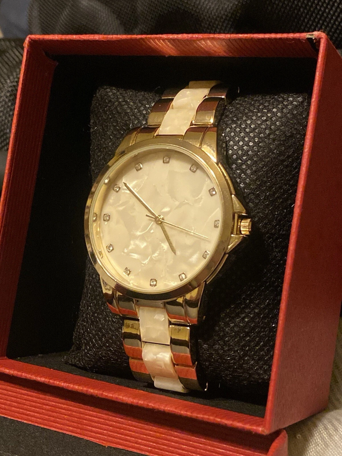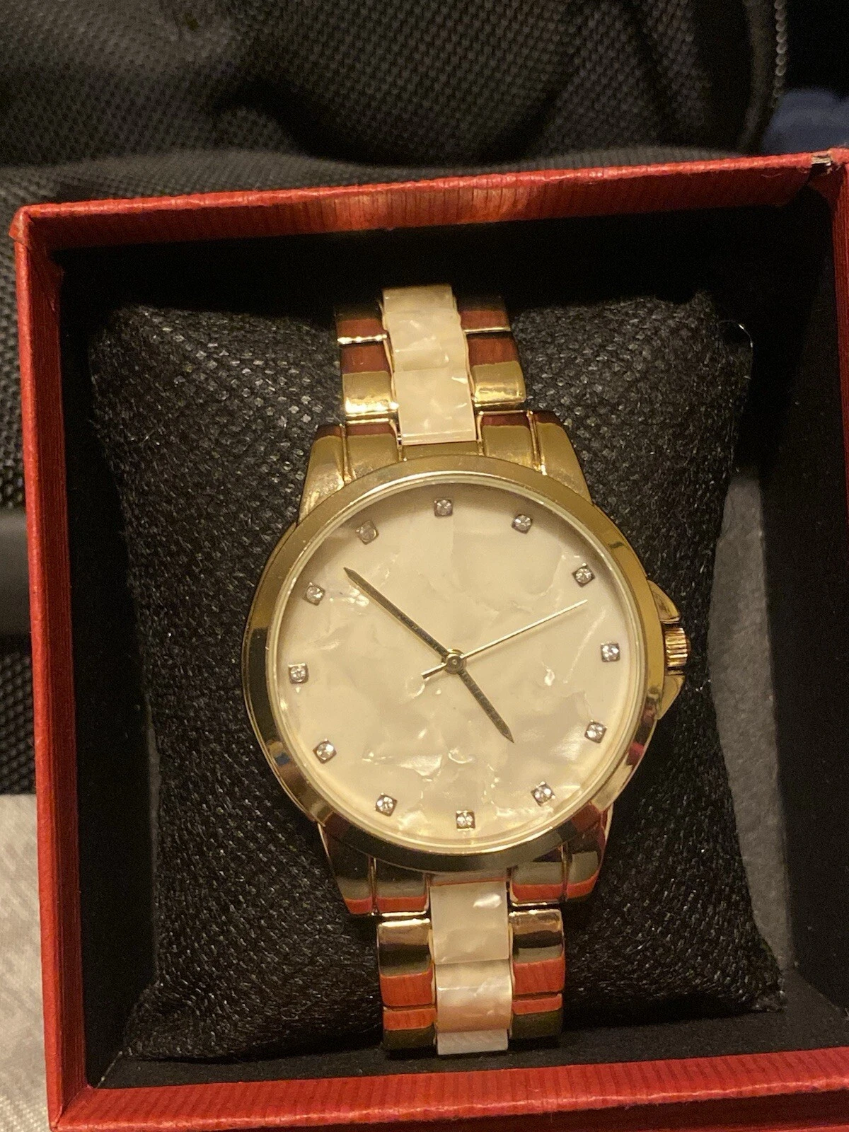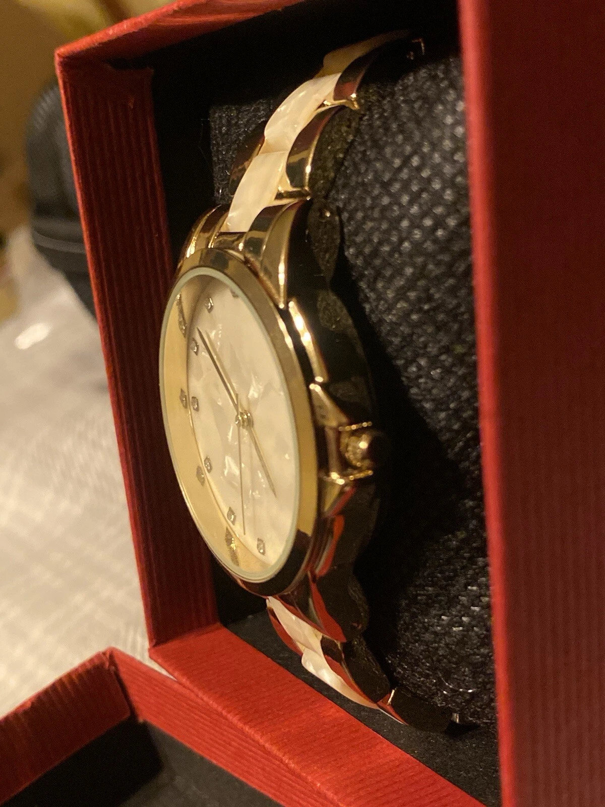 INC International Gold/ Pearl Tone Women’s 38MM Watch W/ Crystals NEW Battery