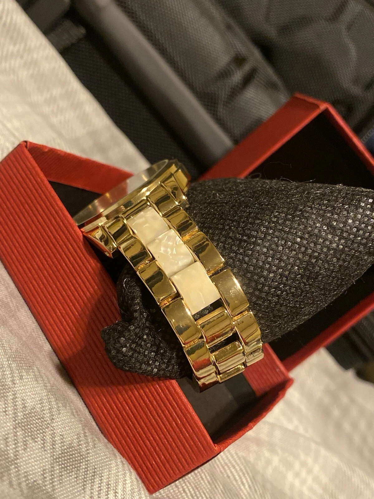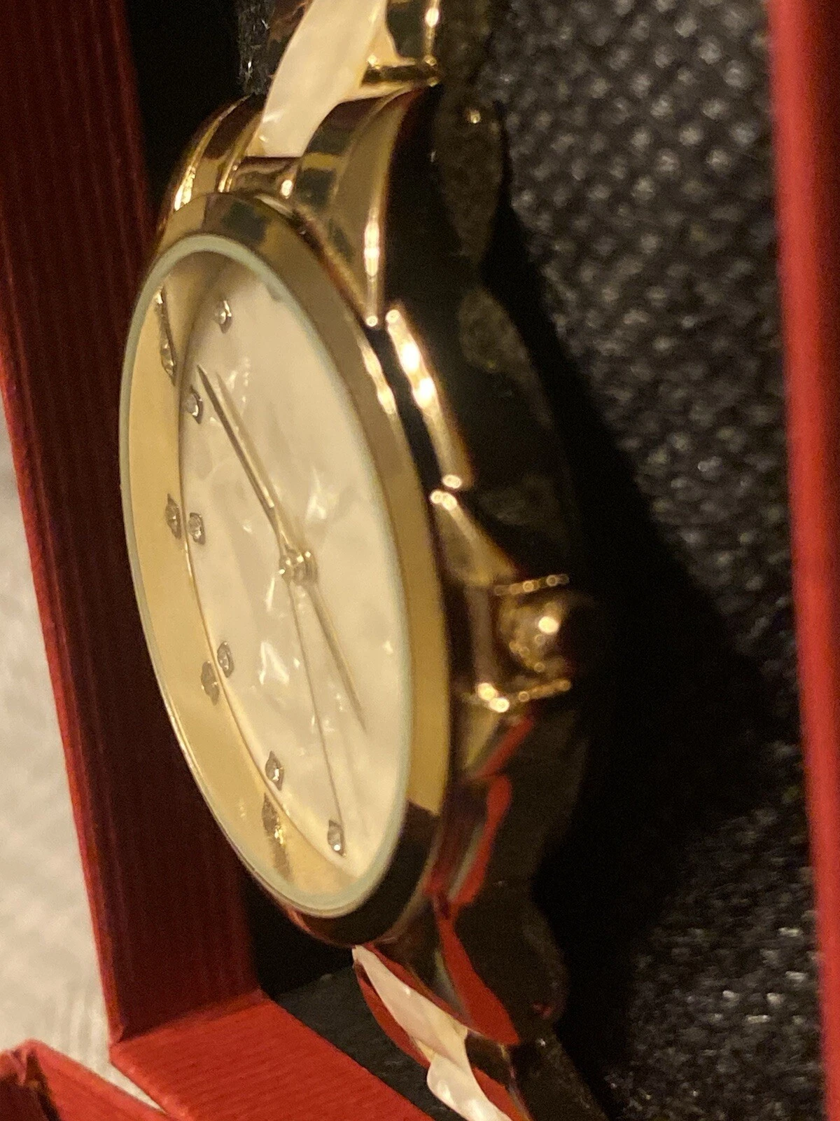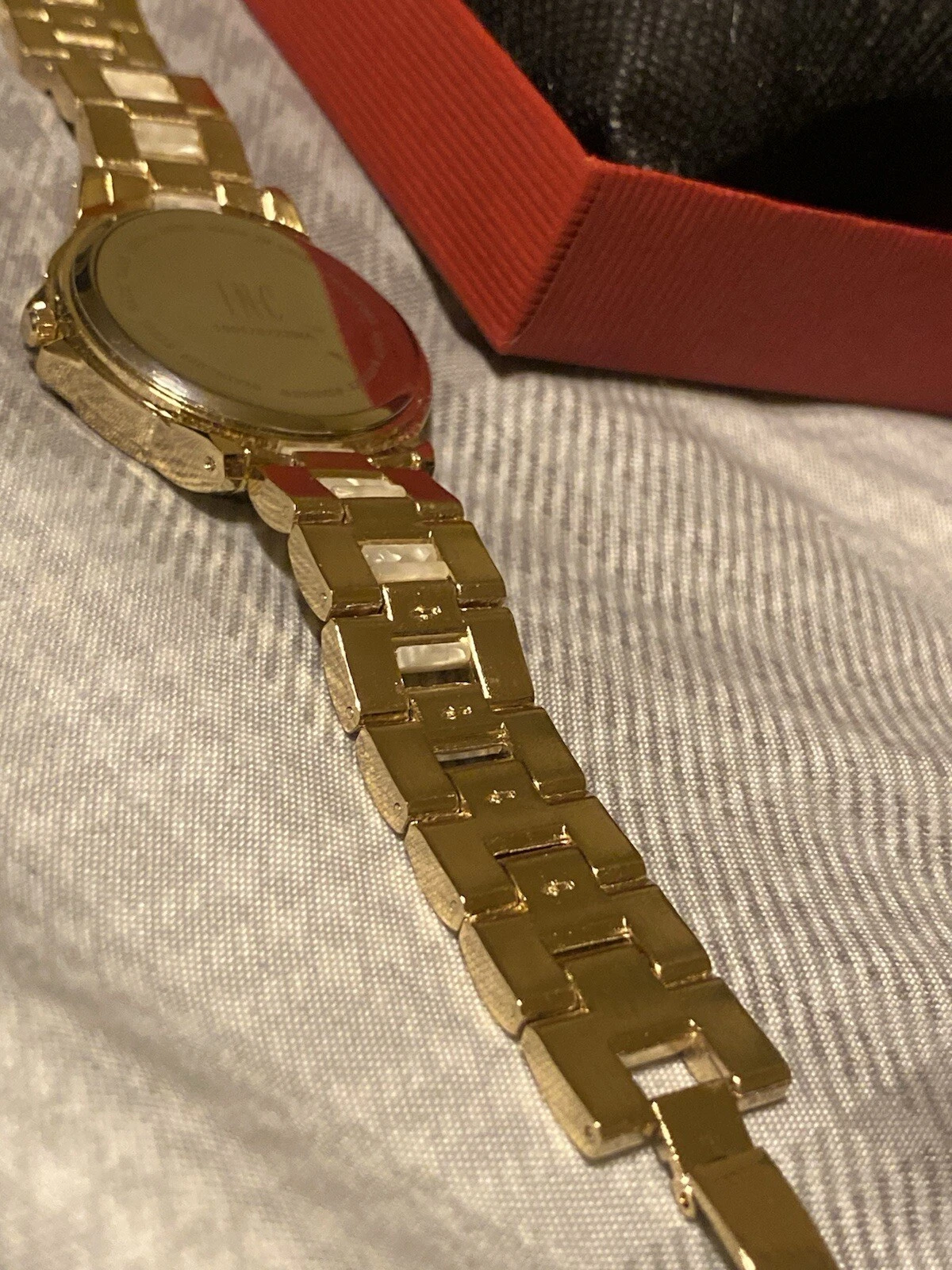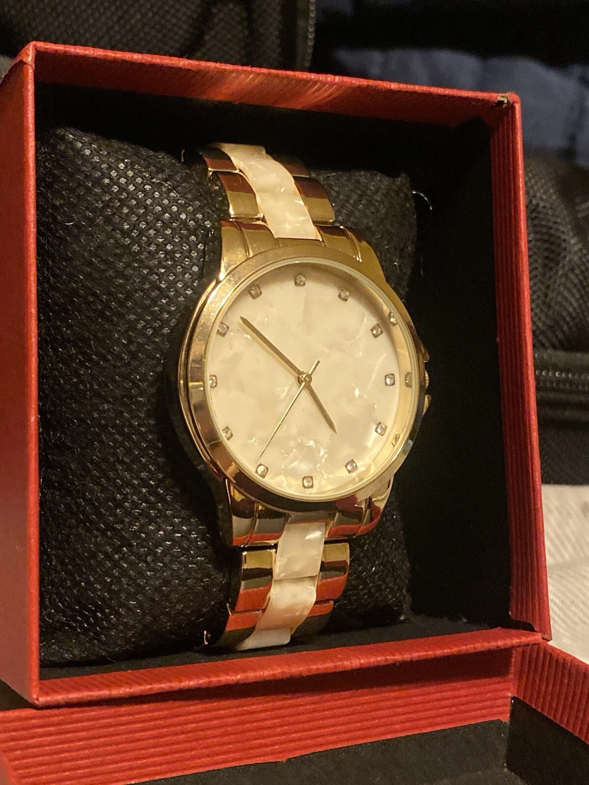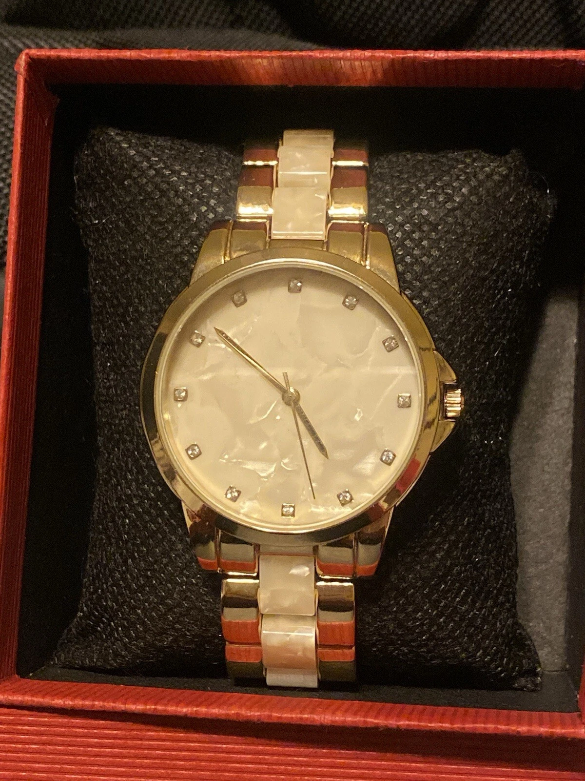 INC International Gold/ Pearl Tone Women’s 38MM Watch W/ Crystals NEW Battery