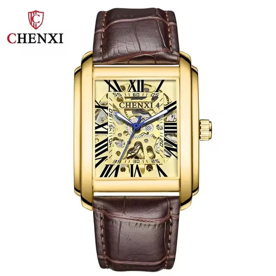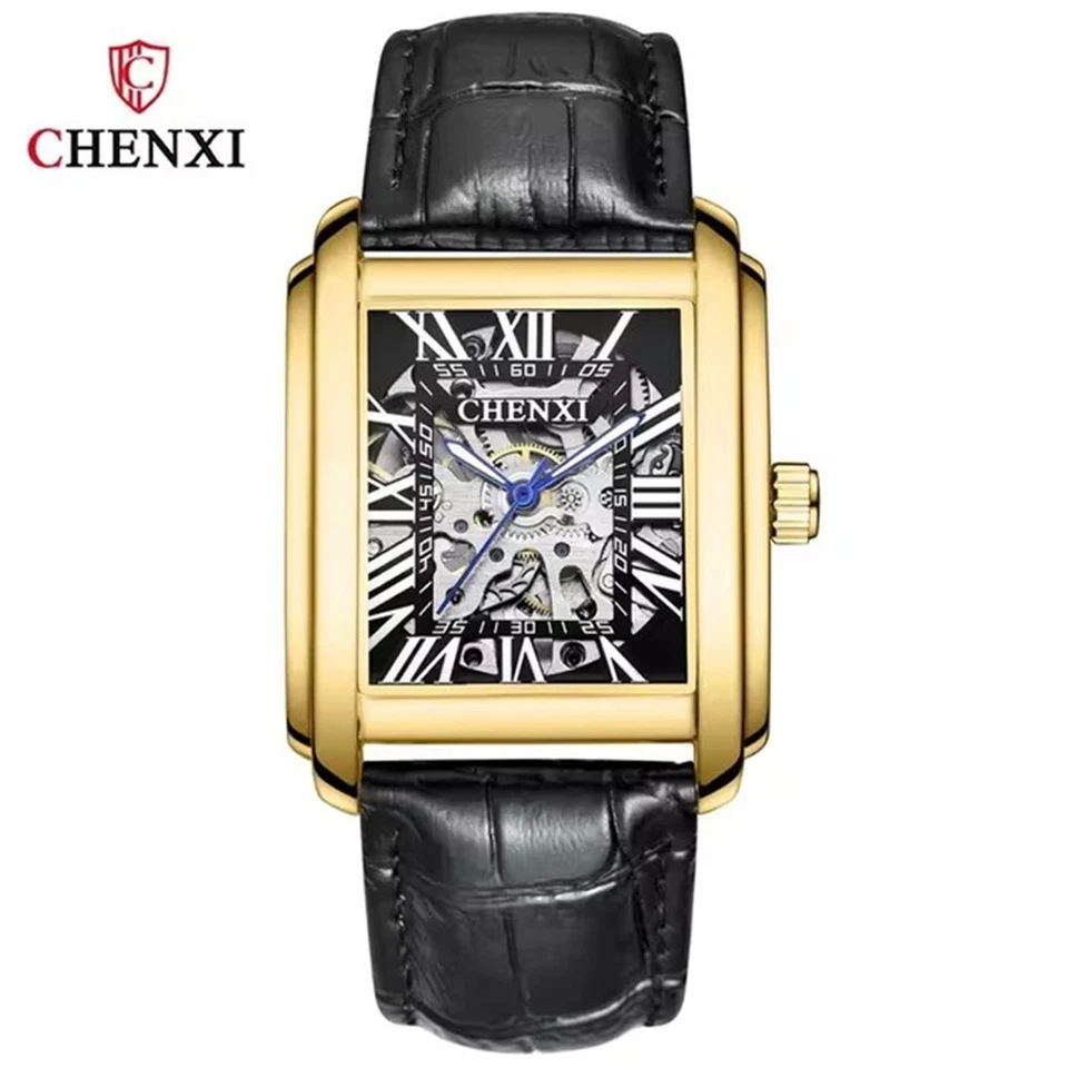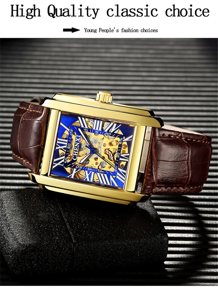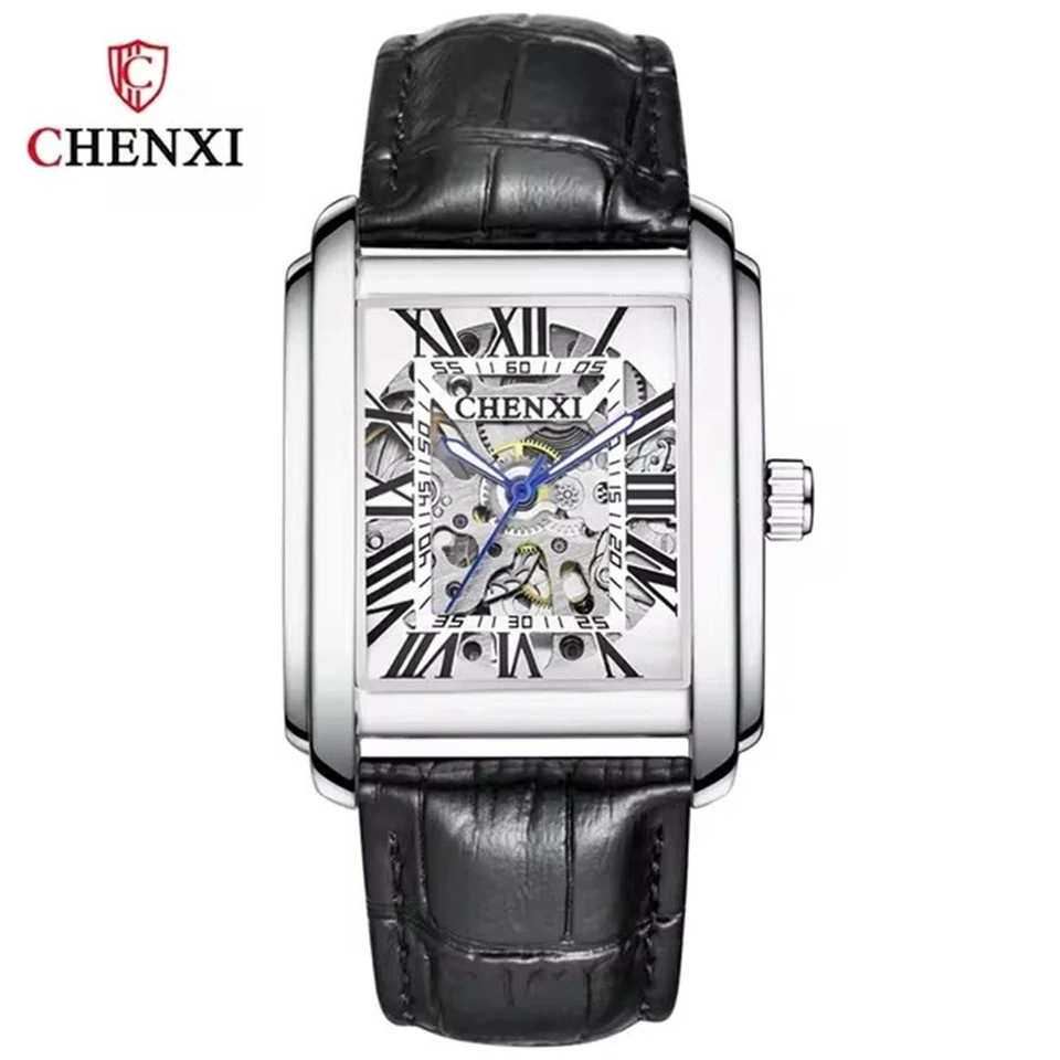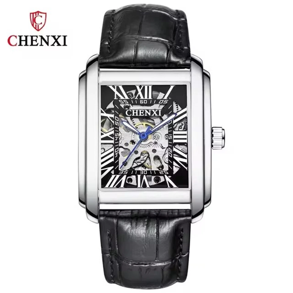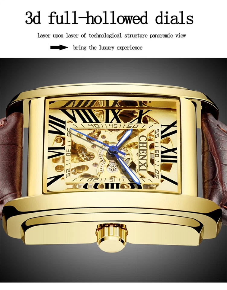 CHENXI Men Rectangle Watch Mechanical Automatic Wristwatch Hollow Out Wristwatch
