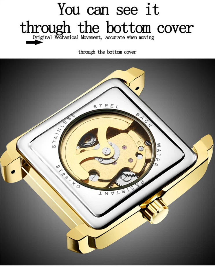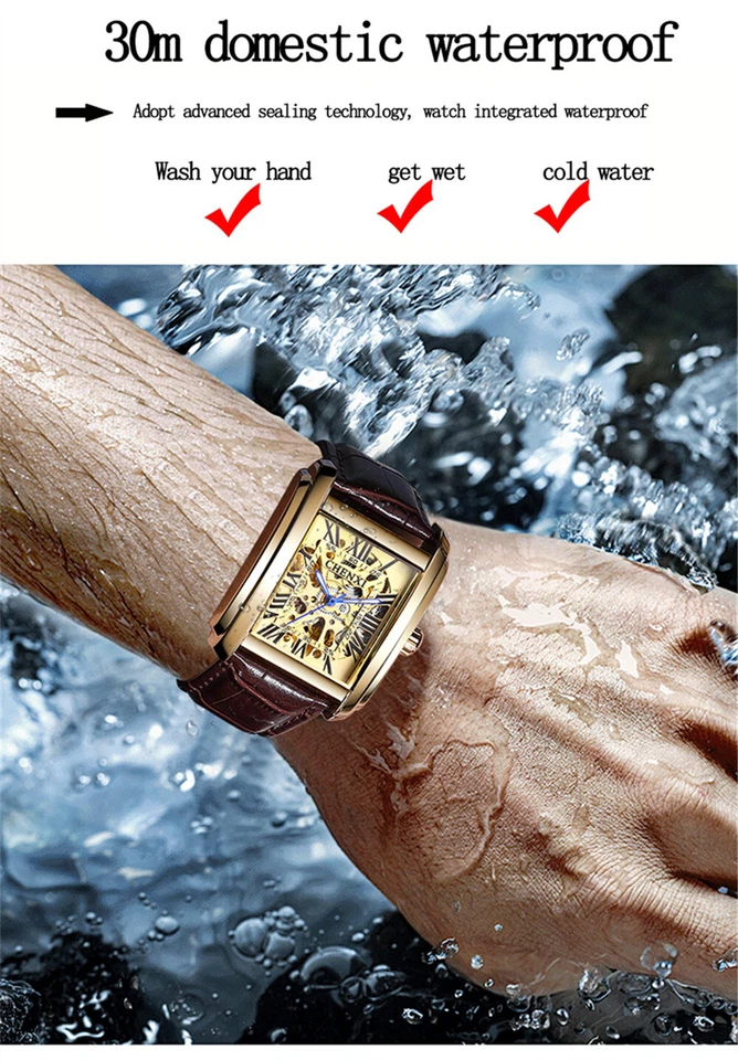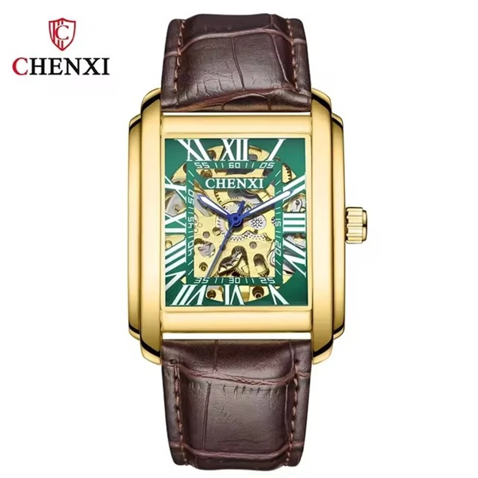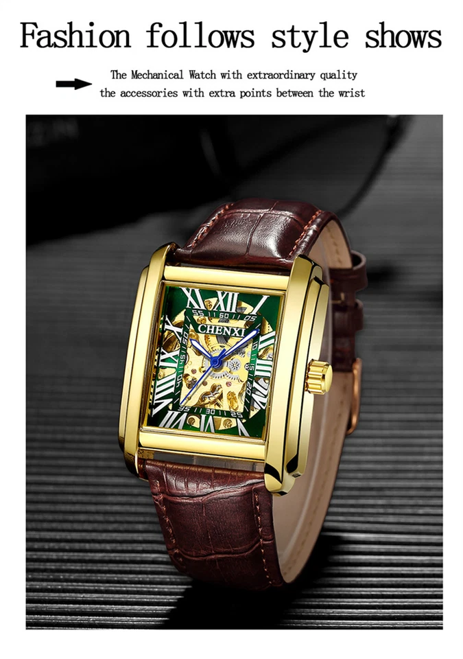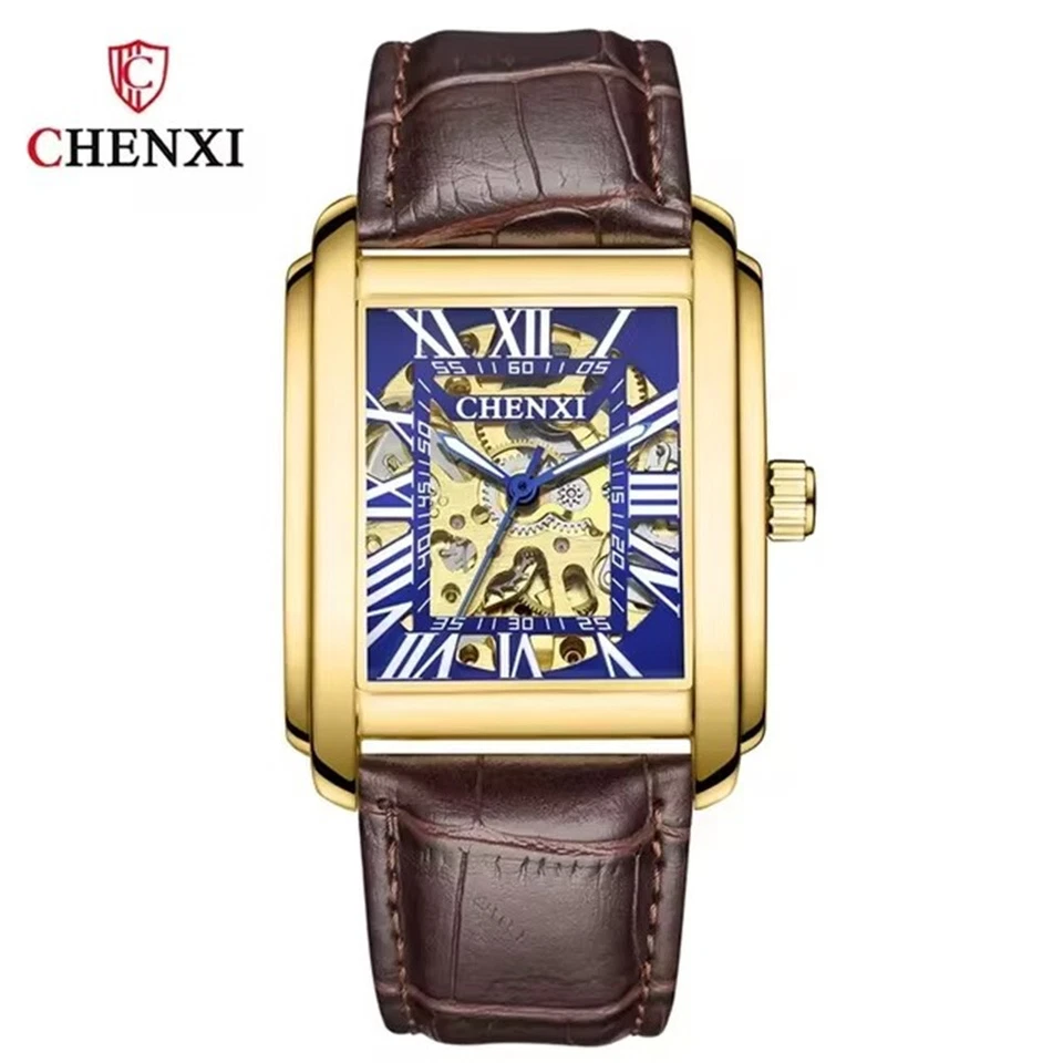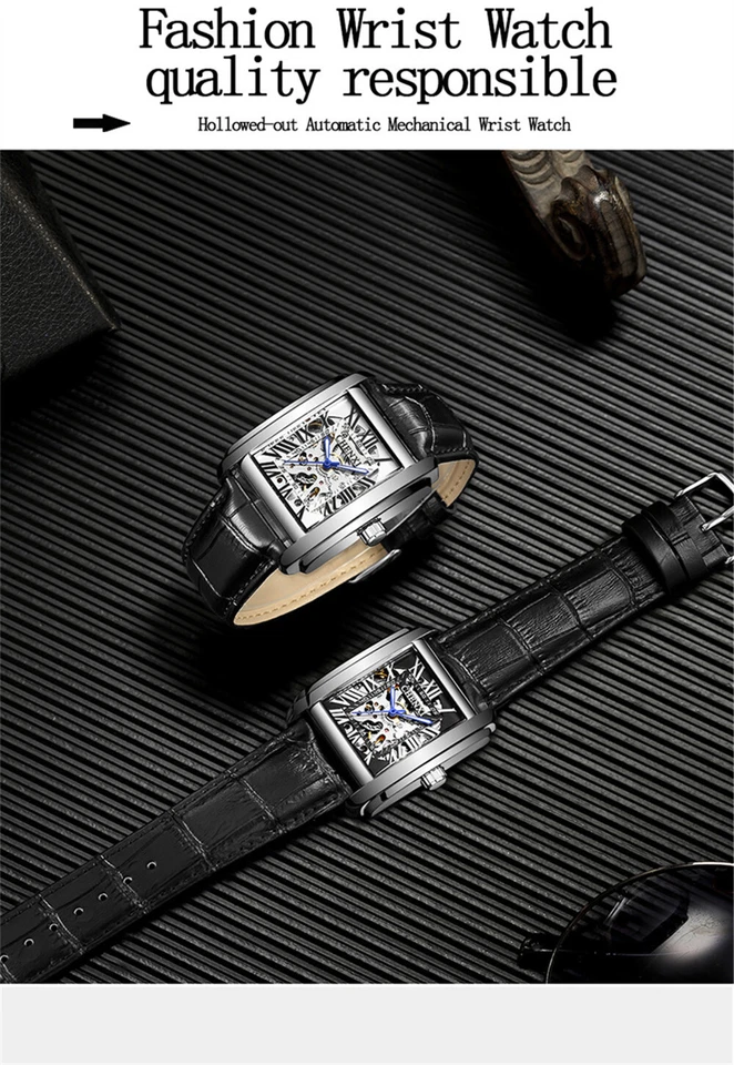 CHENXI Men Rectangle Watch Mechanical Automatic Wristwatch Hollow Out Wristwatch