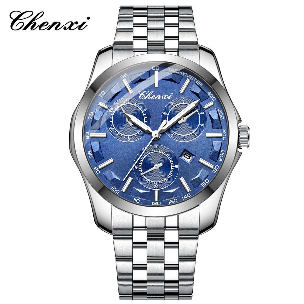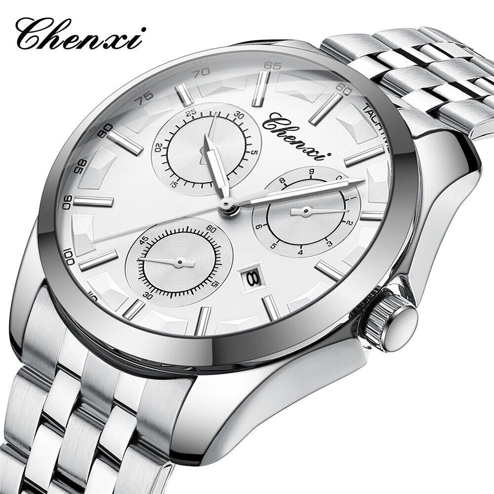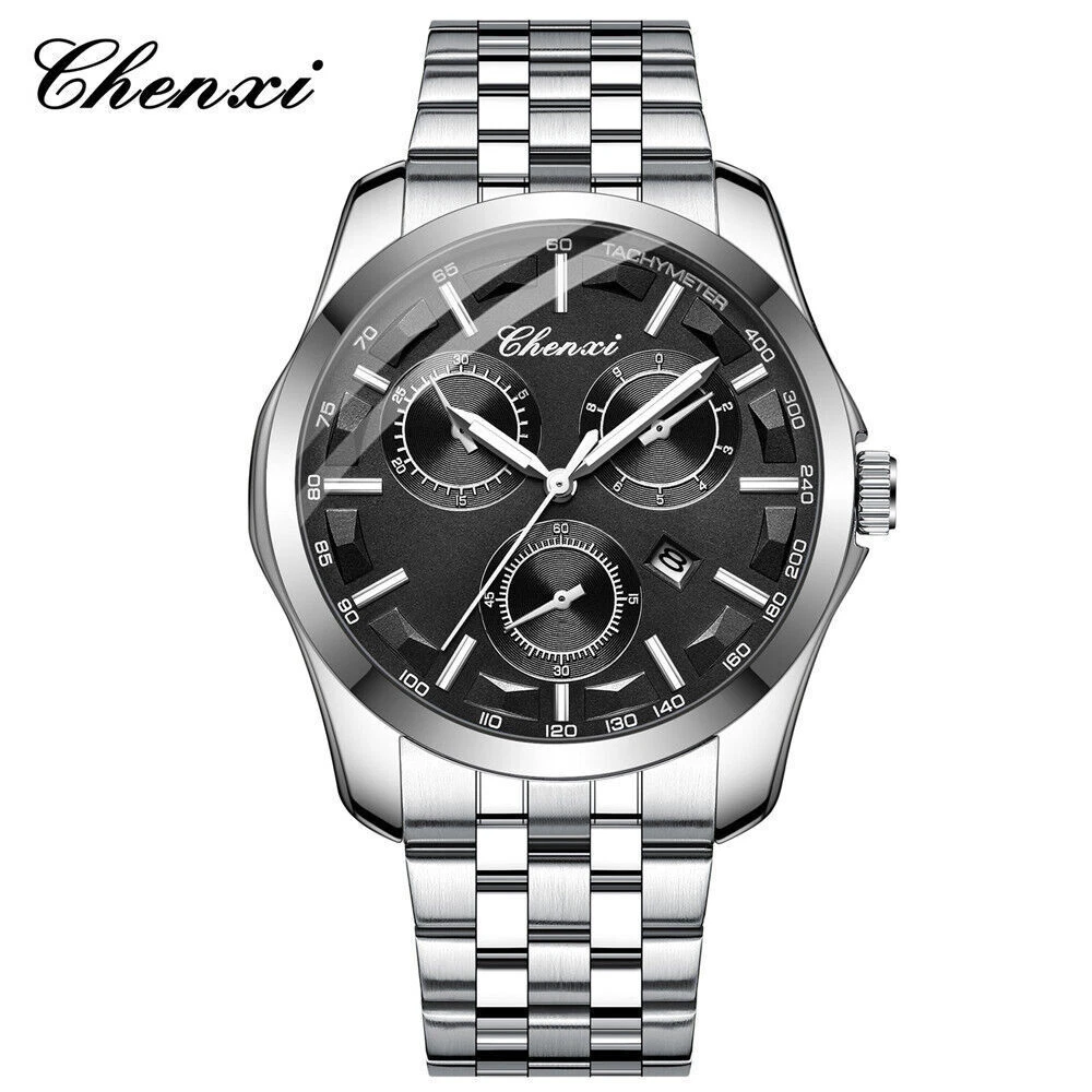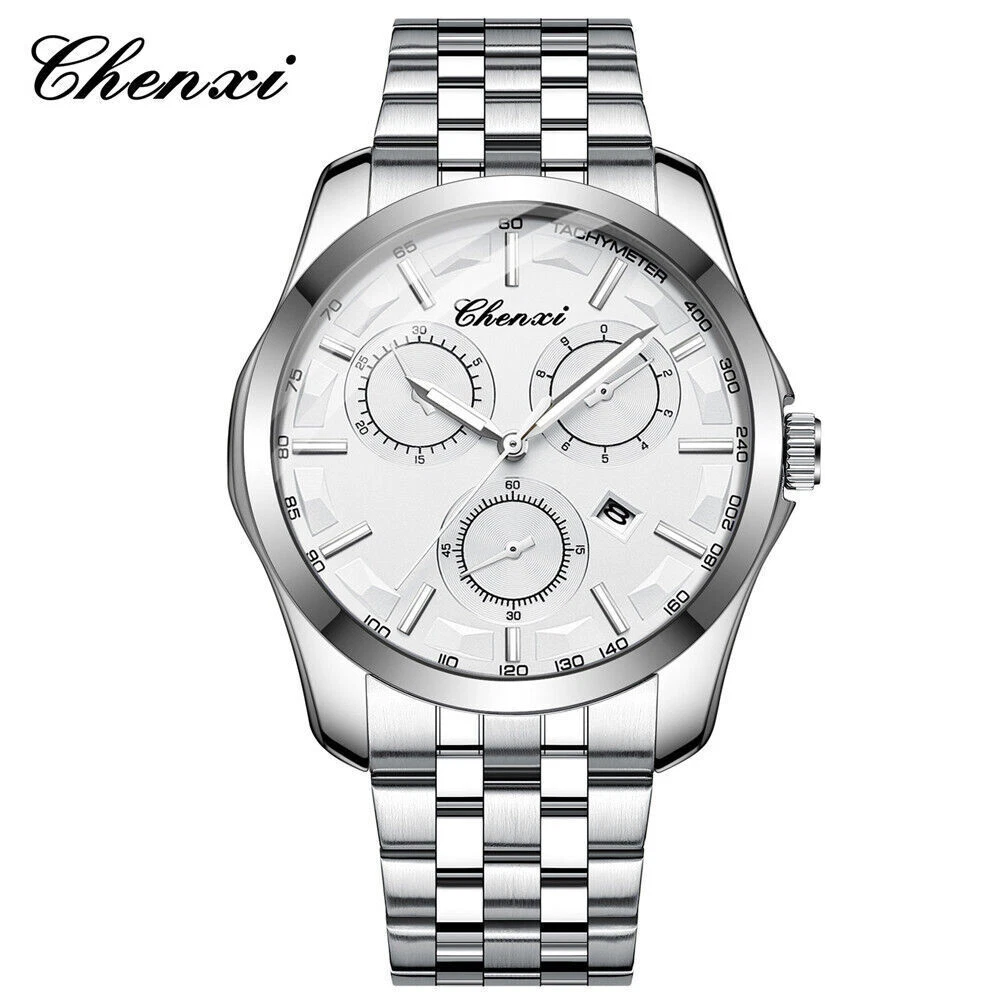 CHENXI Men Quartz Watches Silver Steel Wristwach Luminous Poninter Male Watches
