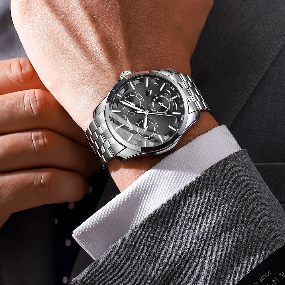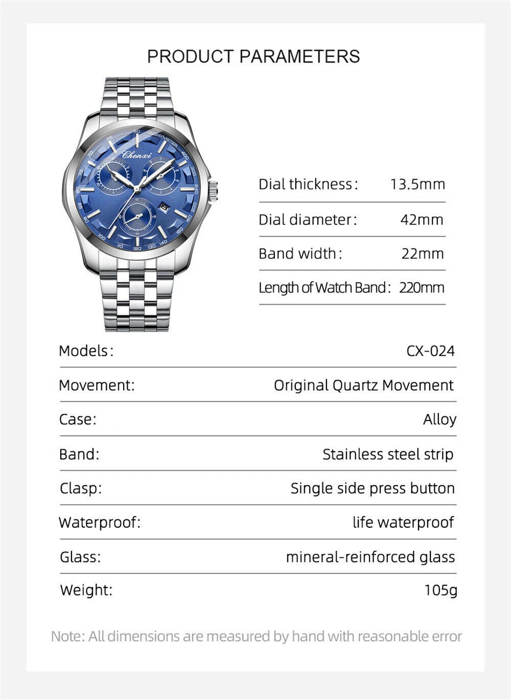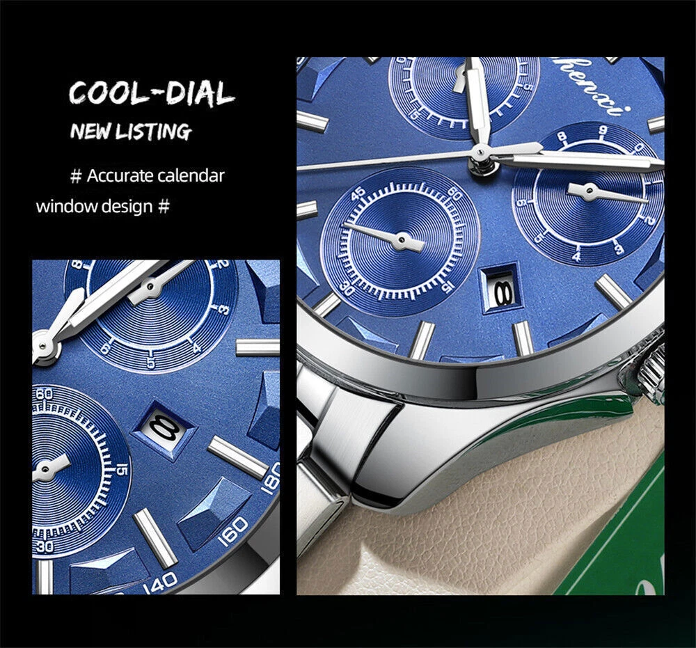 CHENXI Men Quartz Watches Silver Steel Wristwach Luminous Poninter Male Watches