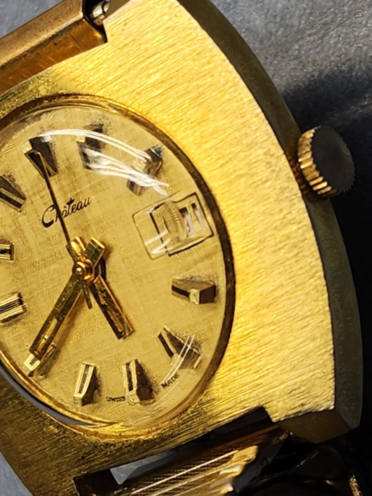 VINTAGE SWISS MENS CHATEAU LARGE SQUARE WATCH 3D MARKERS RUNS 1.5" BY 1.5"