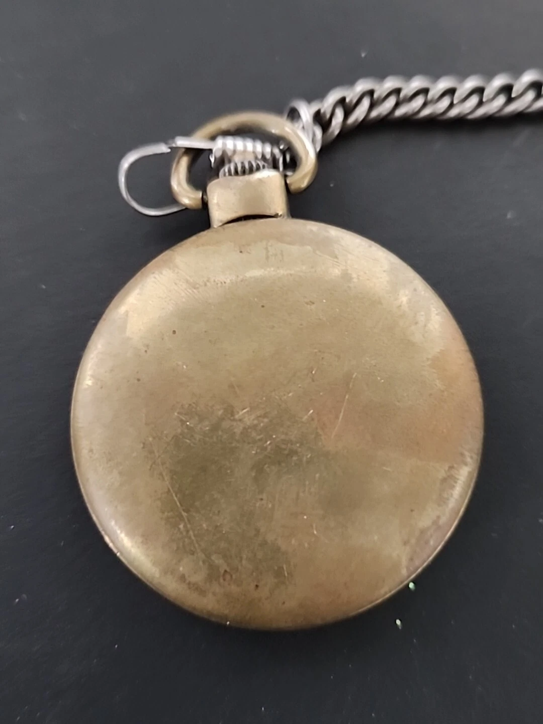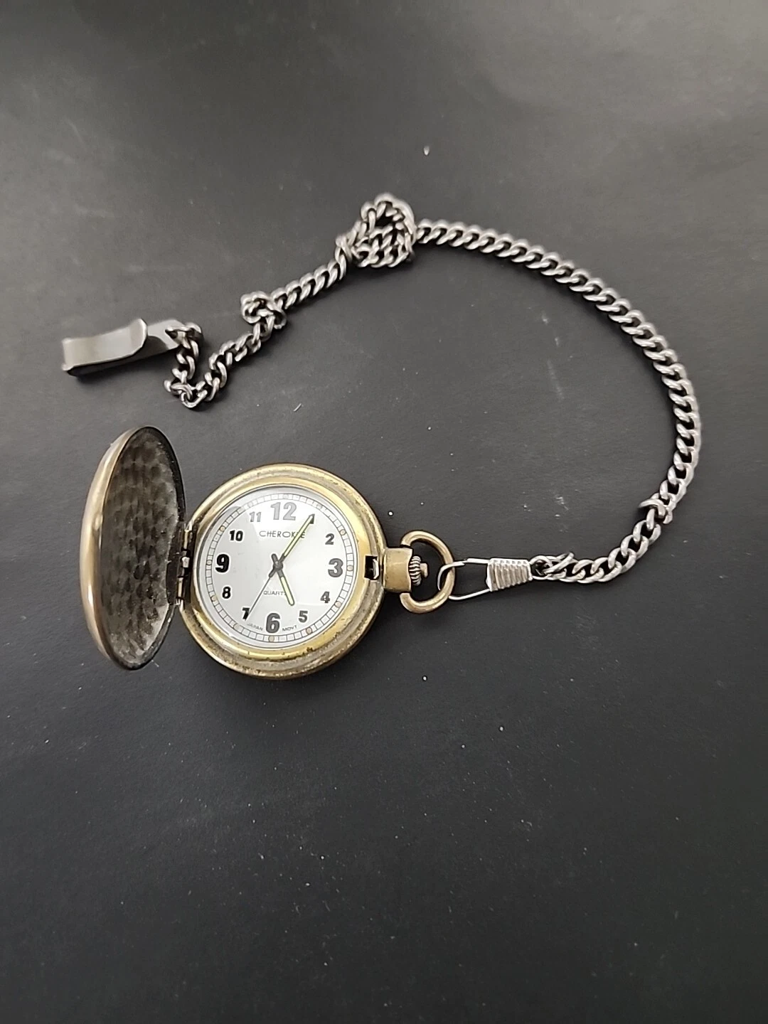 Cherokee Quartz Fashion Modern Pocket Watch with chain Japan Movt, untested