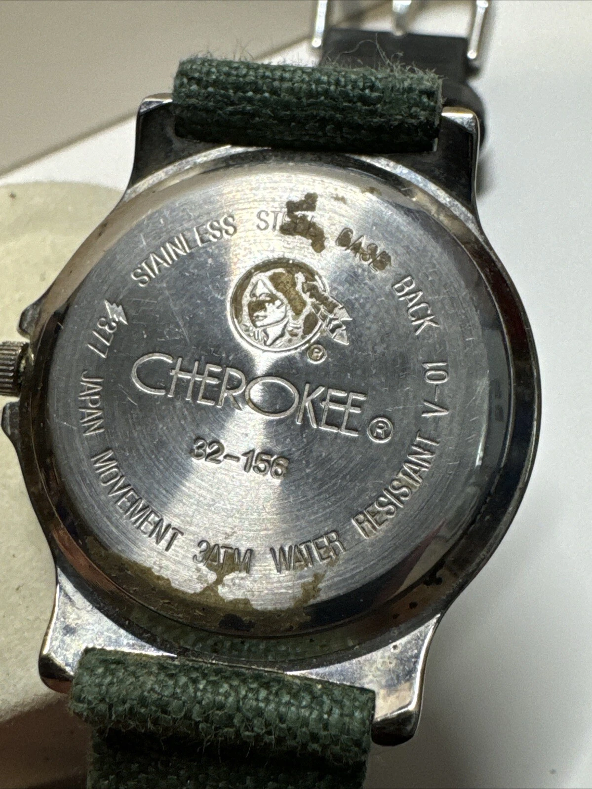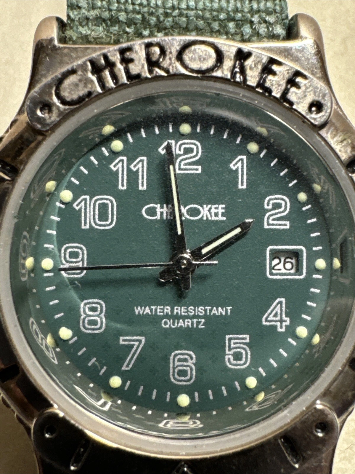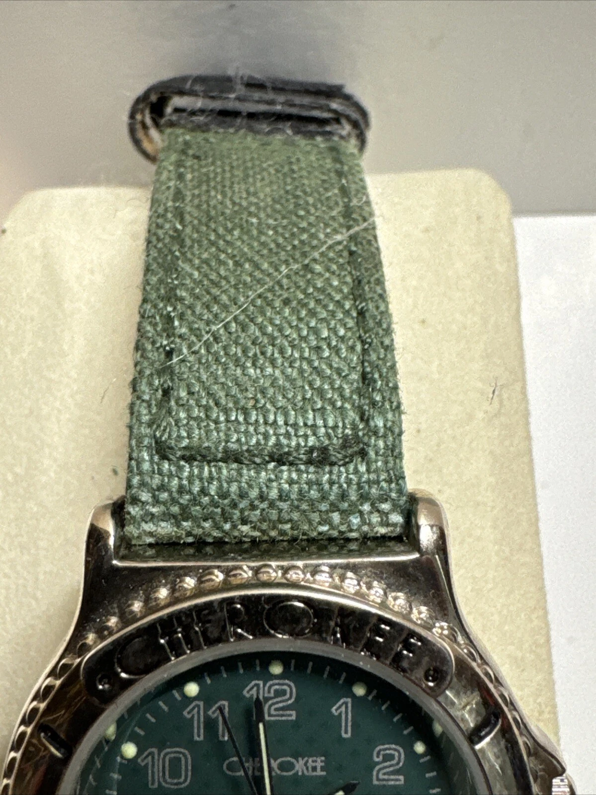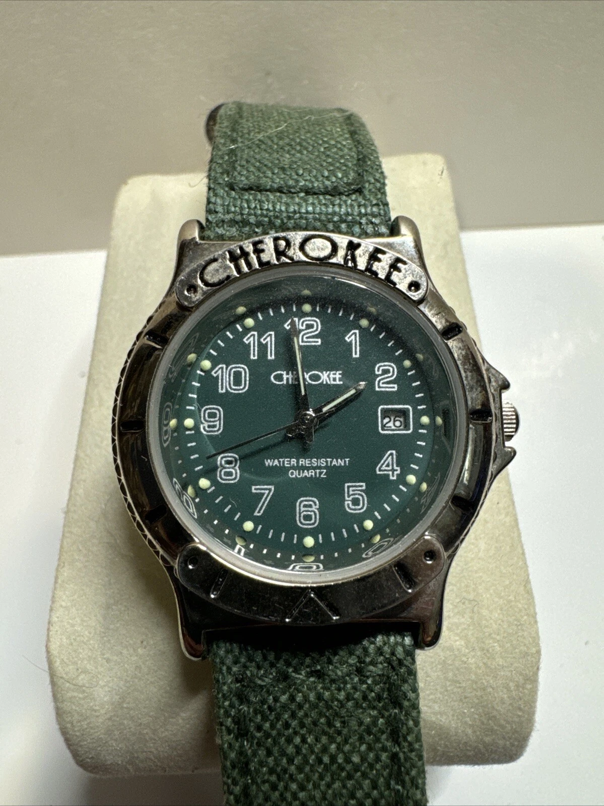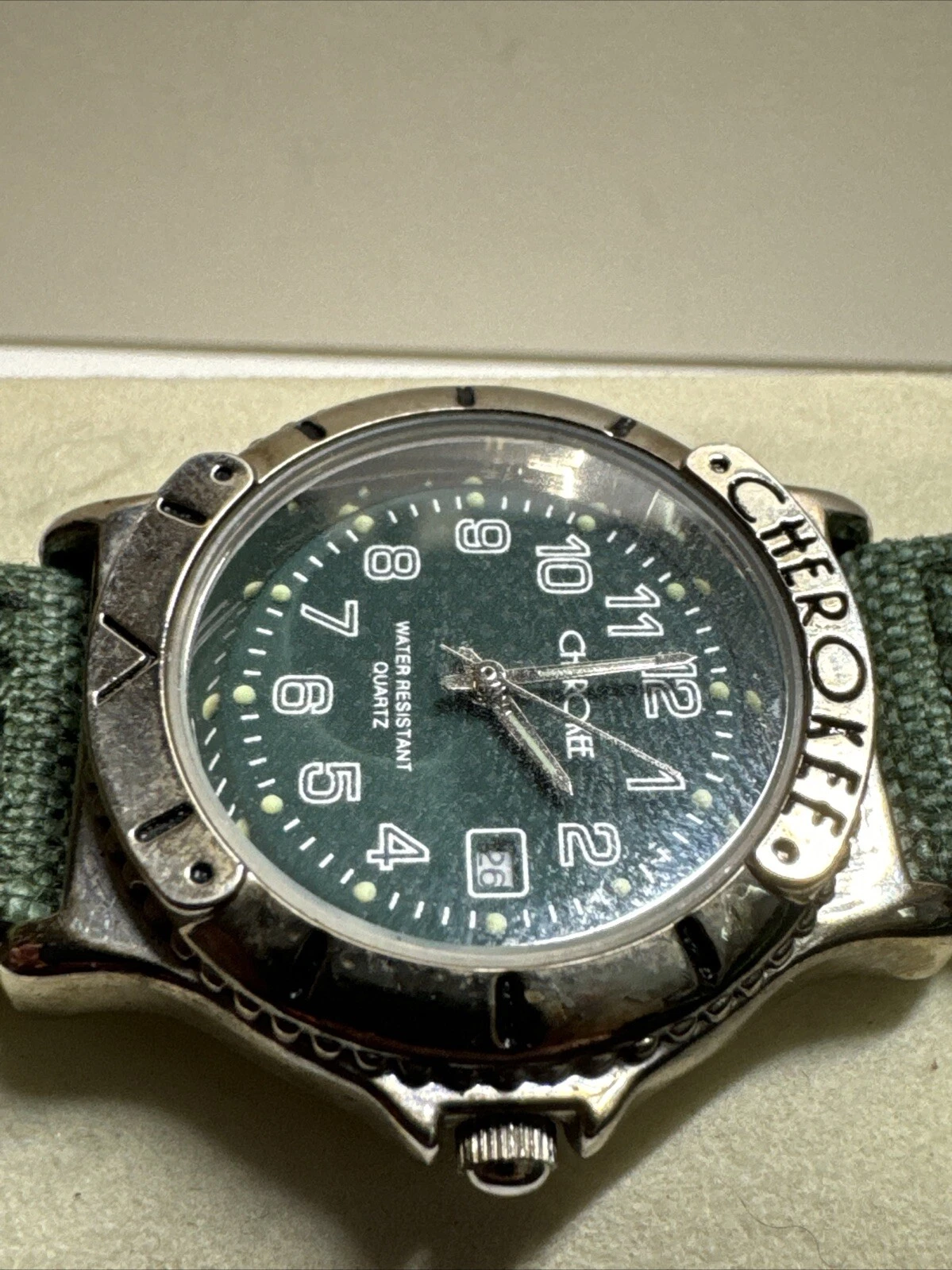 Vintage Cherokee Watch Green Day Date Water Resist Quartz - New Battery/Working