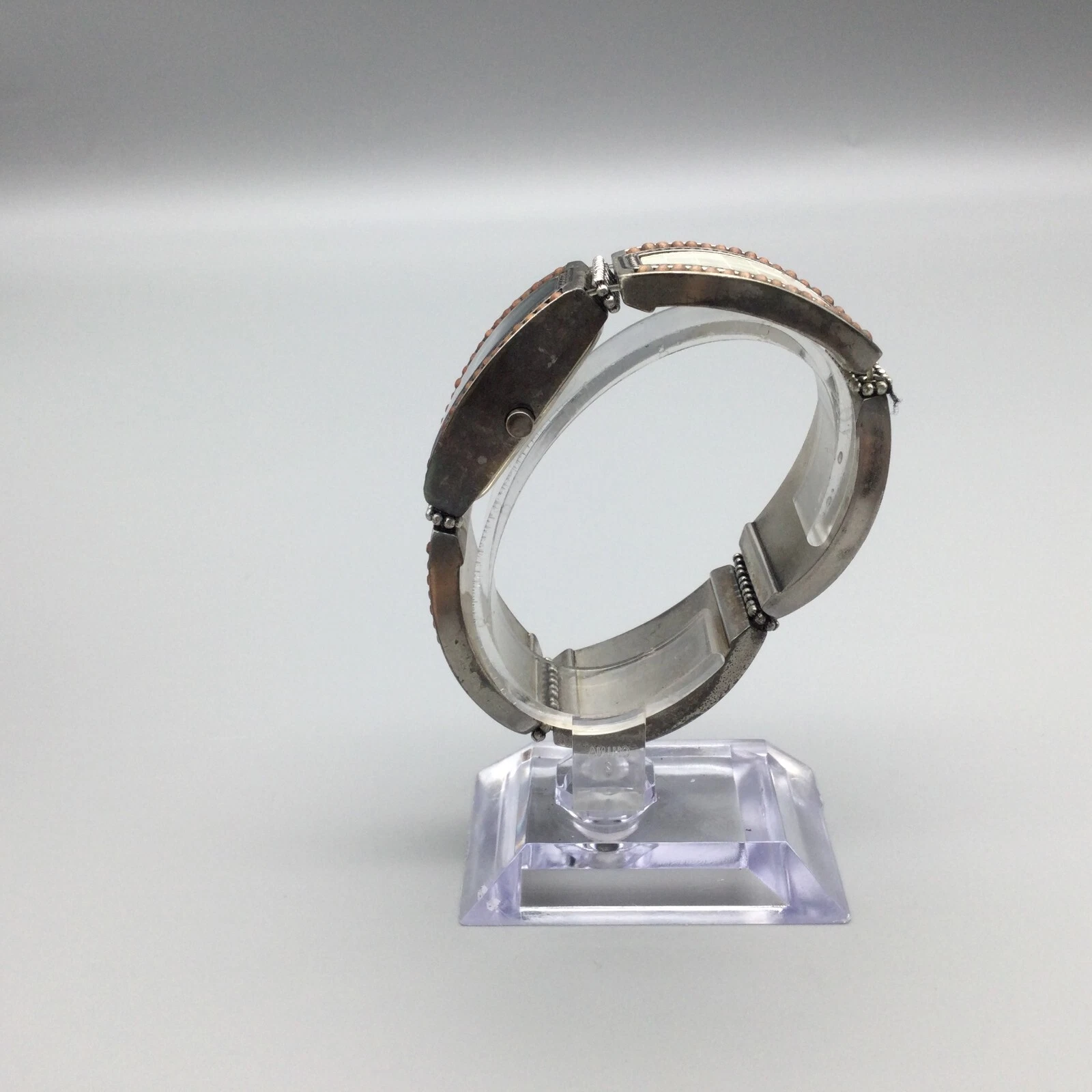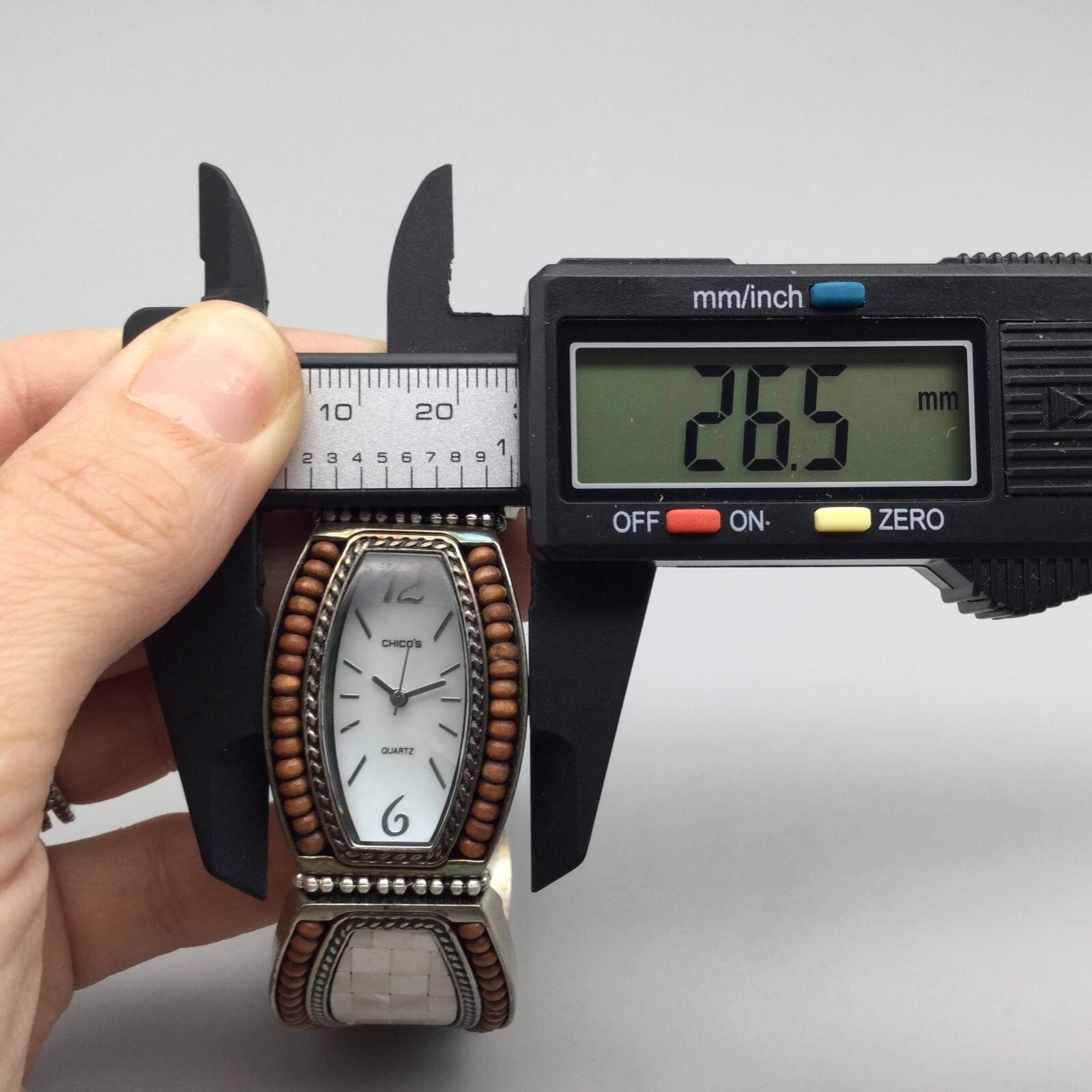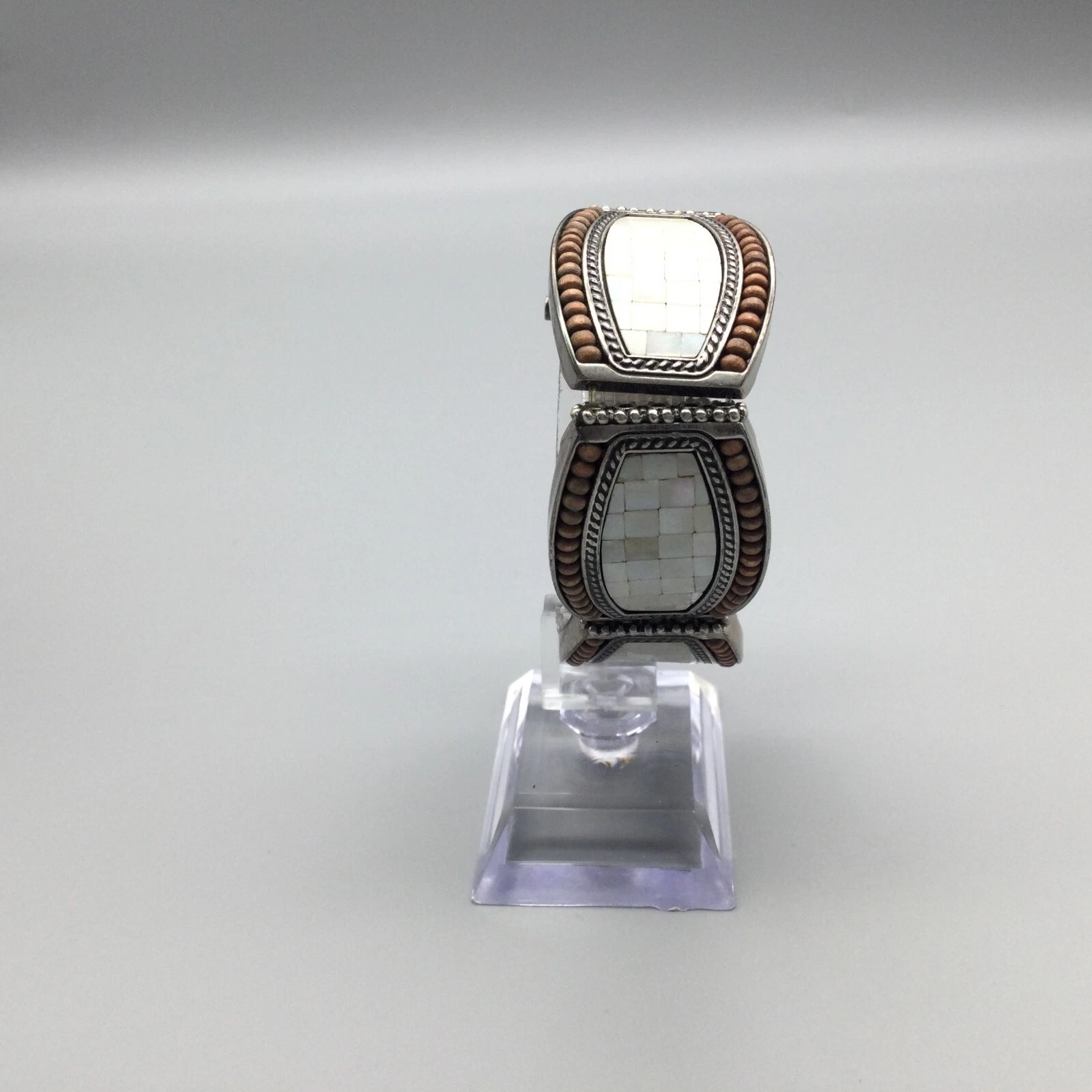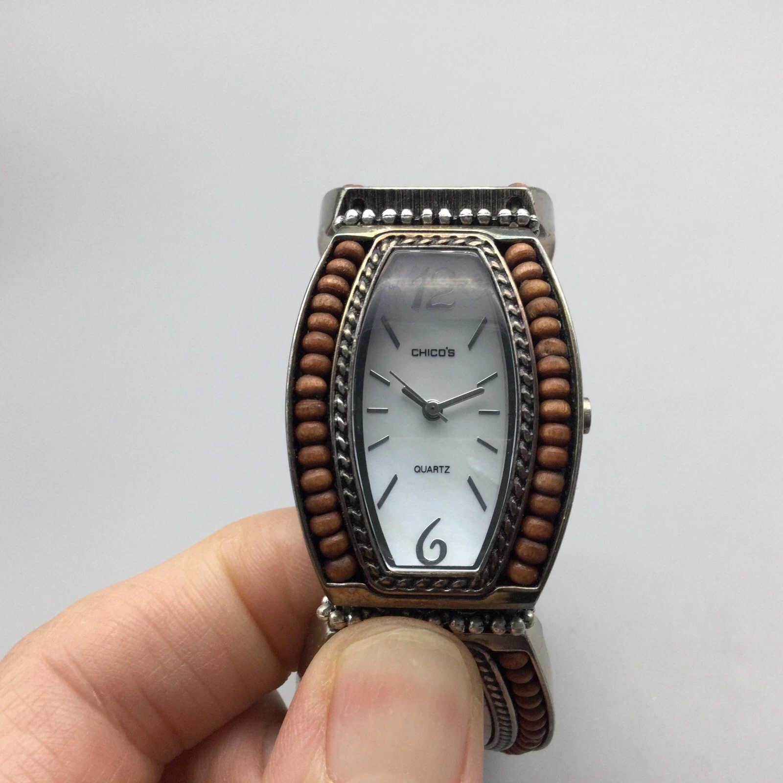 Chico's Watch Women 27mm Silver Tone MOP Mosaic Hinged Open Cuff New Battery
