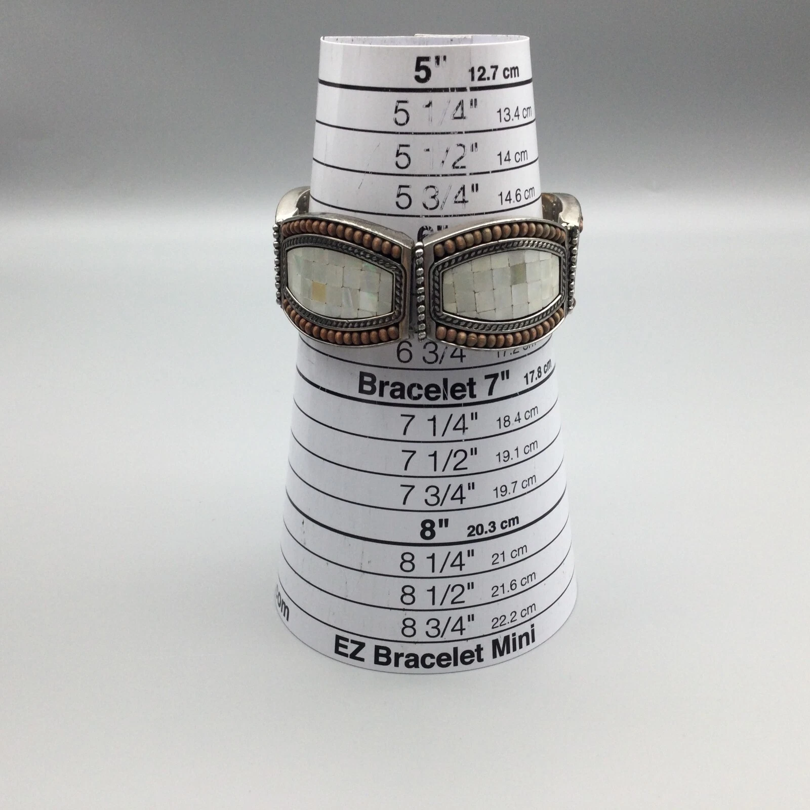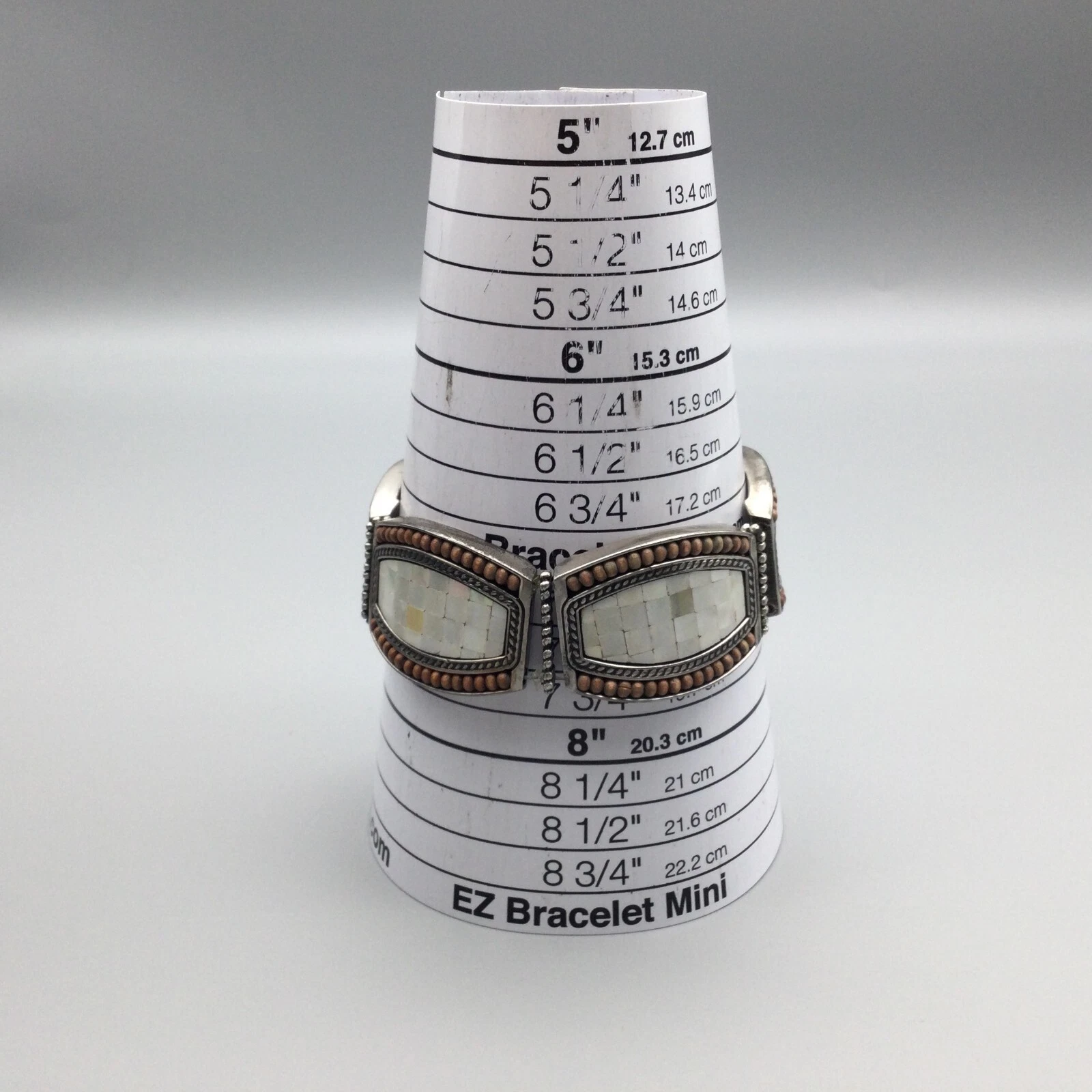 Chico's Watch Women 27mm Silver Tone MOP  Mosaic Hinged Open Cuff New Battery