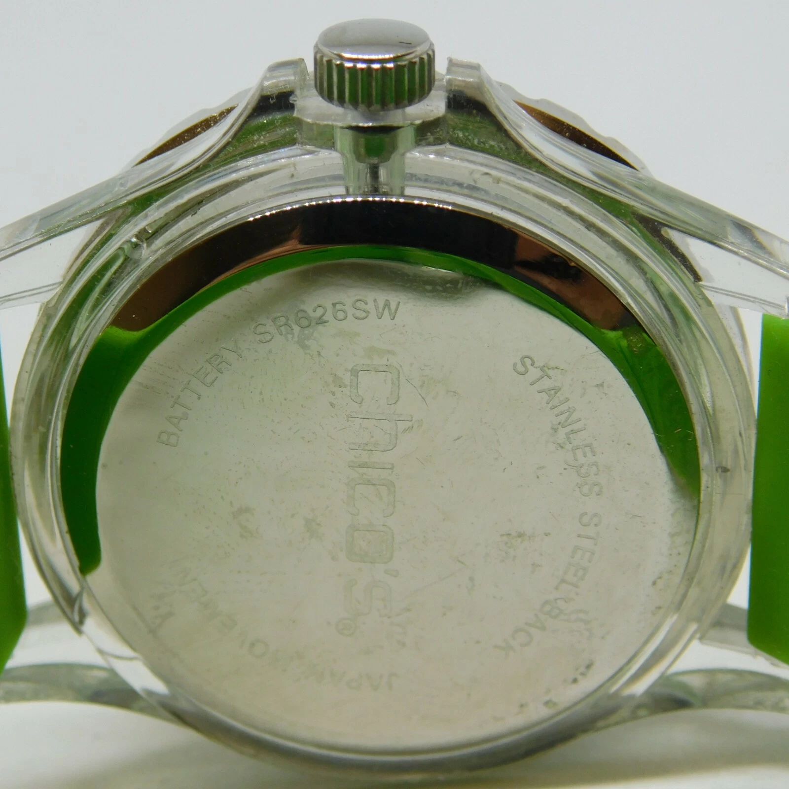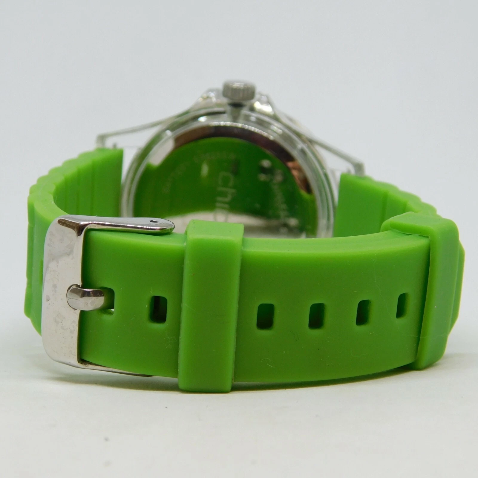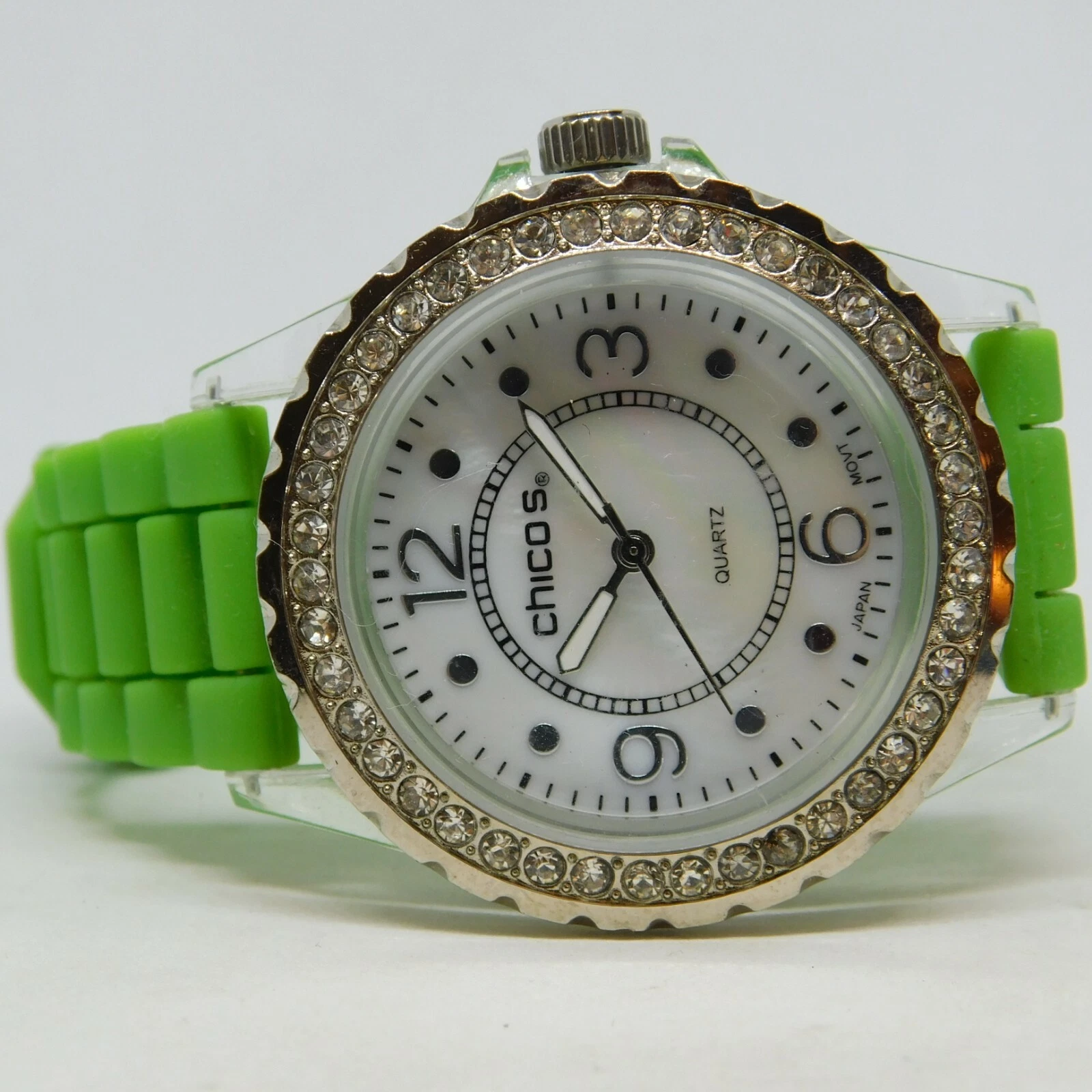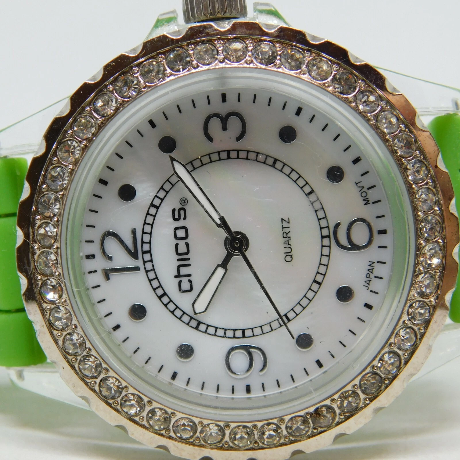 CHICO'S Clear Plastic Case Green Band Quartz Analog Ladies Watch