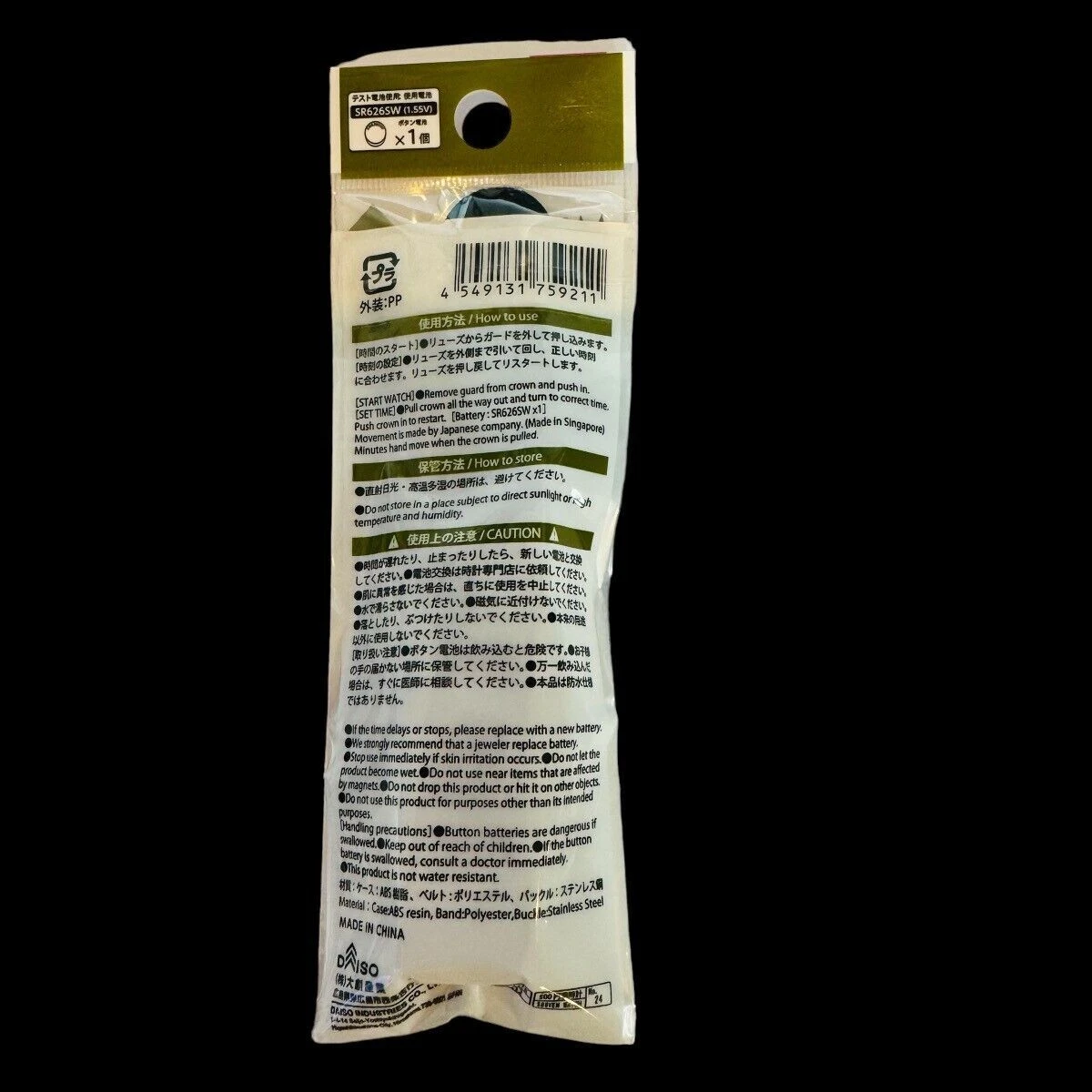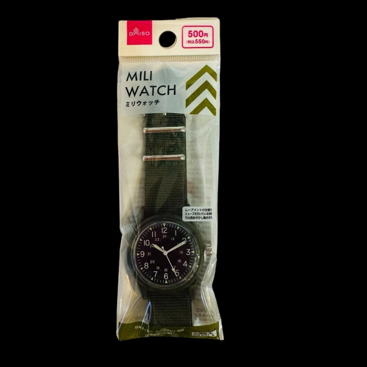 Daiso Military Watch Milli Watch Black Millitary No Open Black