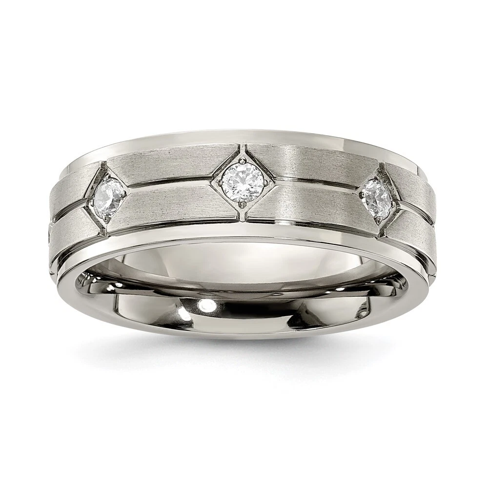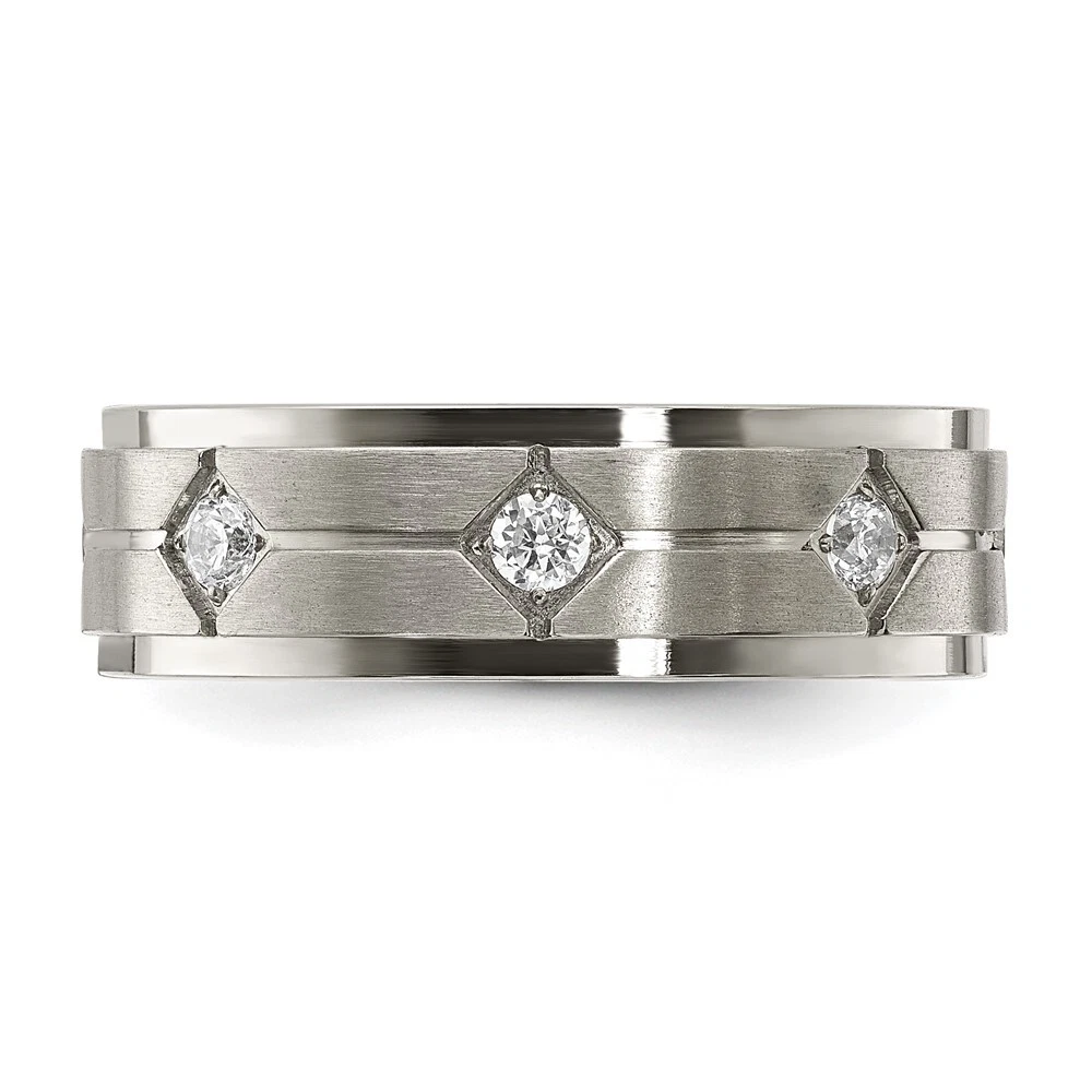 Chisel Stainless Steel Polished with Brushed Center with CZ 7.00mm Band