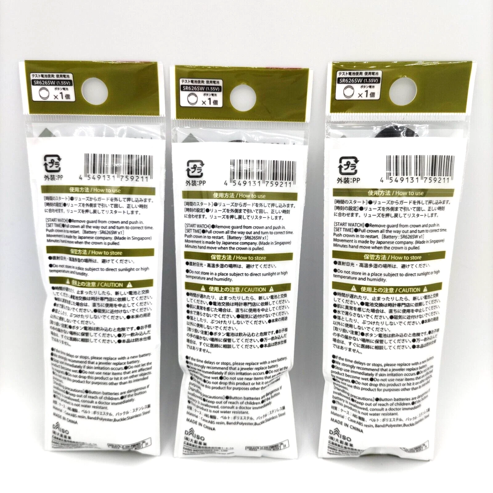 Daiso Mili Watch 2 Kaki and 1 Black Color  Set  NEW from Japan