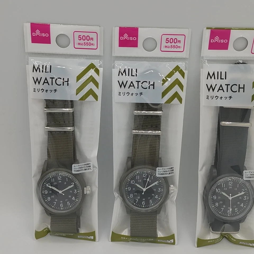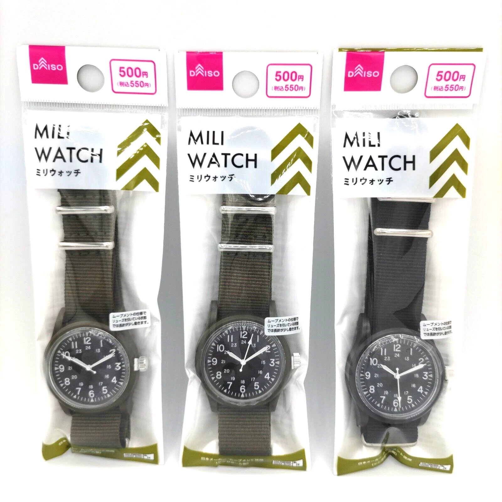 Daiso Mili Watch 2 Kaki and 1 Black Color Set NEW from Japan