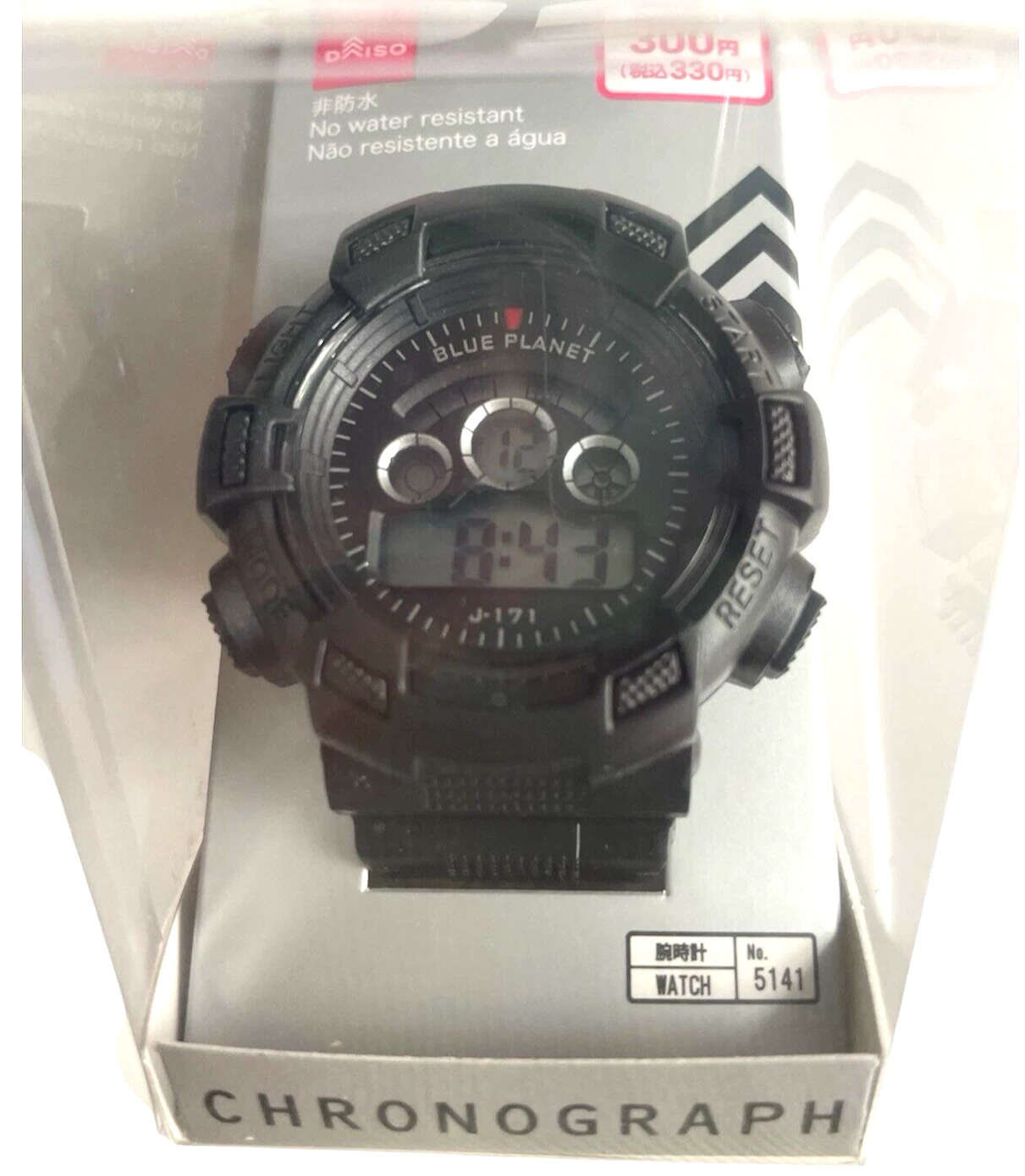 Daiso Digital Chronograph Watch Blue Planet G Black Model 5141 Works Great