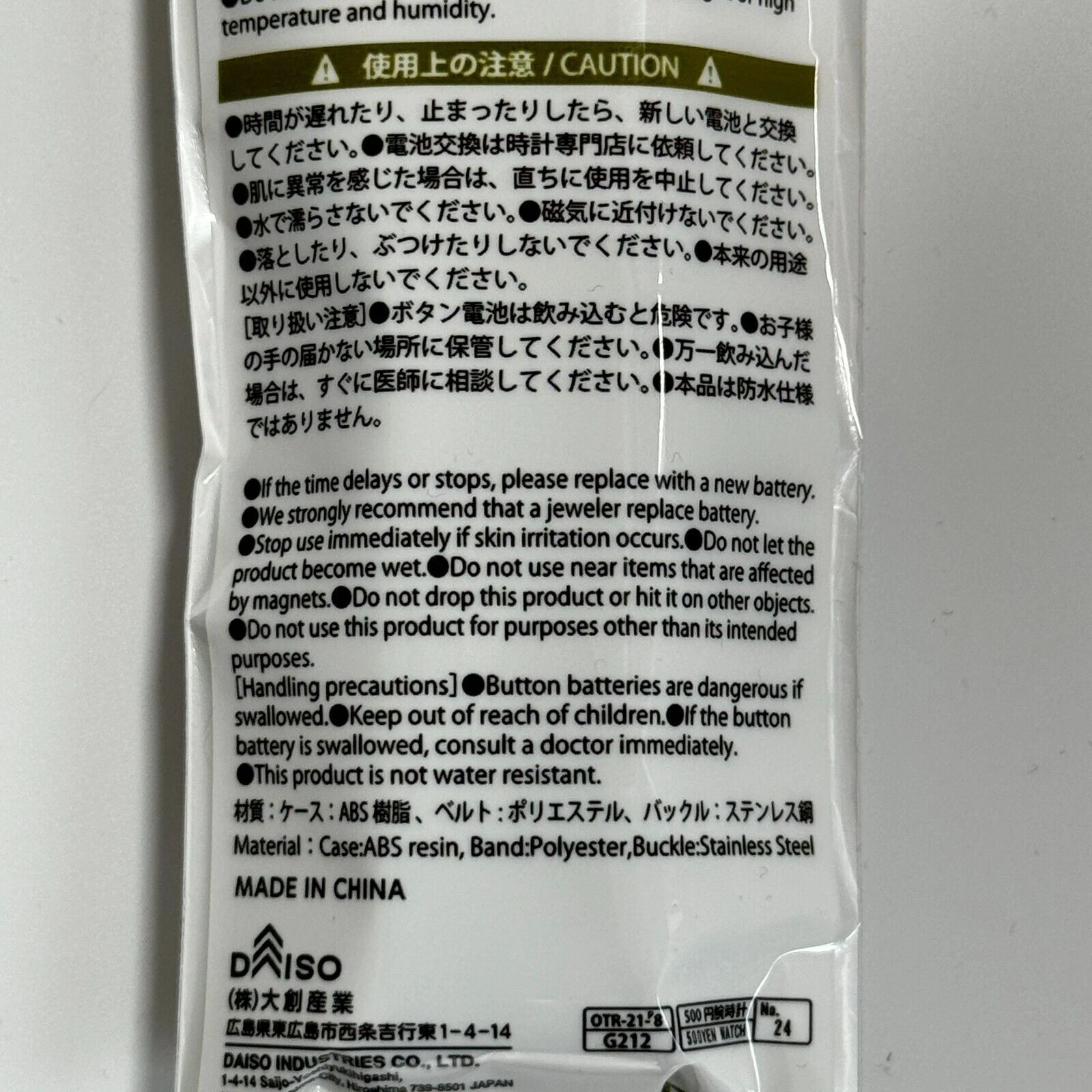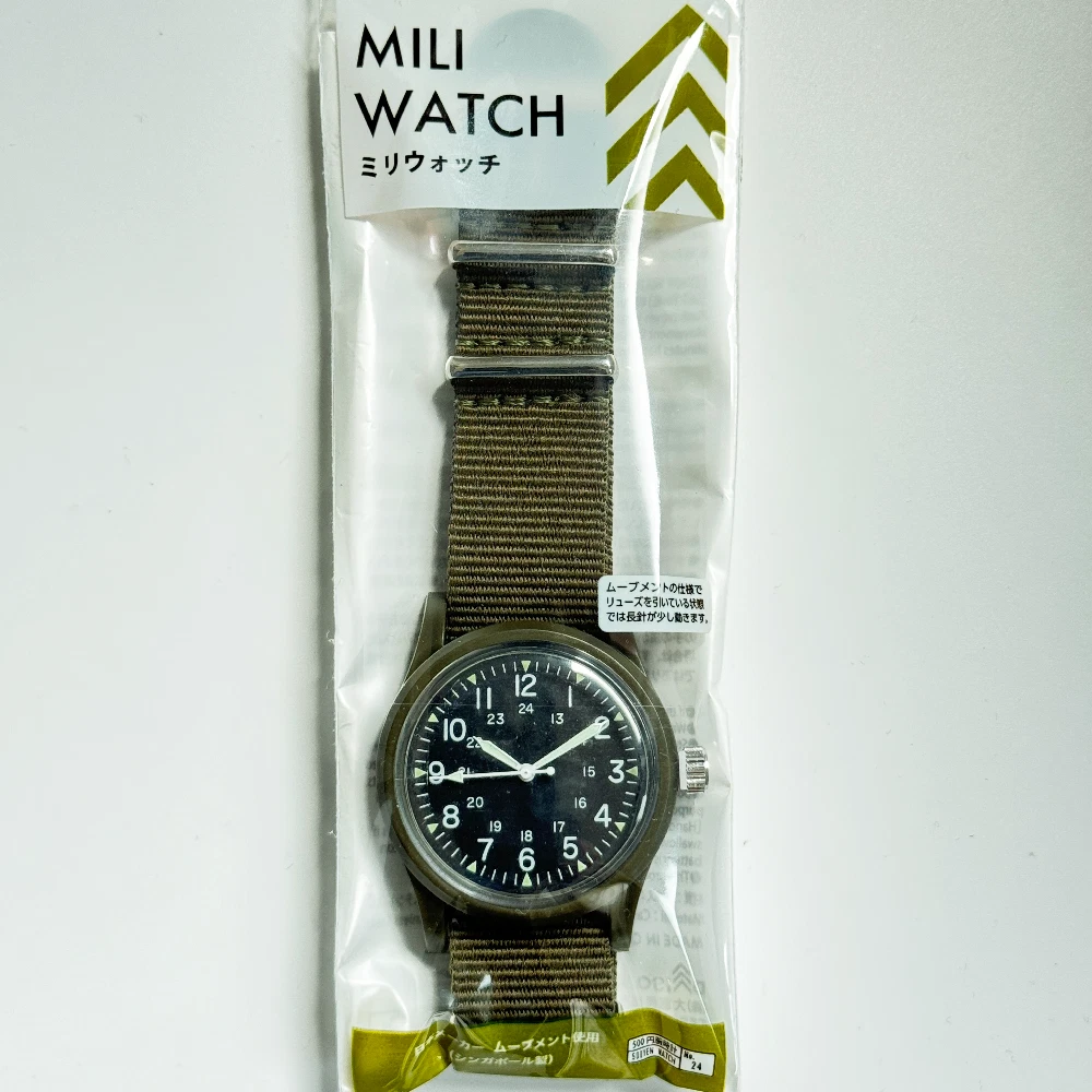 Japan Military Style Watch Seiko Movement RARE Olive Black Daiso New Japan