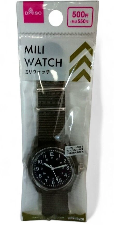Daiso Japan Military Style Watch Olive Seiko Movement