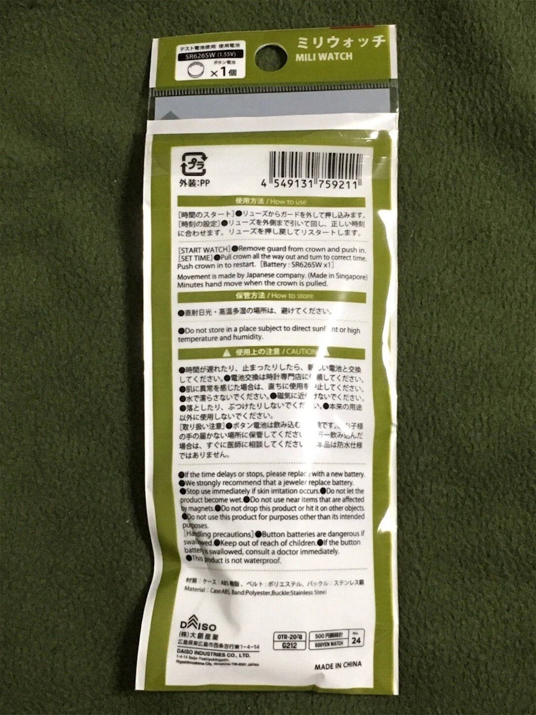 DAISO Military Watch Olive Khaki Green from JAPAN