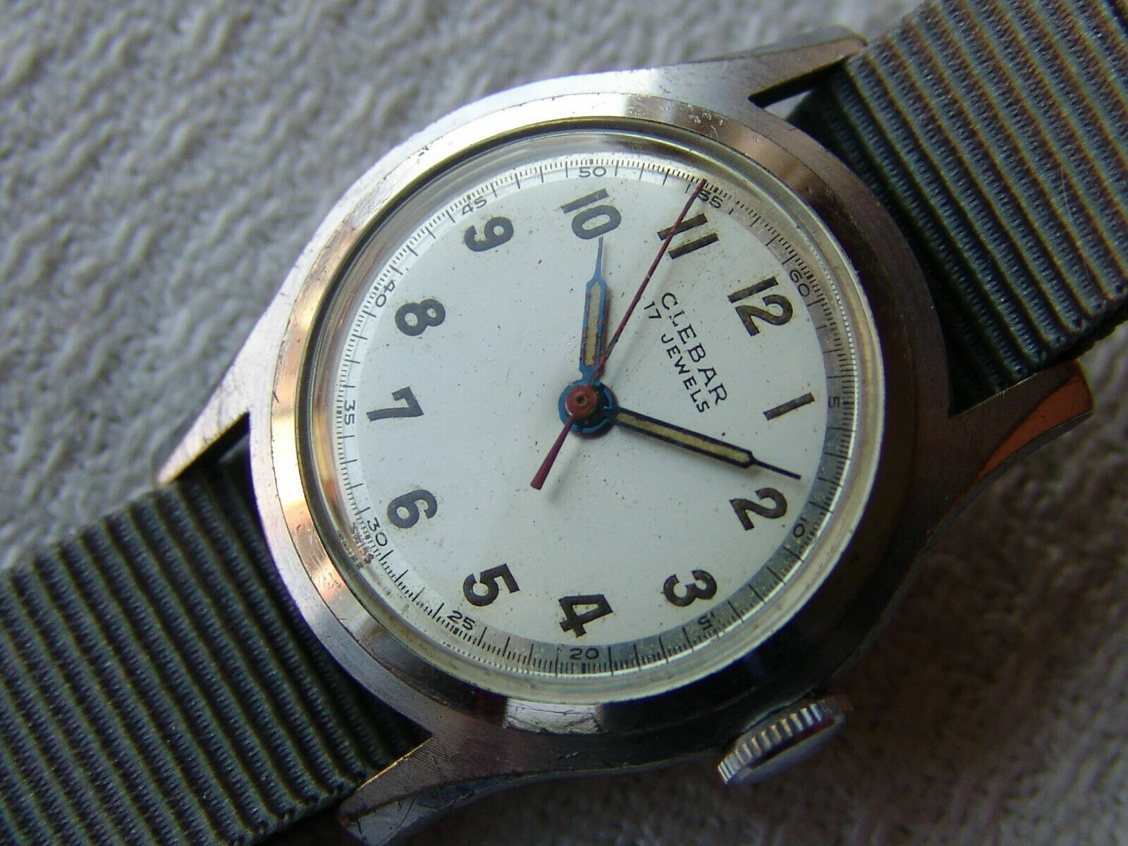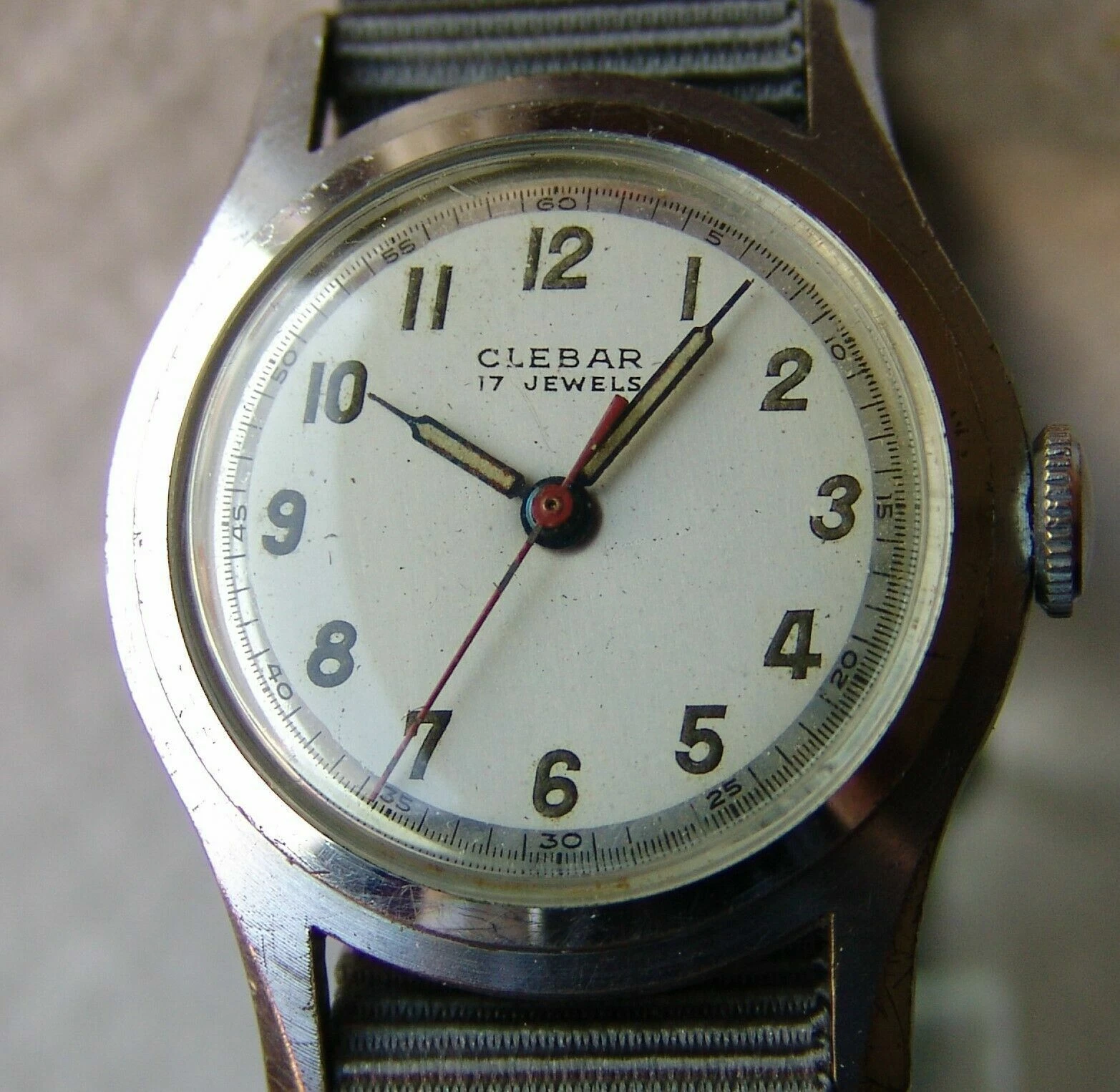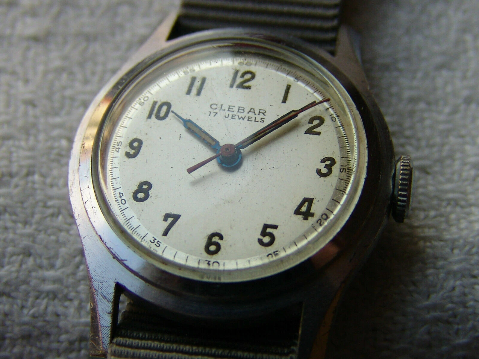 MEN'S WWII PERIOD vintage CLEBAR good condition MILITARY STYLE WRISTWATCH
