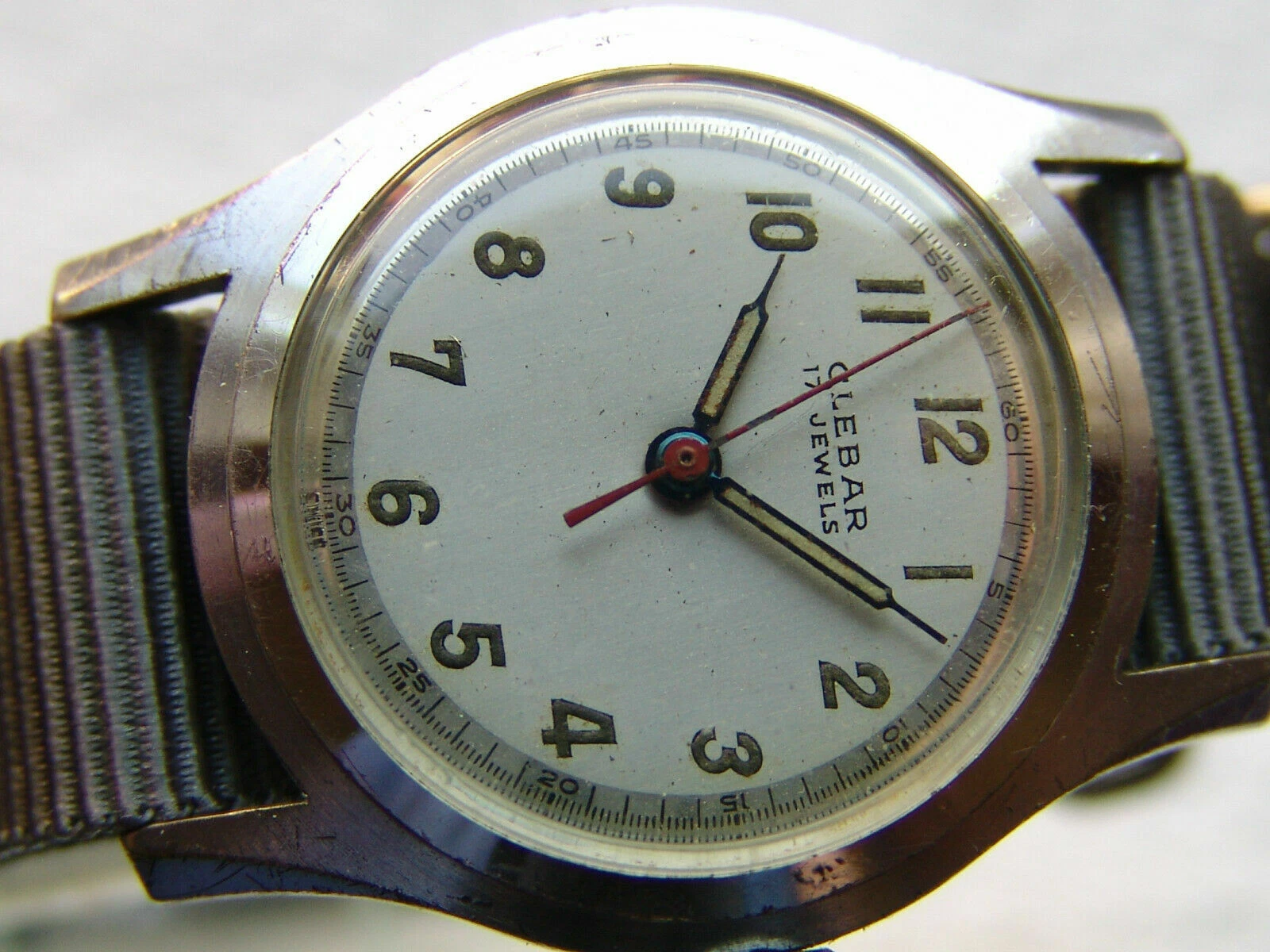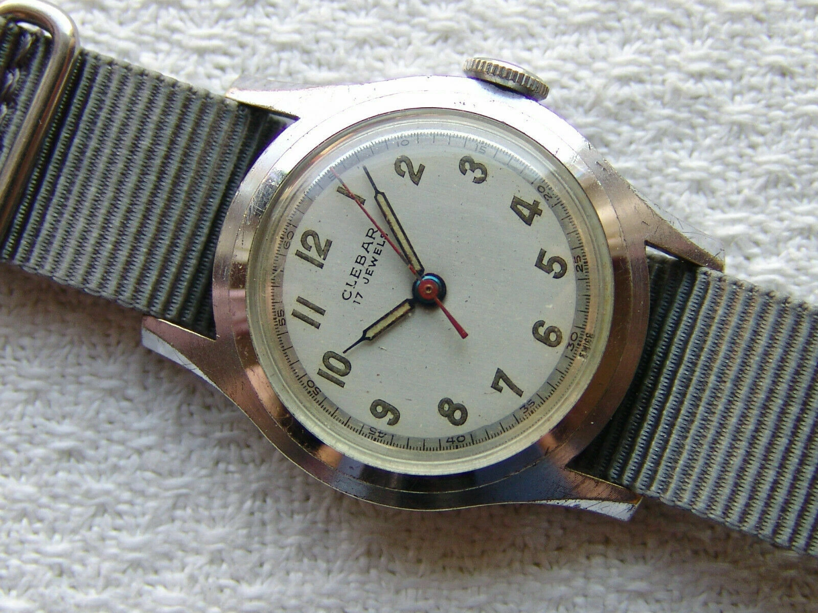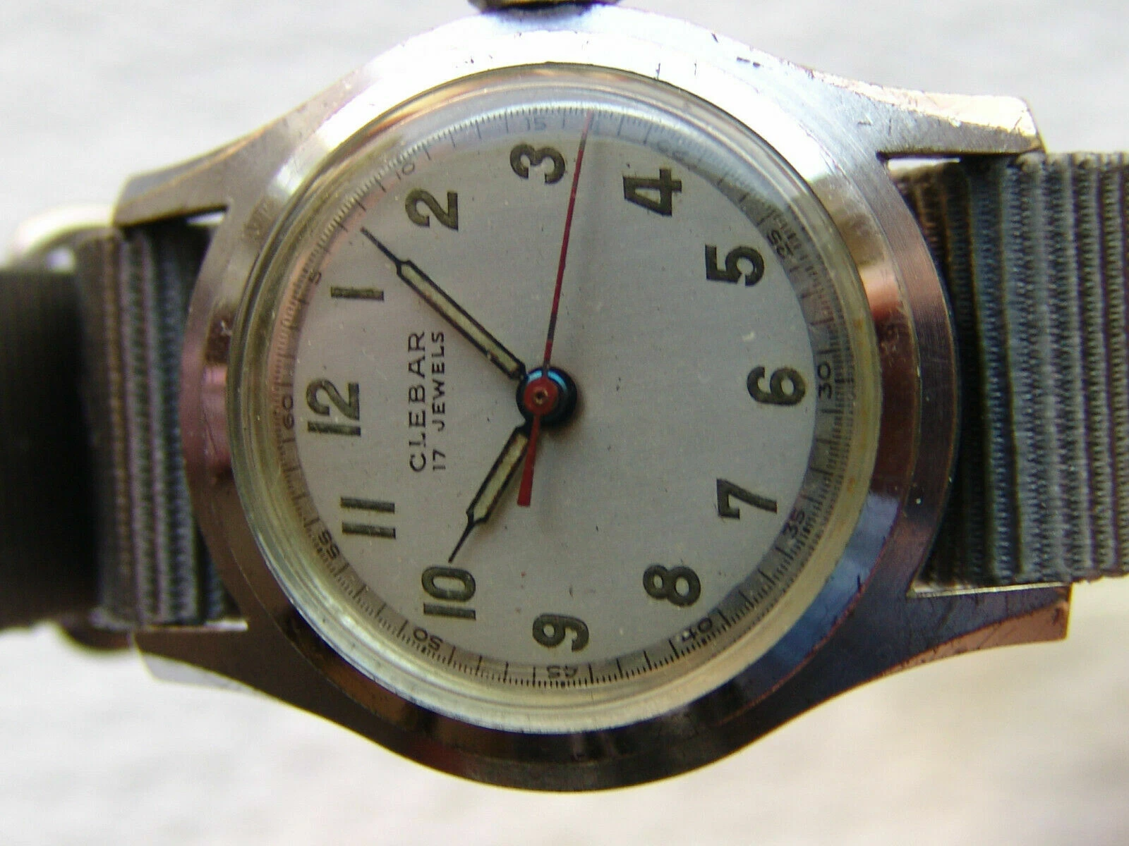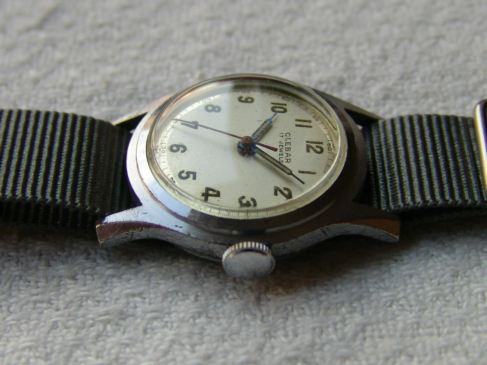MEN'S WWII PERIOD vintage CLEBAR good condition MILITARY STYLE WRISTWATCH