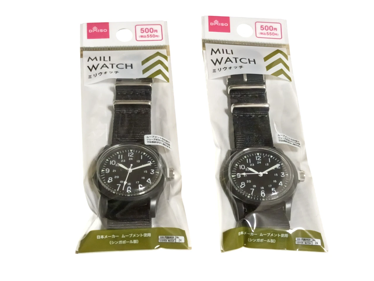 Daiso Japan MiliWatch Black 2pcs Set From Japan