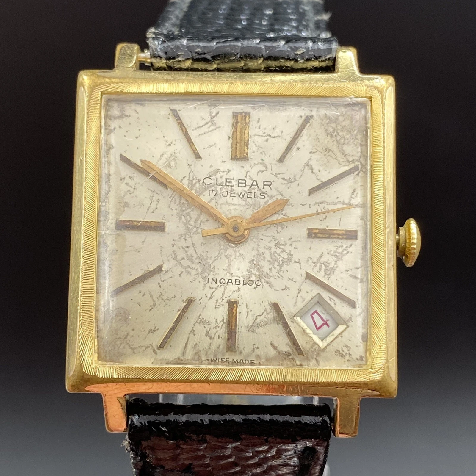 Vintage Clebar Date 17 Jewels Incabloc Watch Mechanical Swiss Plaque G 10