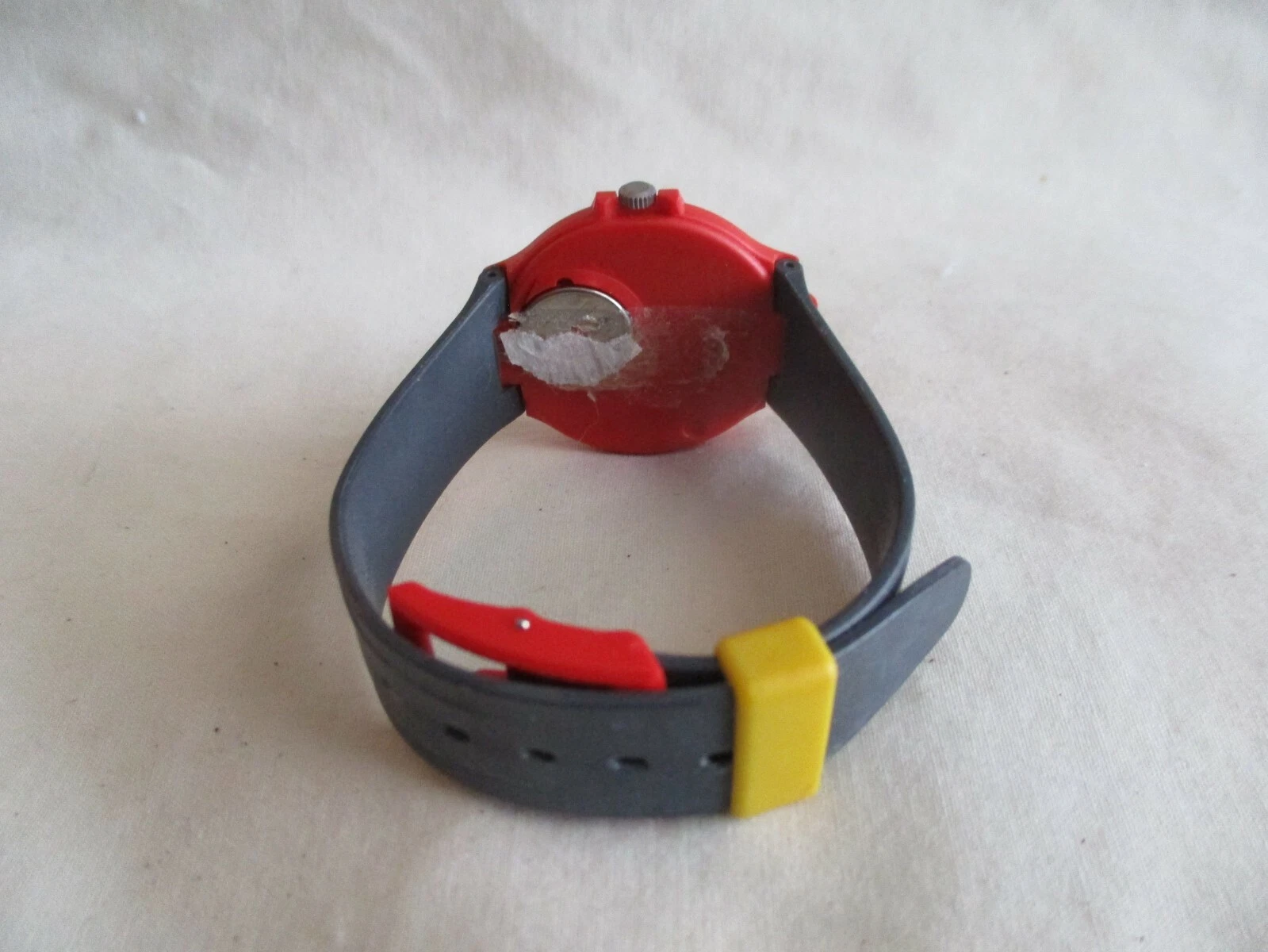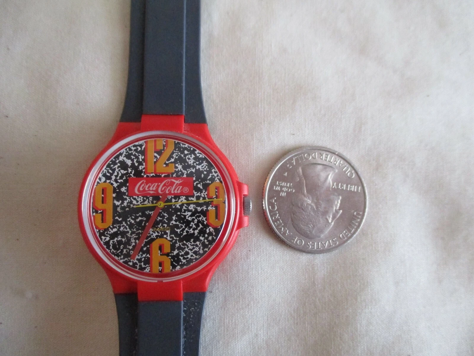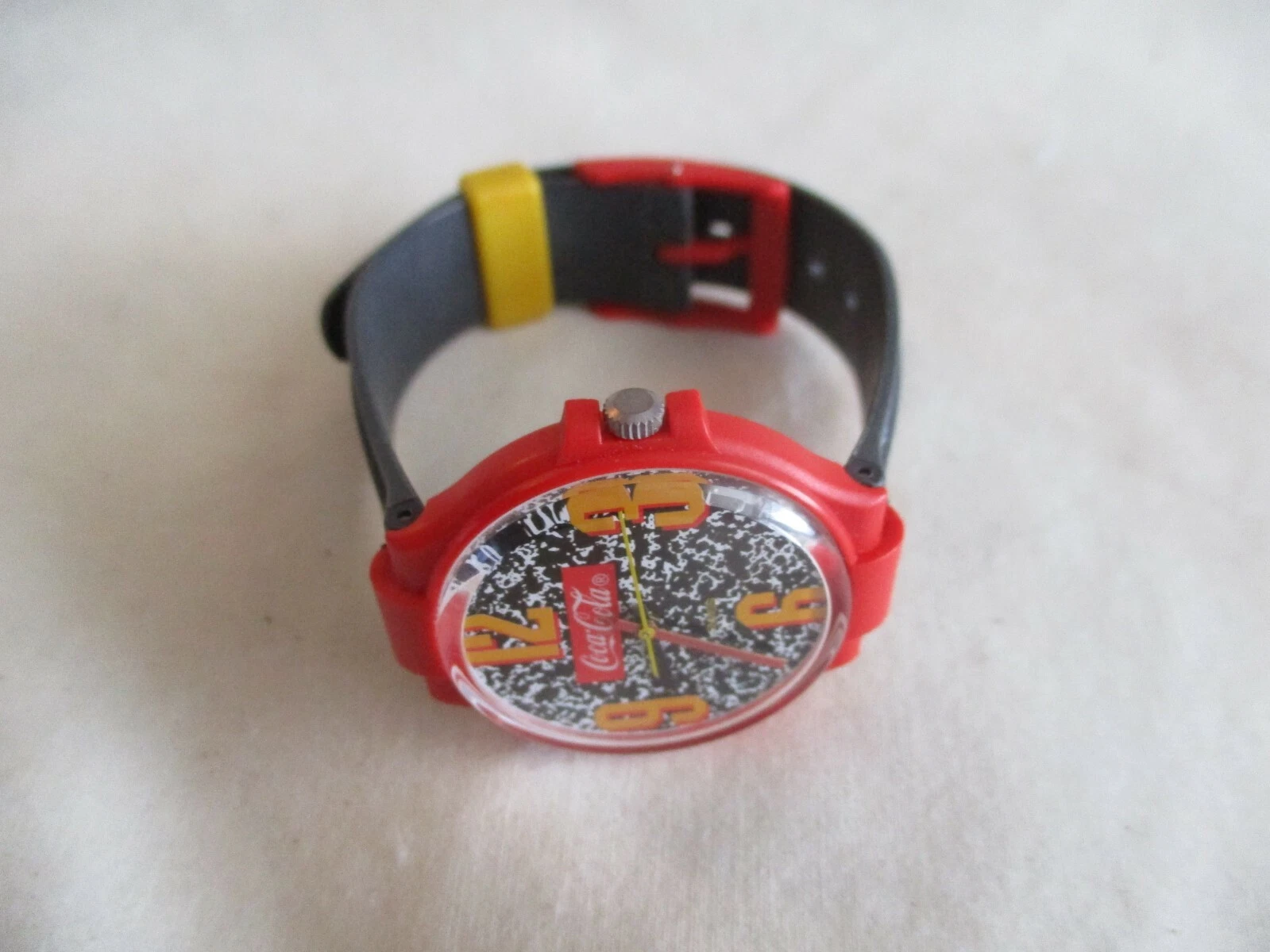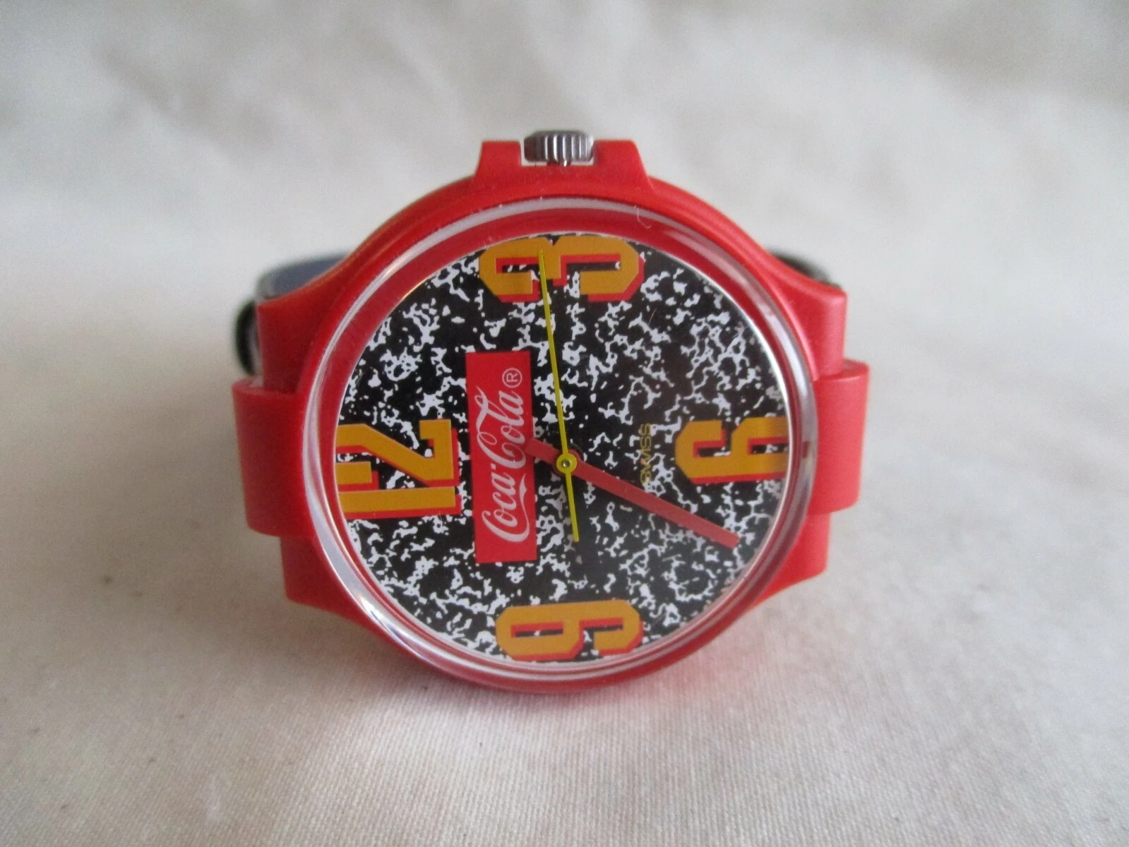 Coca Cola Swiss Made Wristwatch Red Yellow Gray Buckle Band Collectible