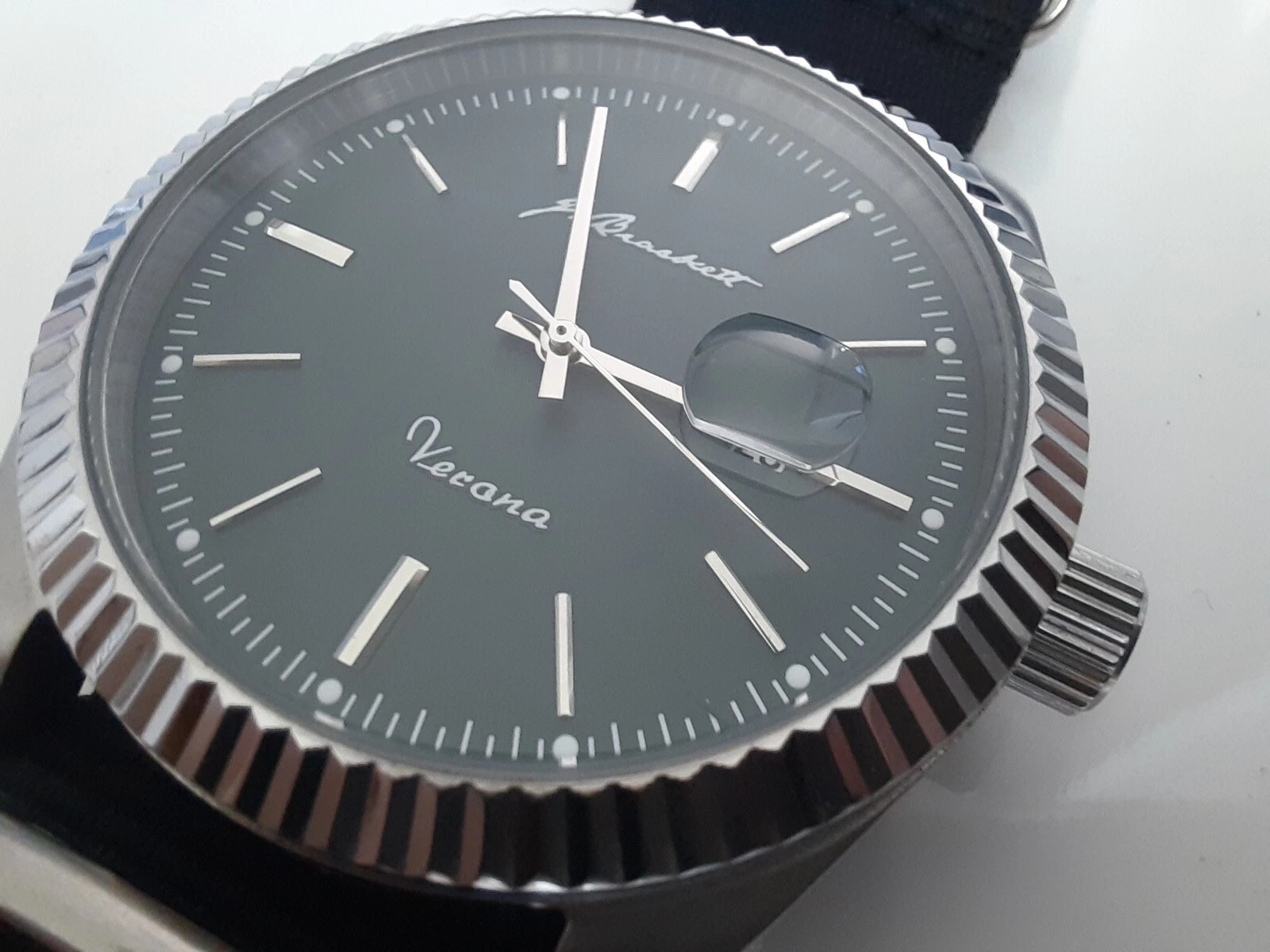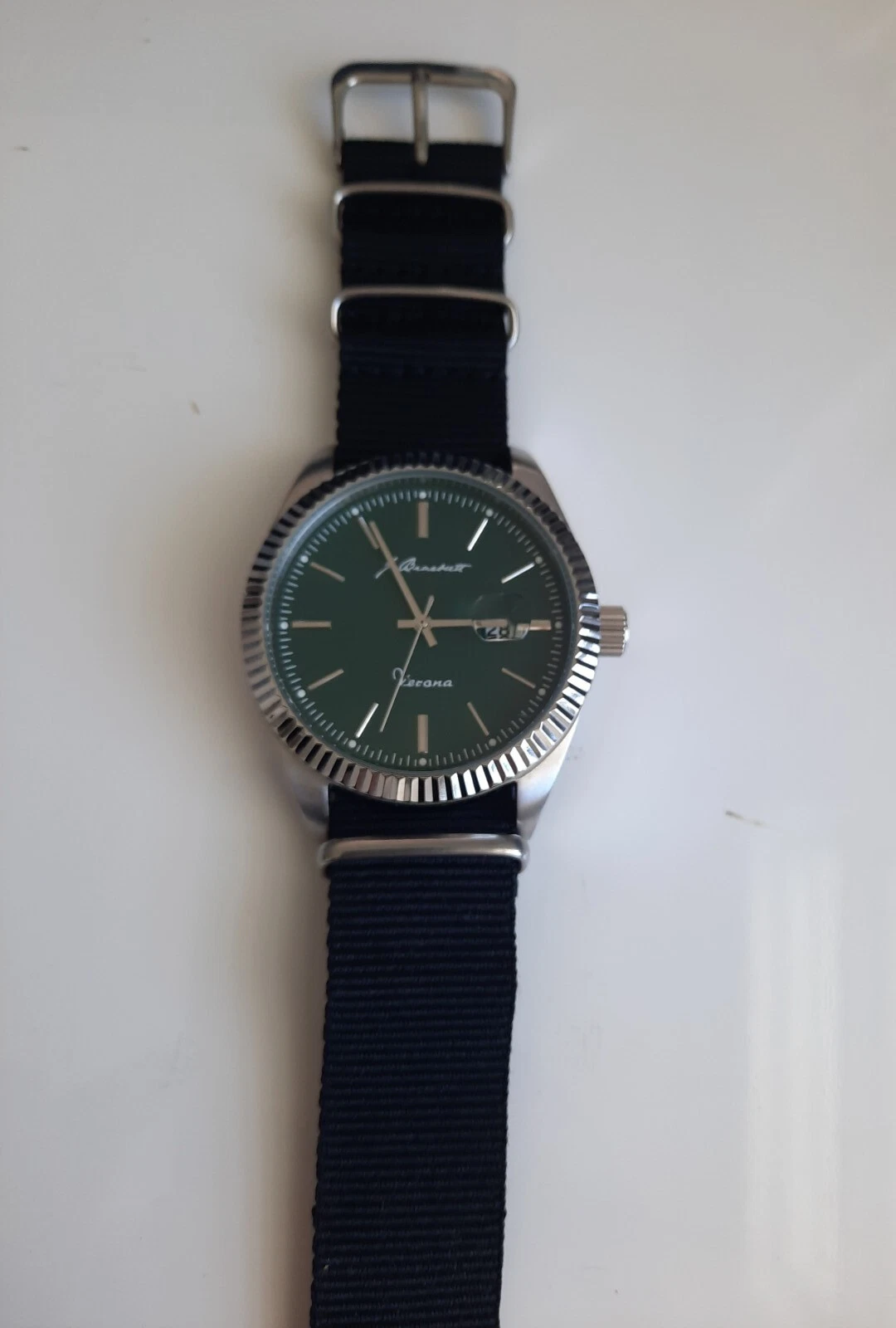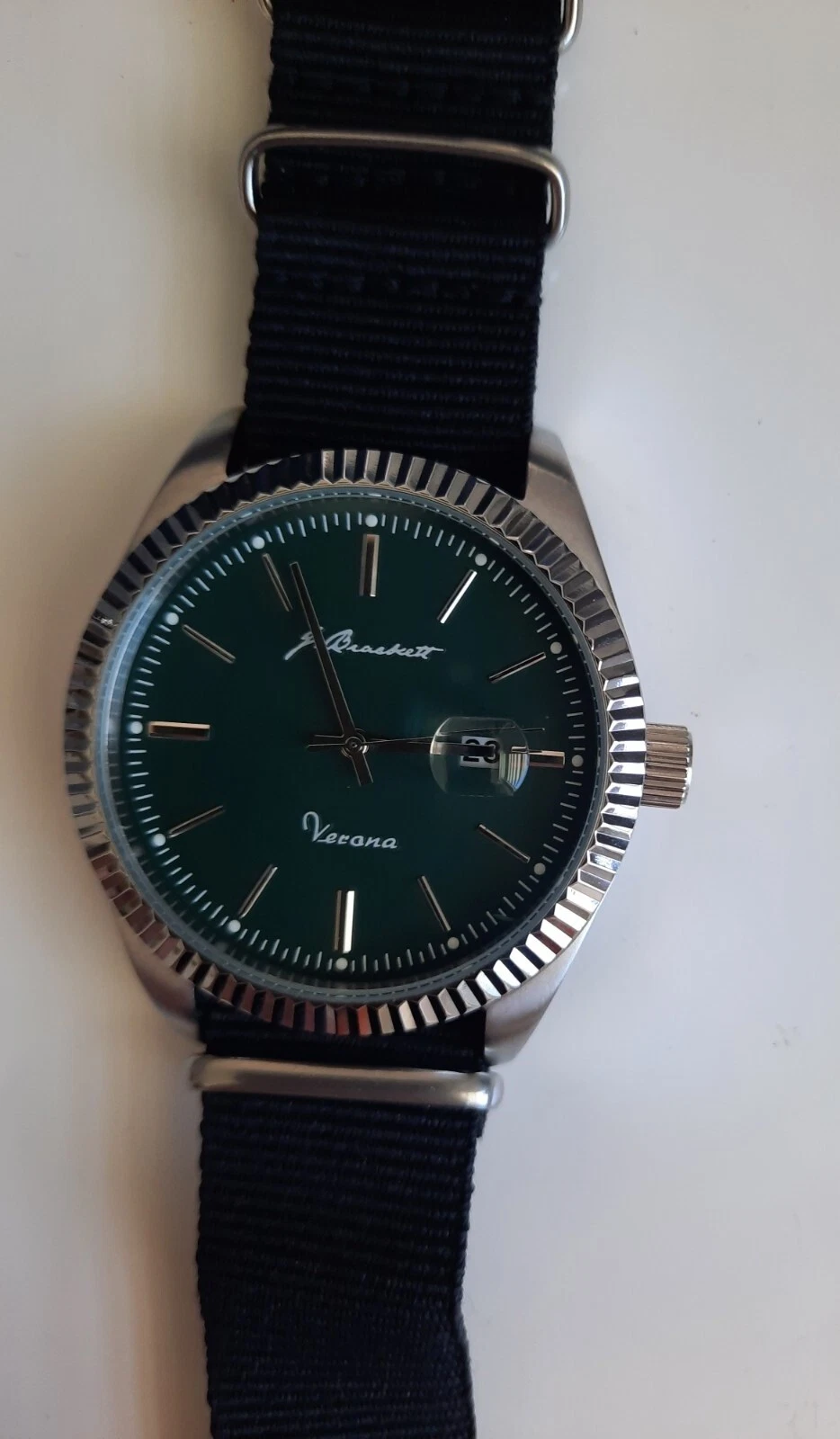 J. Brackett Verona Quartz 43 mm Case Green Dial w After Market Black Nylon Strap