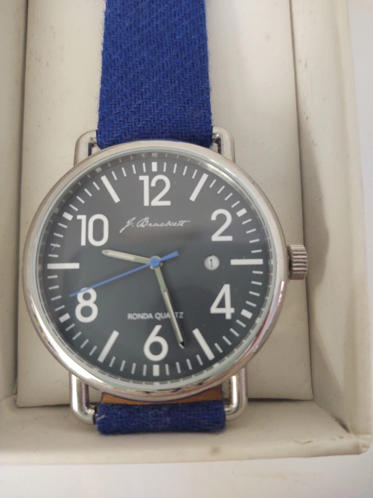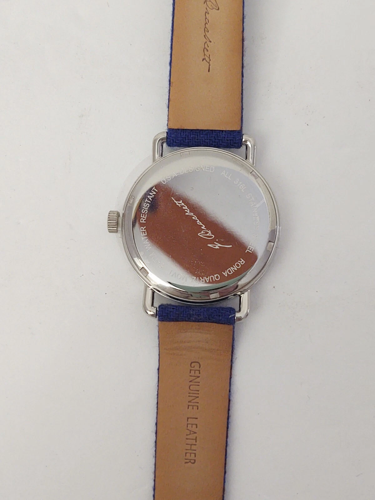 J. Brackett Camden 42 mm SS Case Gray Dial Swiss Ronda Movement Blue Wool Strap