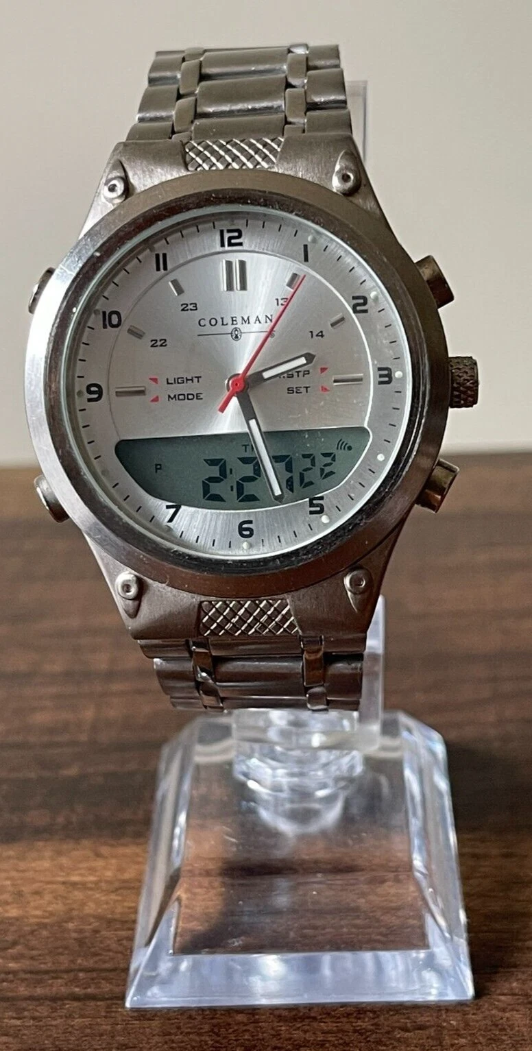 Coleman Quartz Watch Men 30m Silver Analog Digital Alarm Chrono works