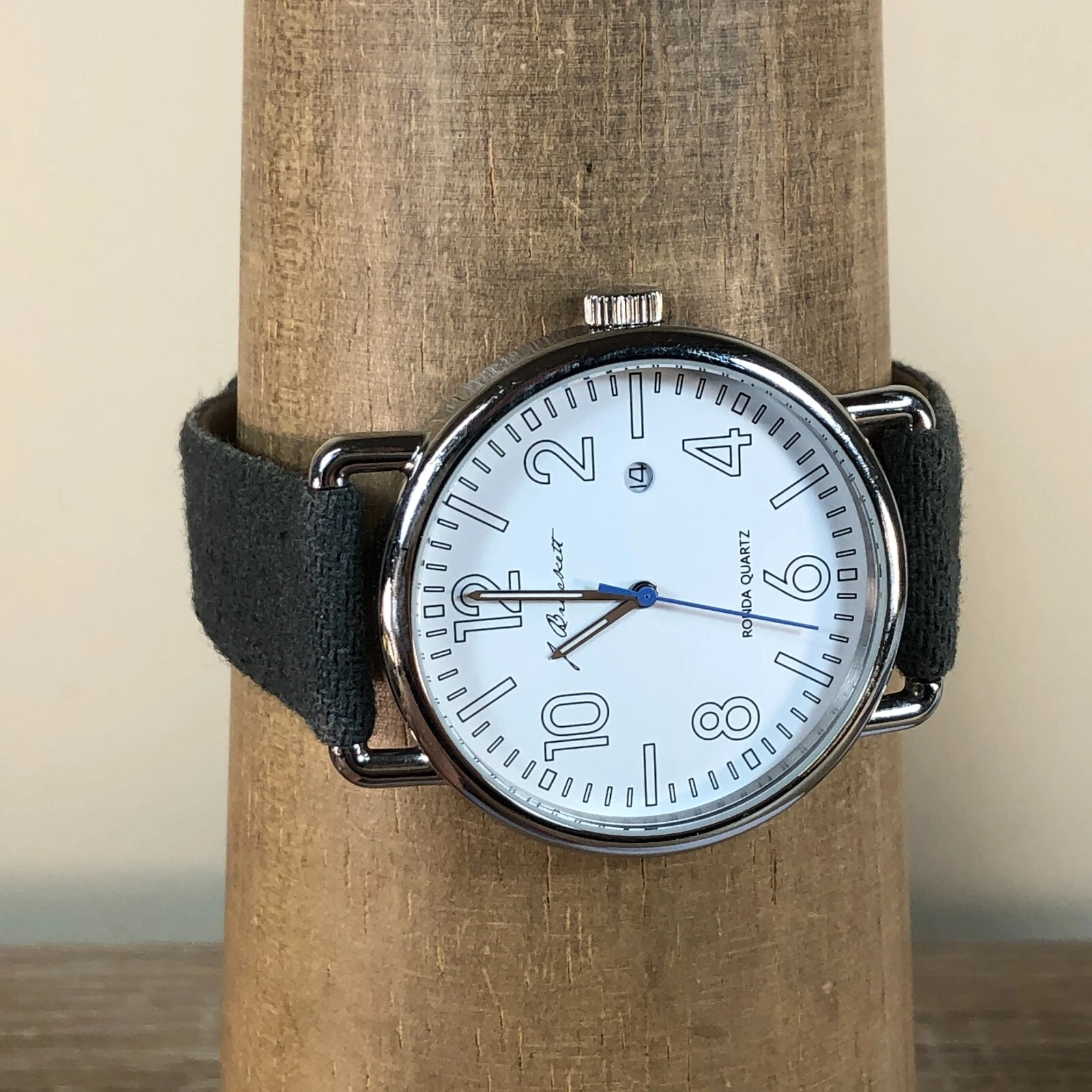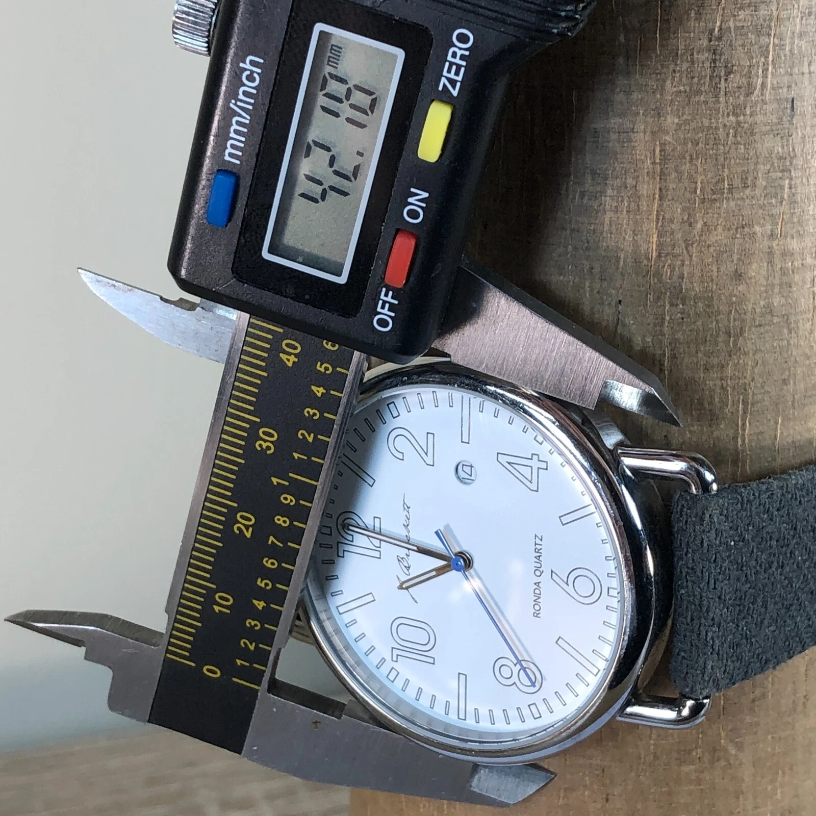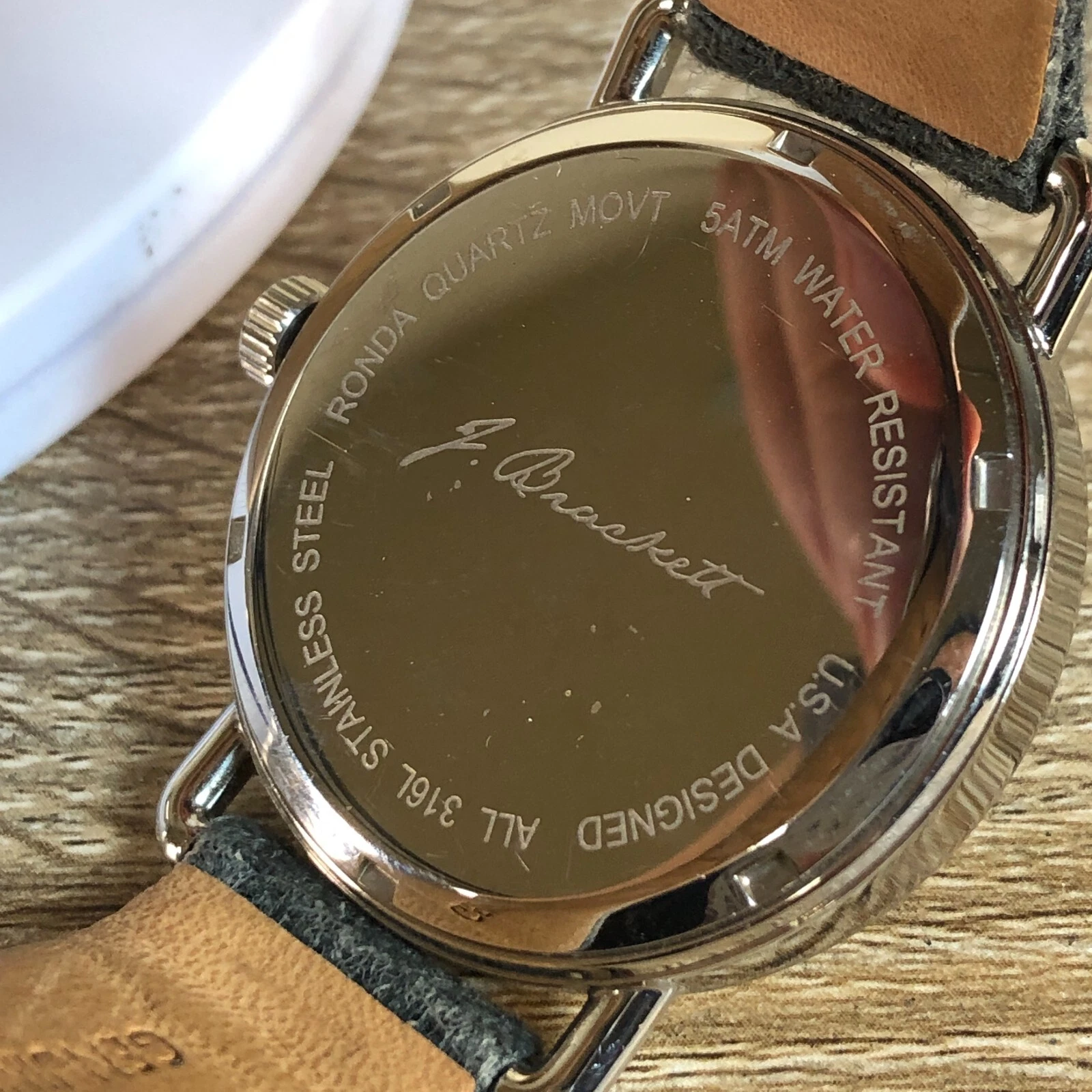 J. Brackett Men White Dial Date Leather Ronda 42mm Quartz Analog Watch 8 1/4"