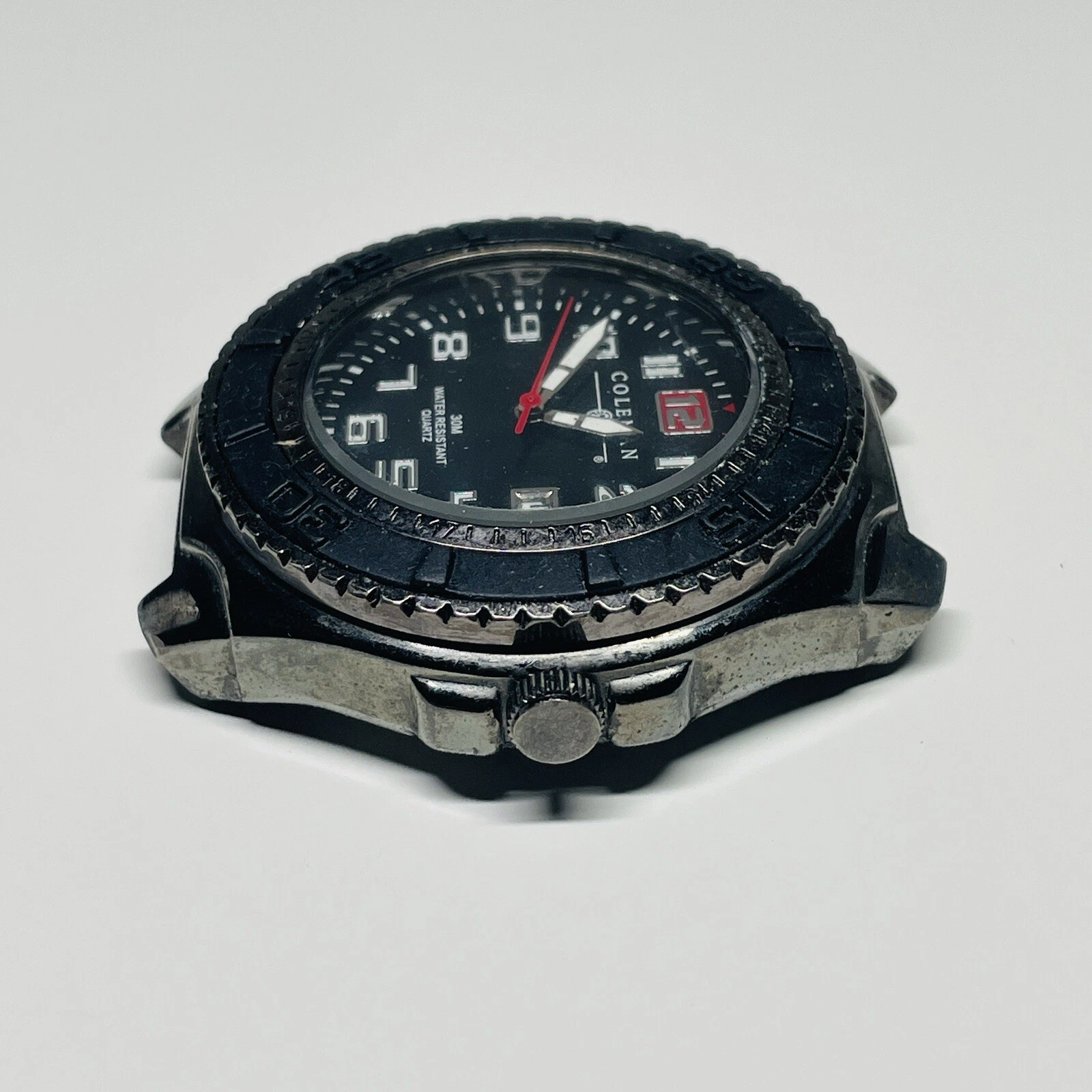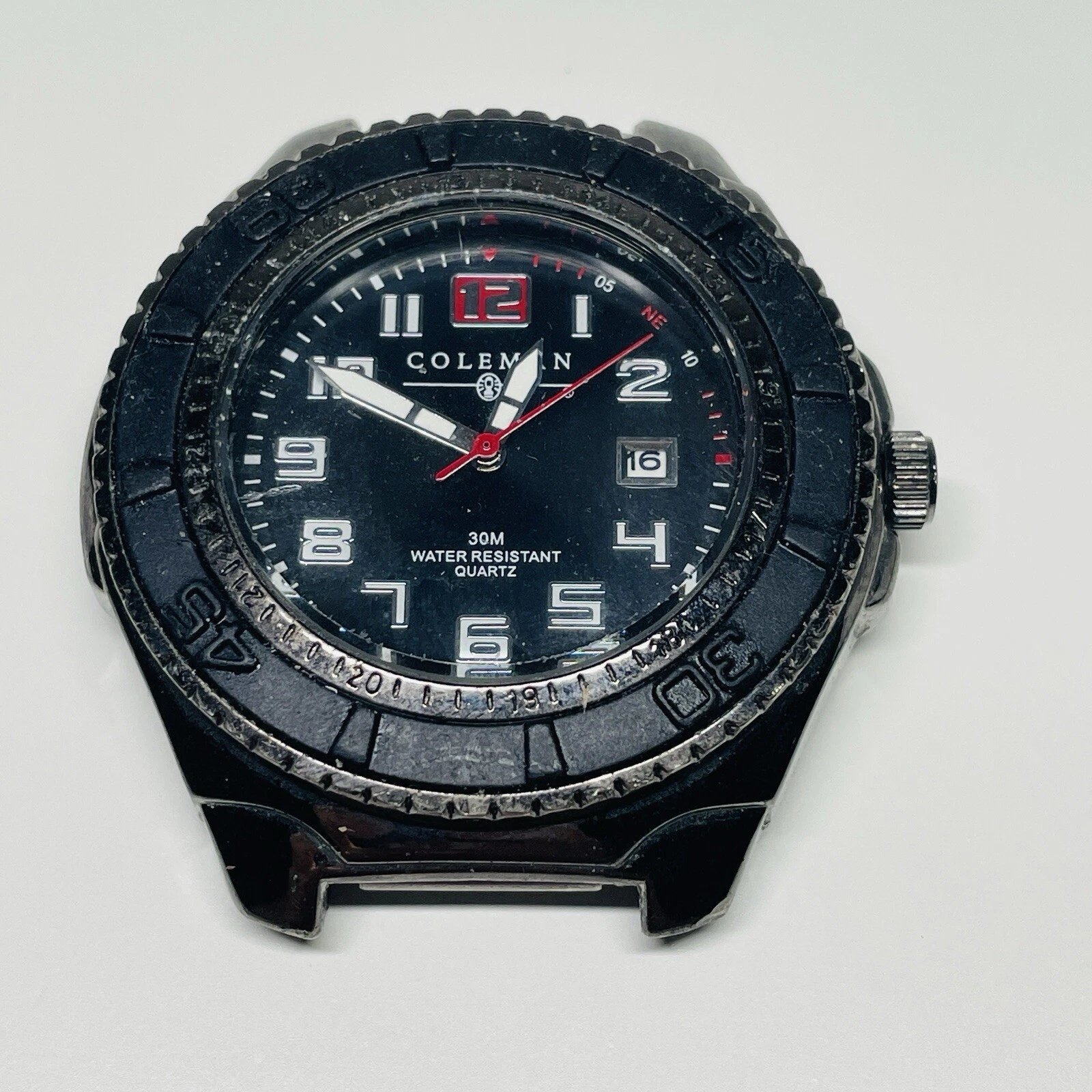 Coleman Watch Men 45mm Gunmetal Gray Rotating Bezel Date New Battery NO BAND