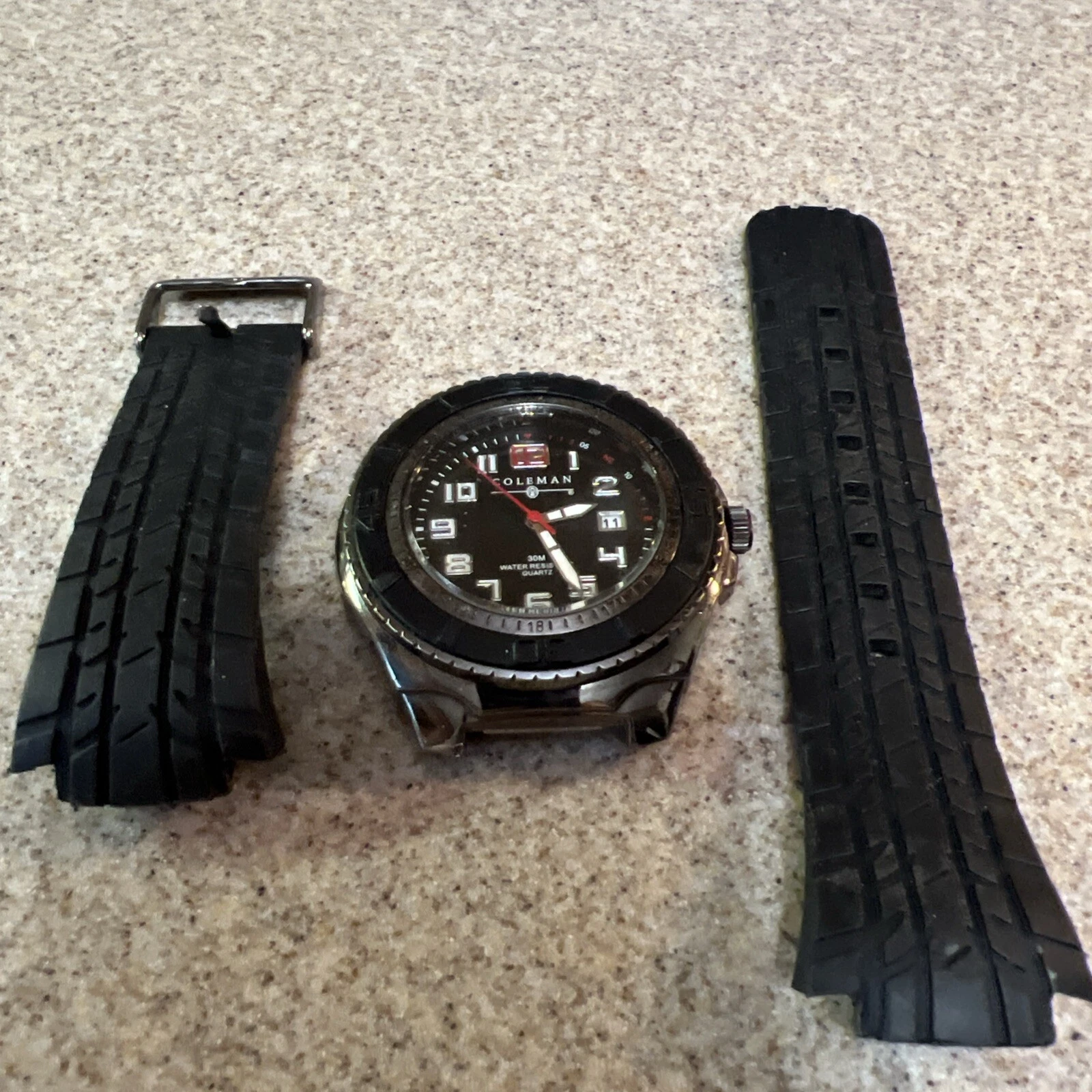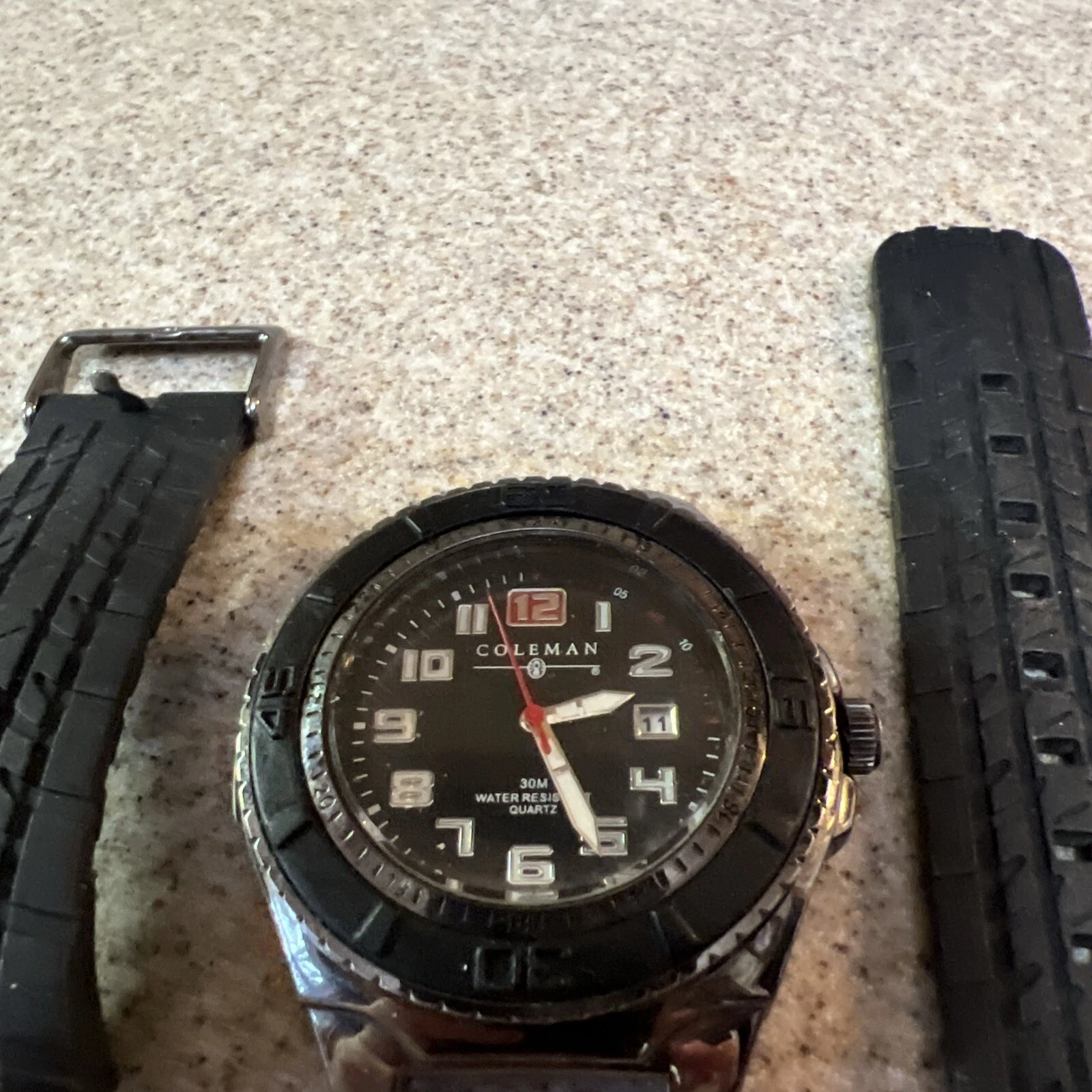 Vintage Coleman Date Quartz Watch 40-978 Black Rubber Band w/ SS Clasp Batt