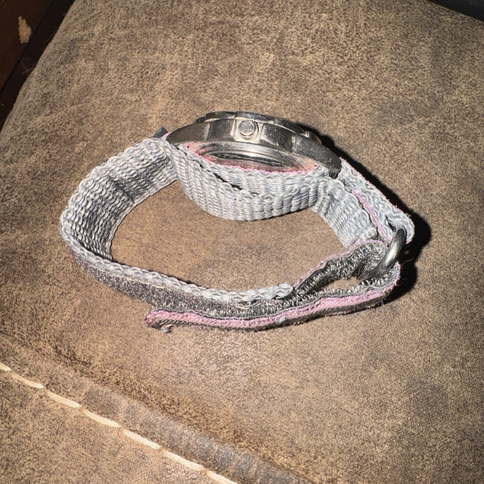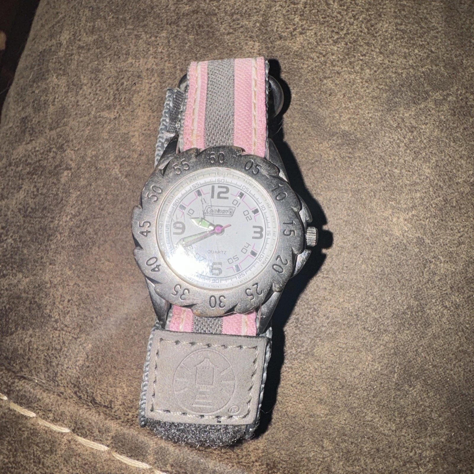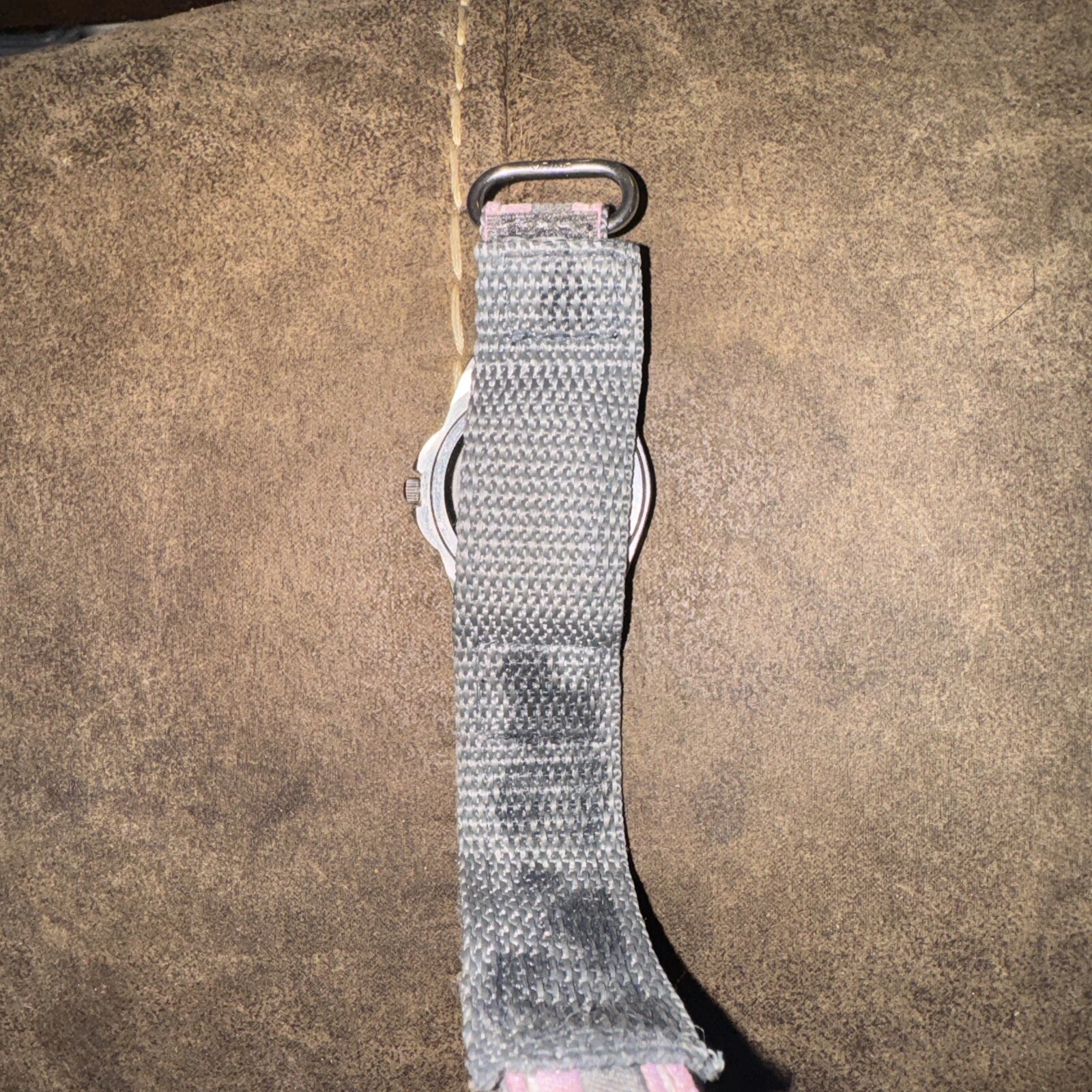 Coleman Watch Women Silver Tone 33mm Saw Blade Bezel Pink Gray Band New Battery