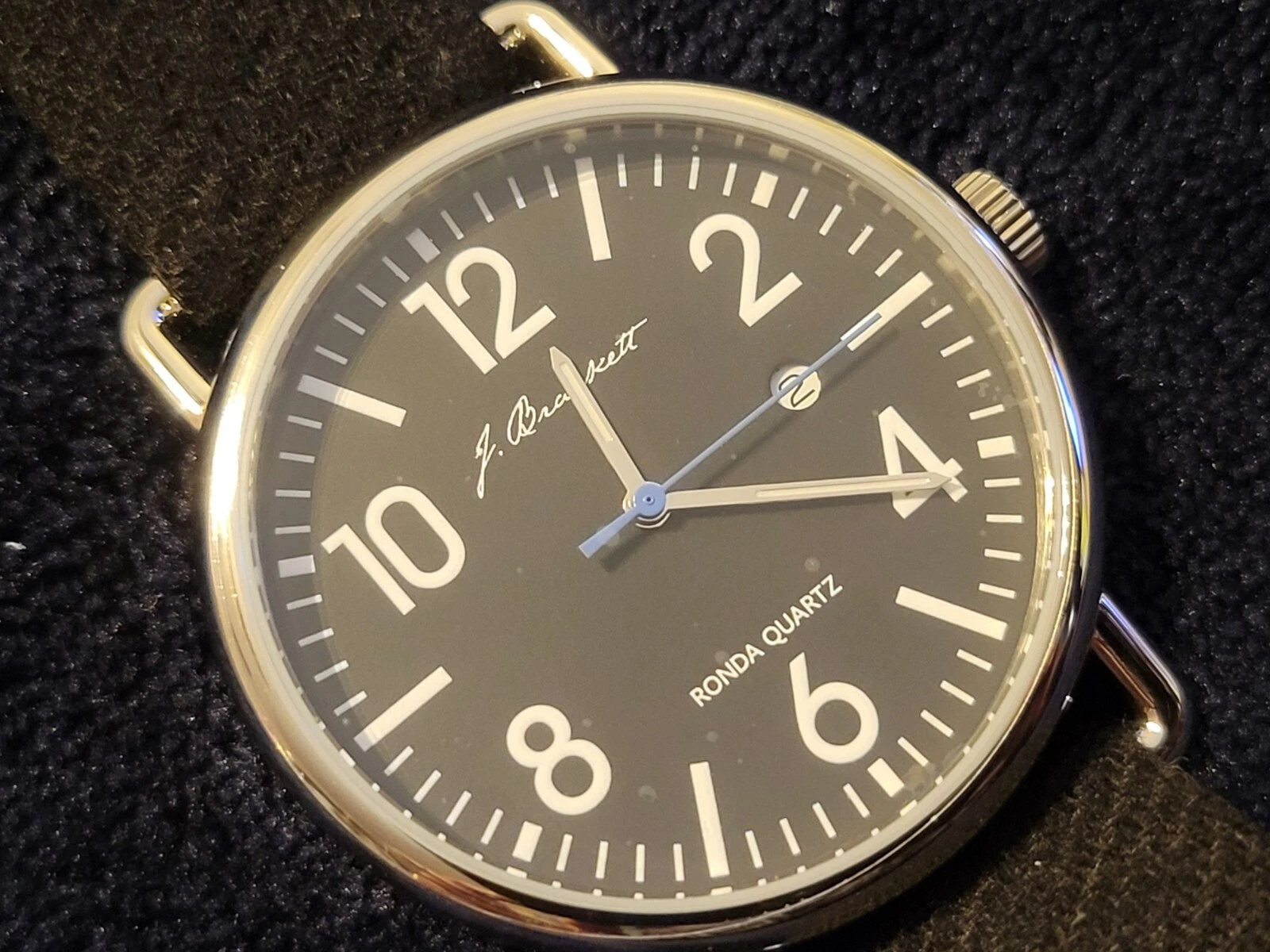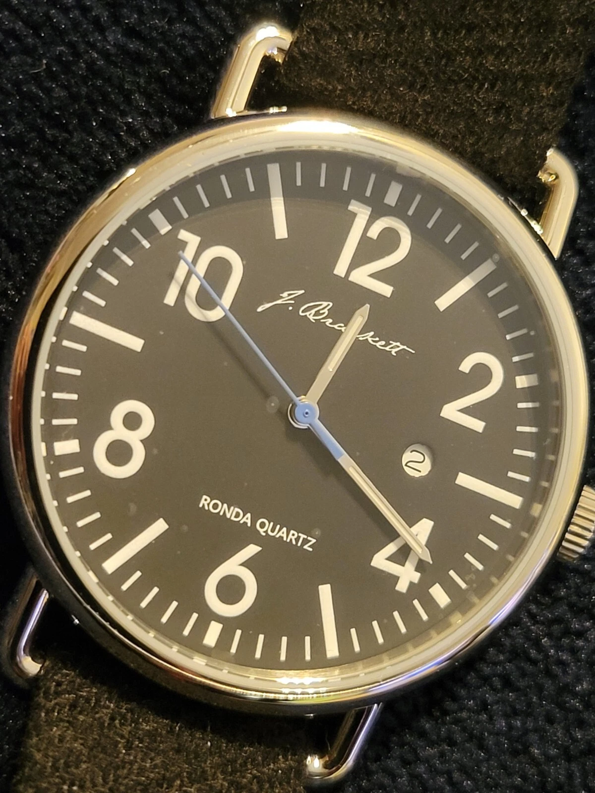 J.Brackett Black Wool Band Ronda Quartz Watch  New