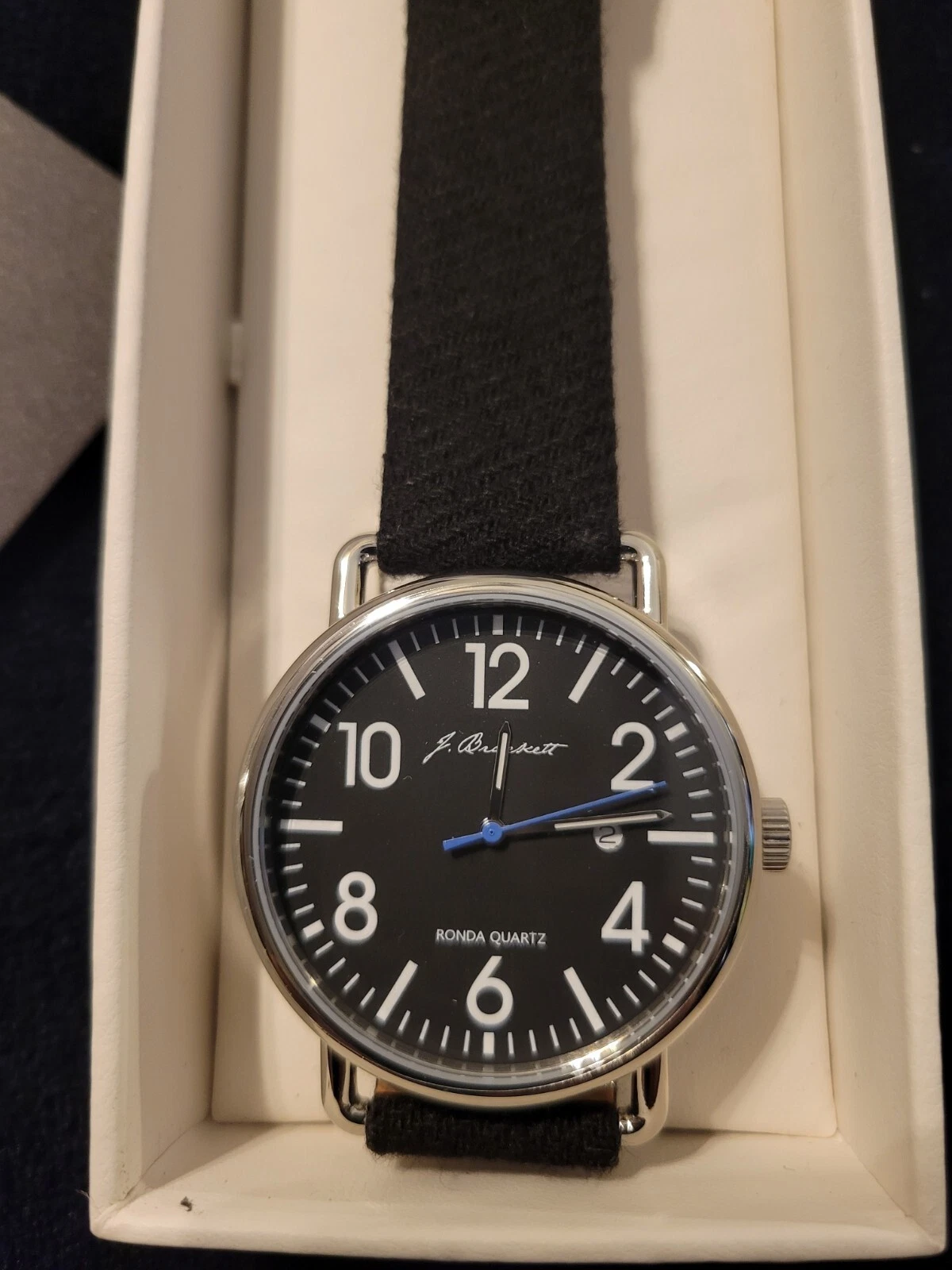 J.Brackett Black Wool Band Ronda Quartz Watch New