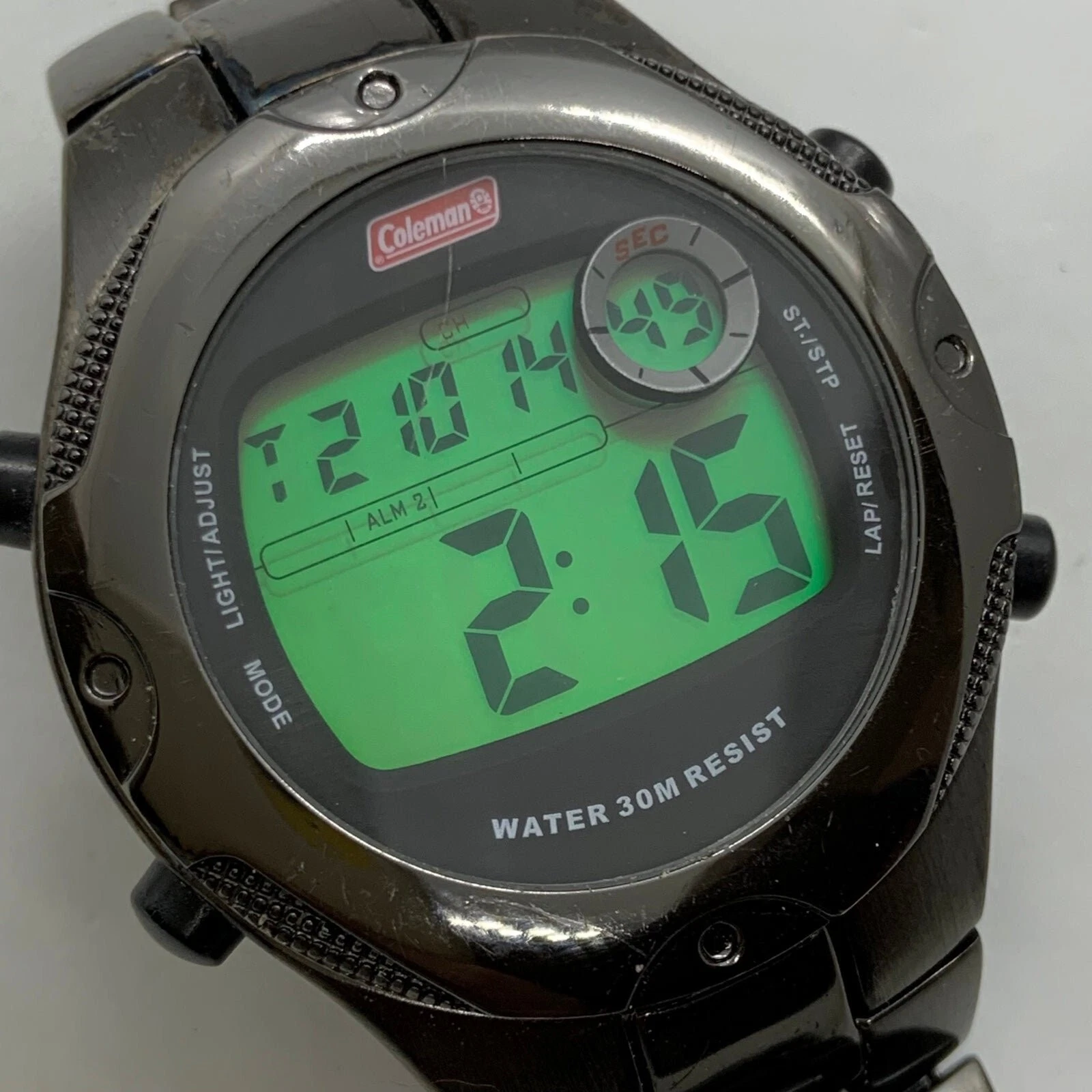 Coleman Watch 42mm Men Digital light up black Tone Day Date up to 7.5” runs