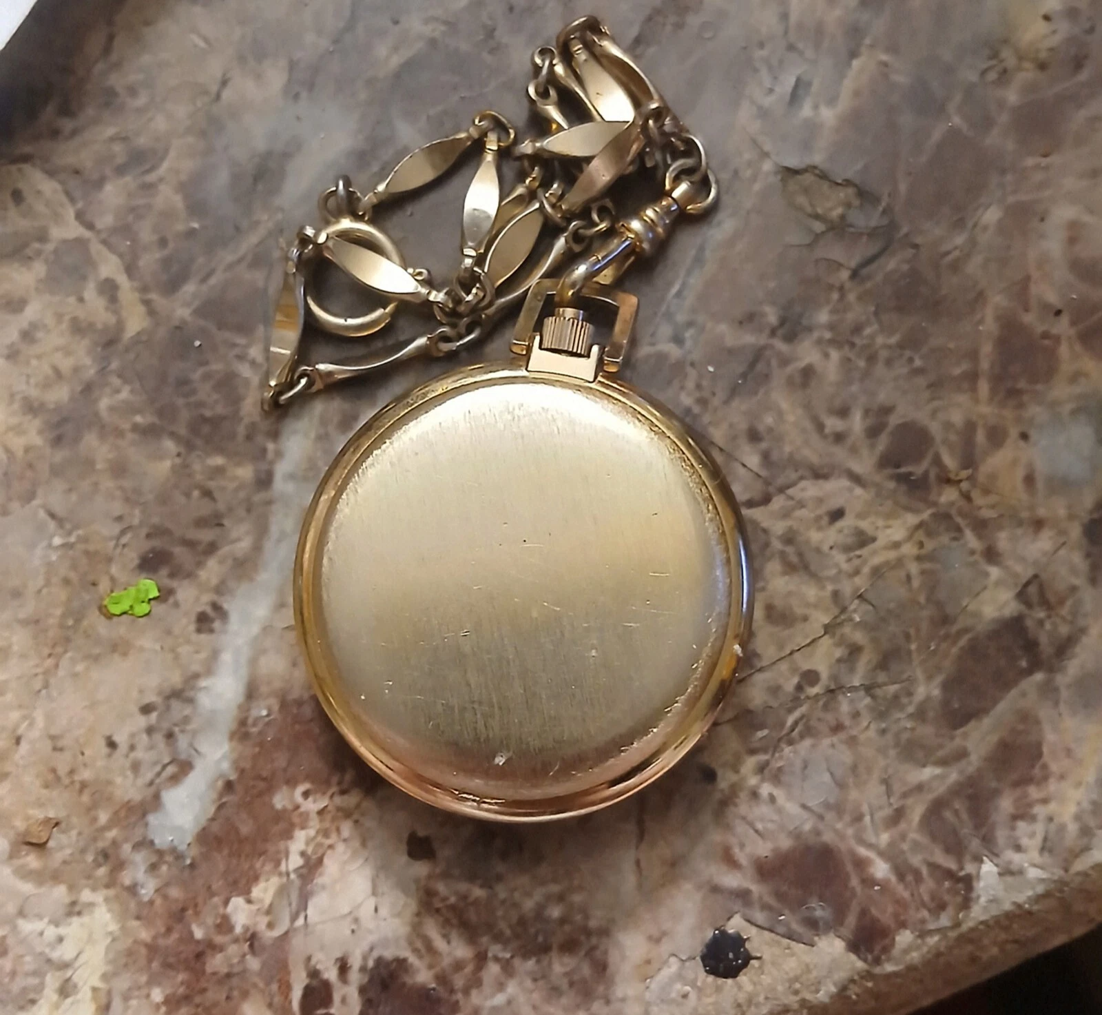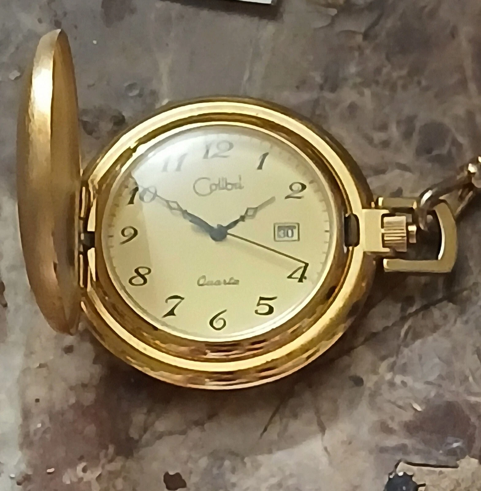 Vintage COLIBRI Quartz Pocket Watch W/ Chain. Date Aperture 2 Function Pocket