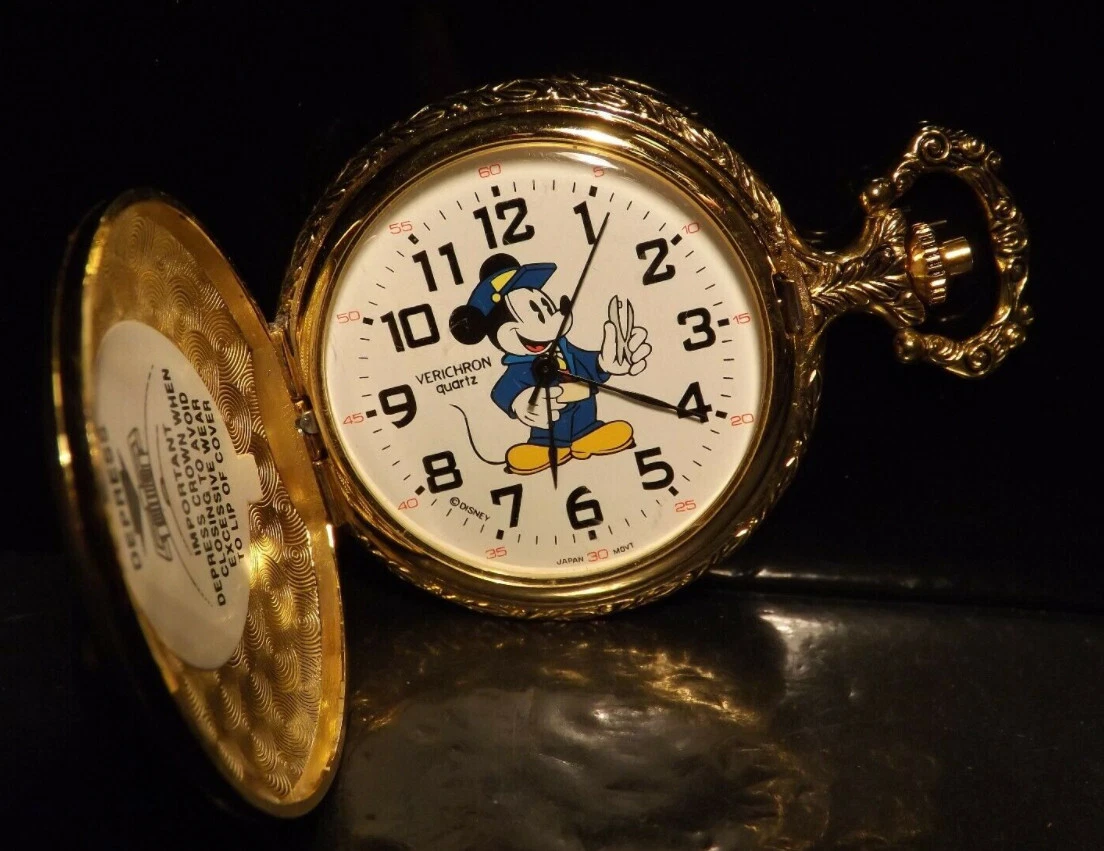 Disney Mens Colibri Vintage Mickey Mouse Pocket Watch (Train Ticket)-VVHTF-New