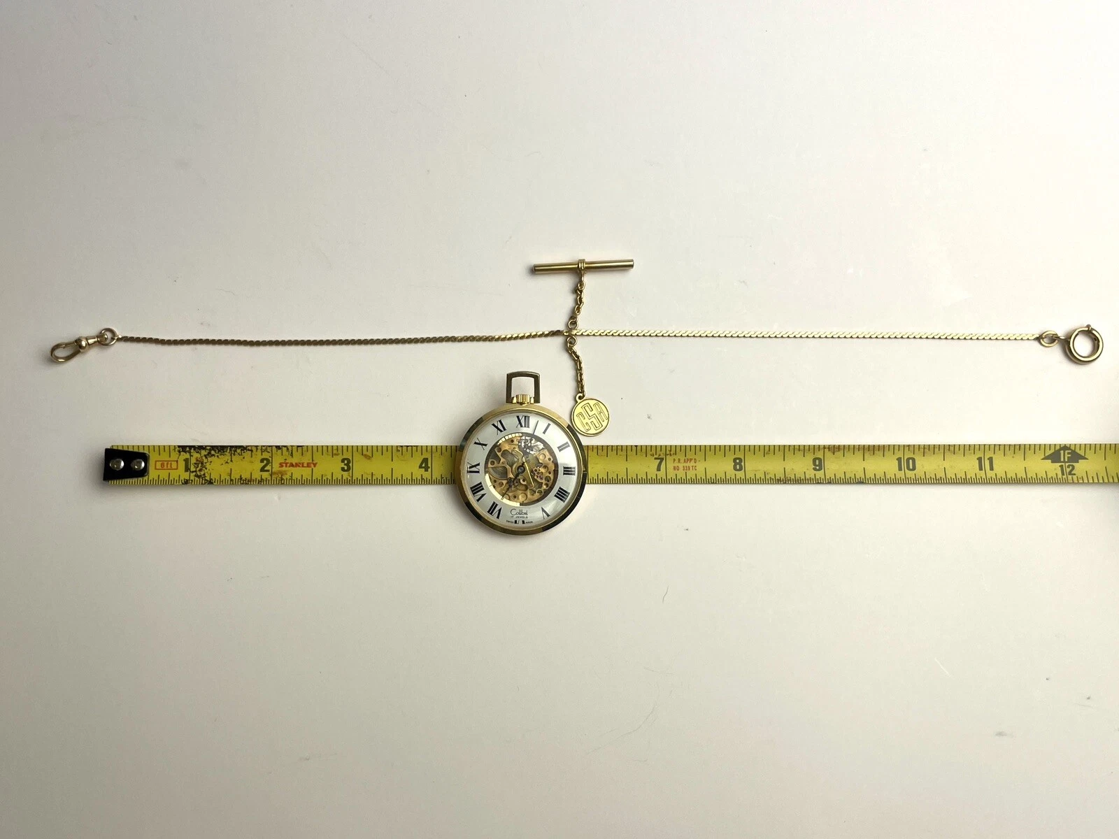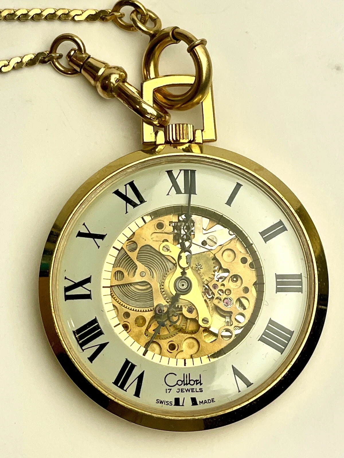Colibri 17 Jewel Swiss Made 12K Gold Filled Skeleton Pocket Watch With Chain