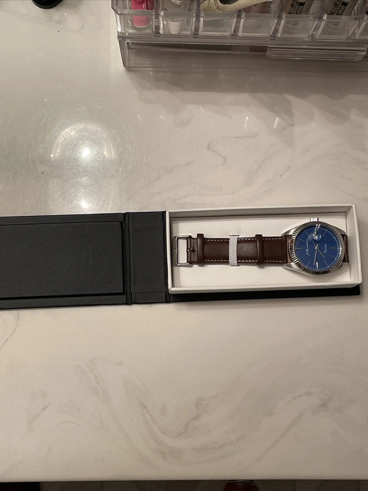 J. Brackett Verona Quartz 43 mm Case Blue Dial w Brown Leather Strap