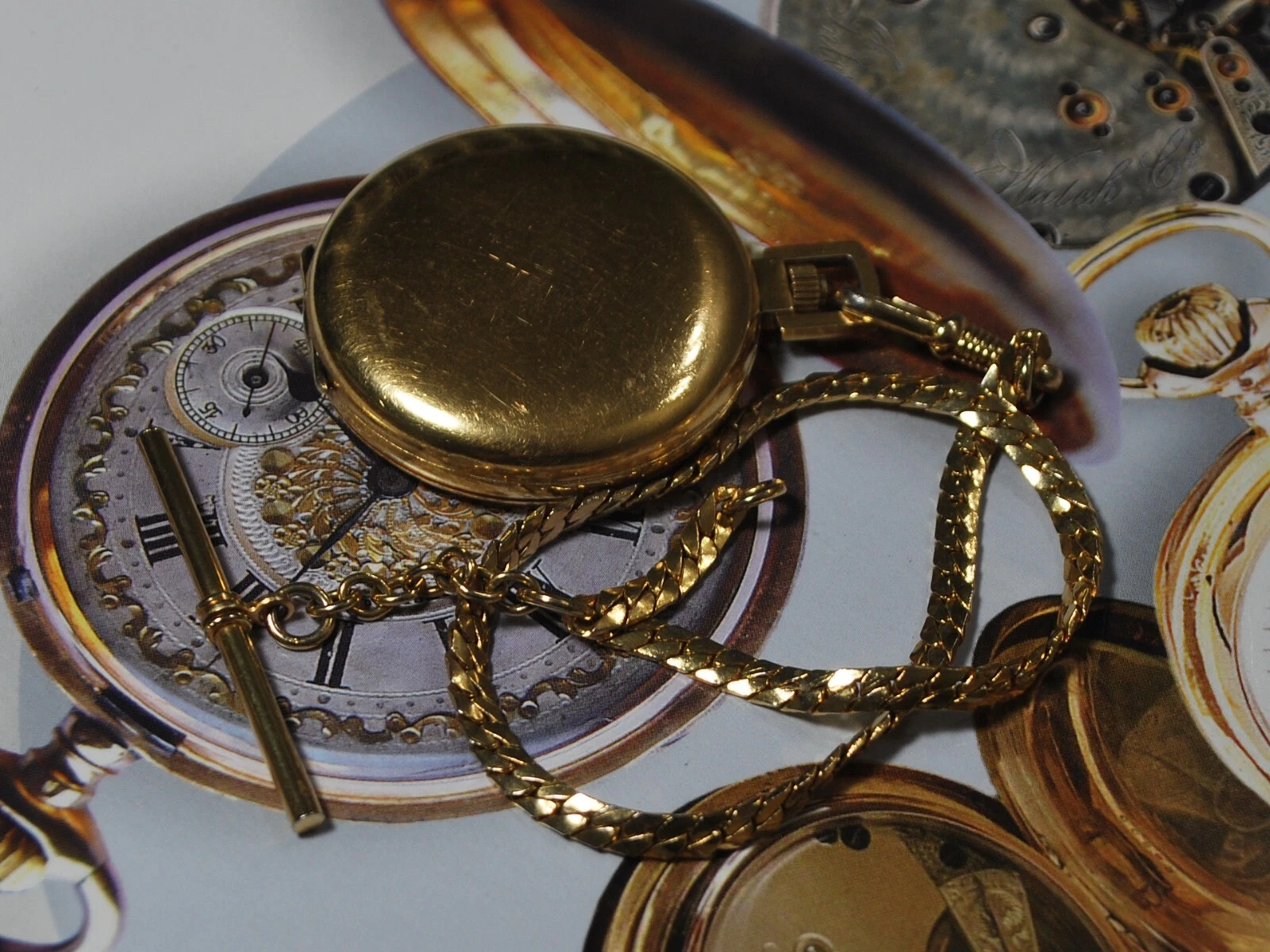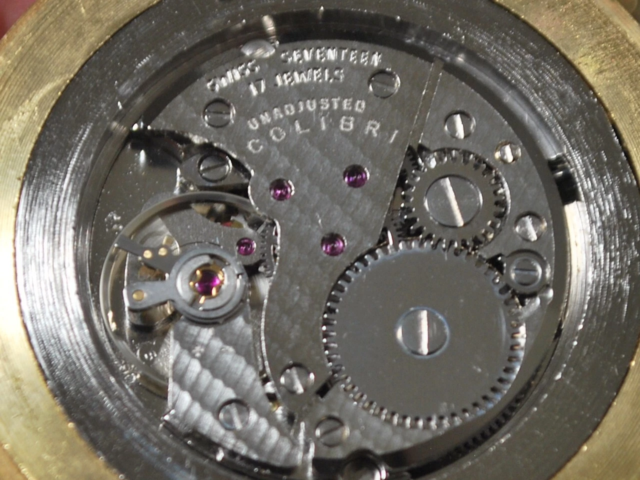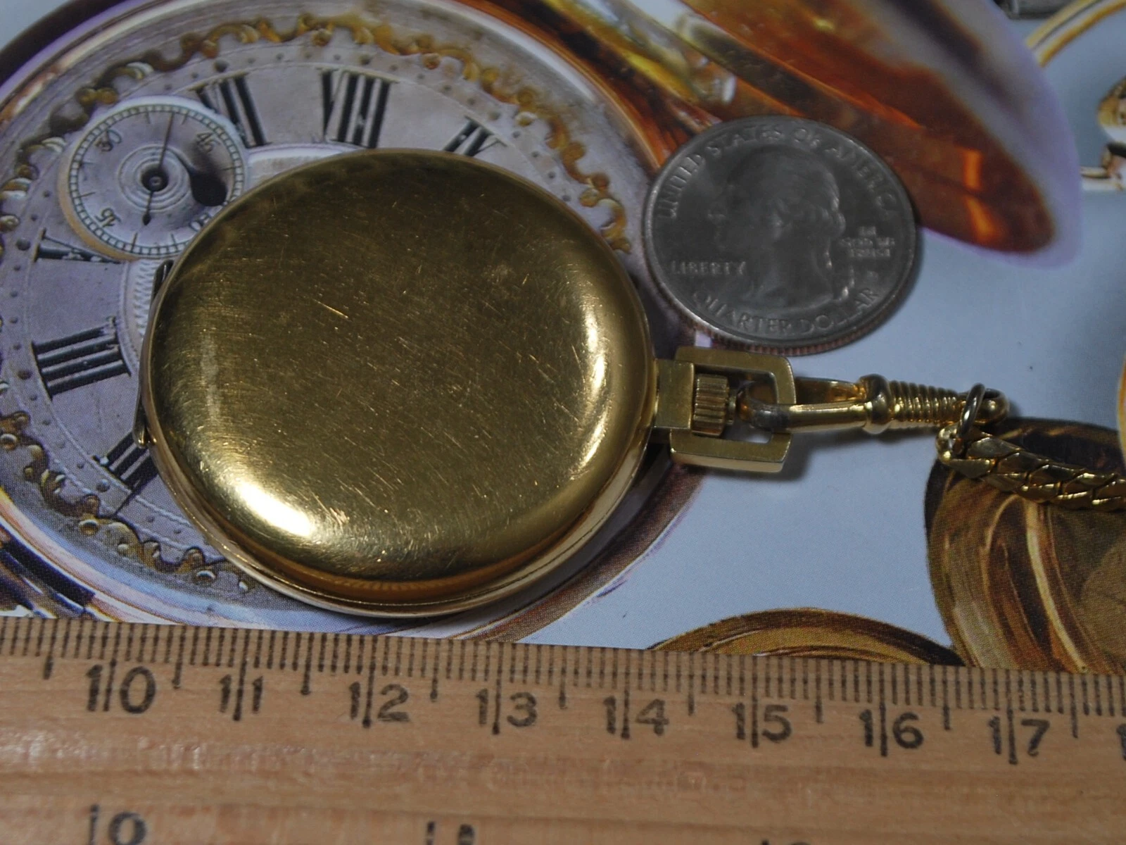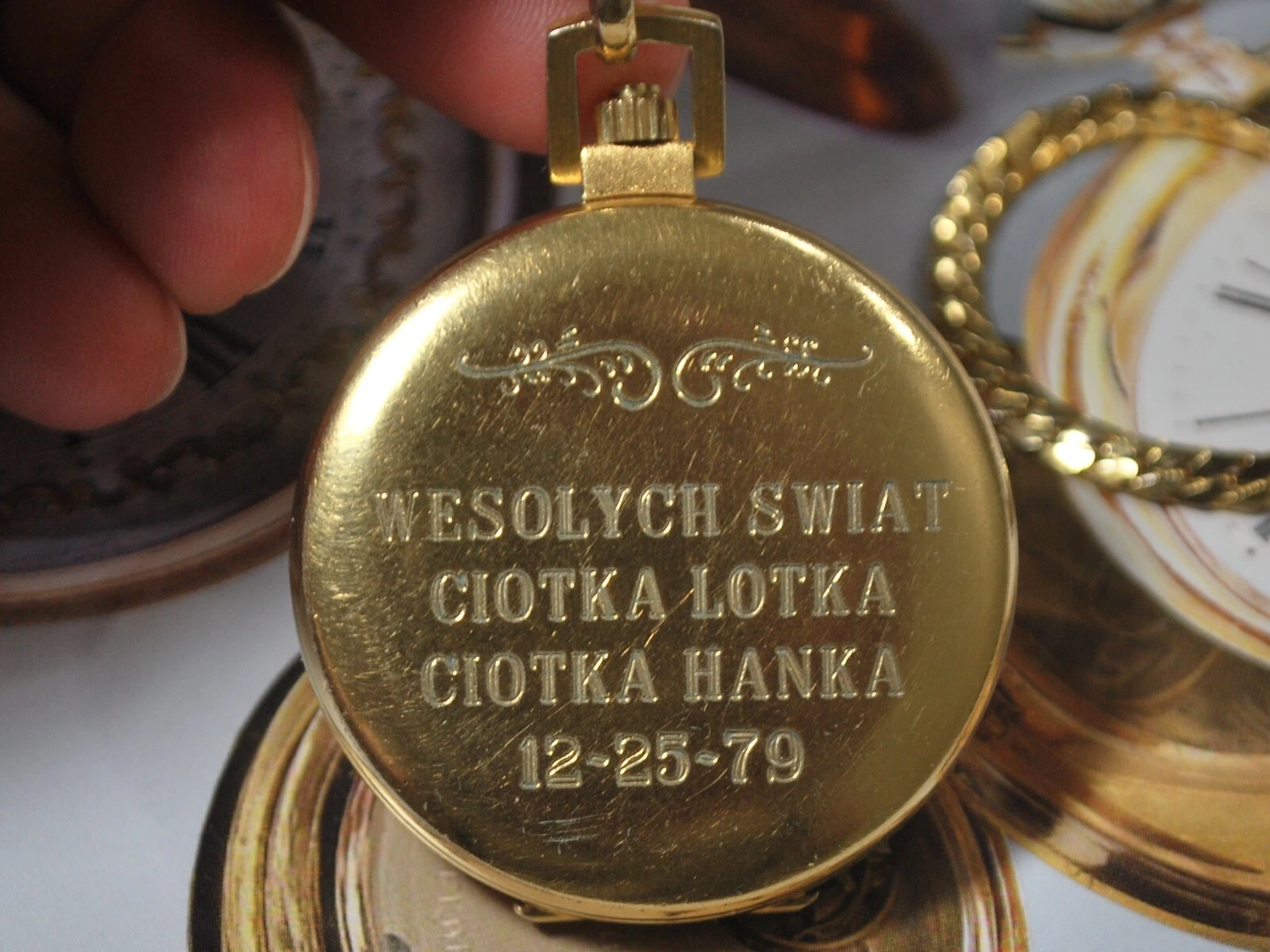 Vintage 1979 Swiss COLIBRI Gold Tone 12s 17J Hunter Case Pocket Watch w/Chain