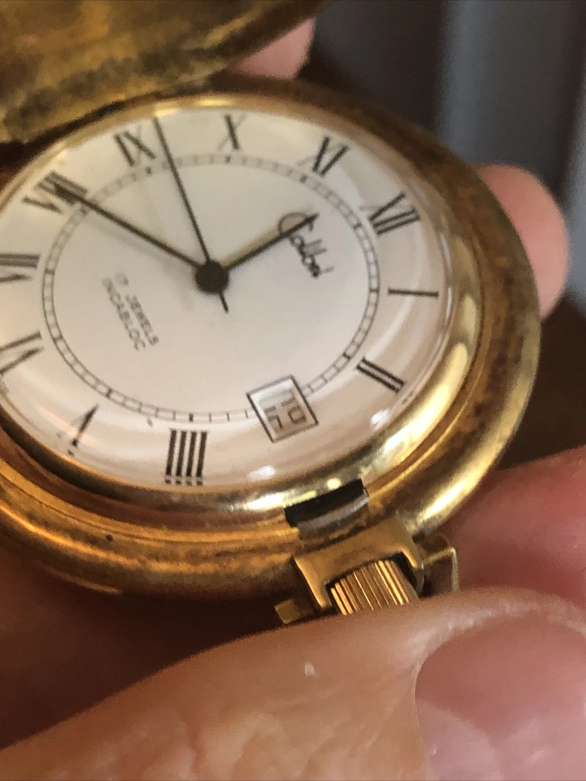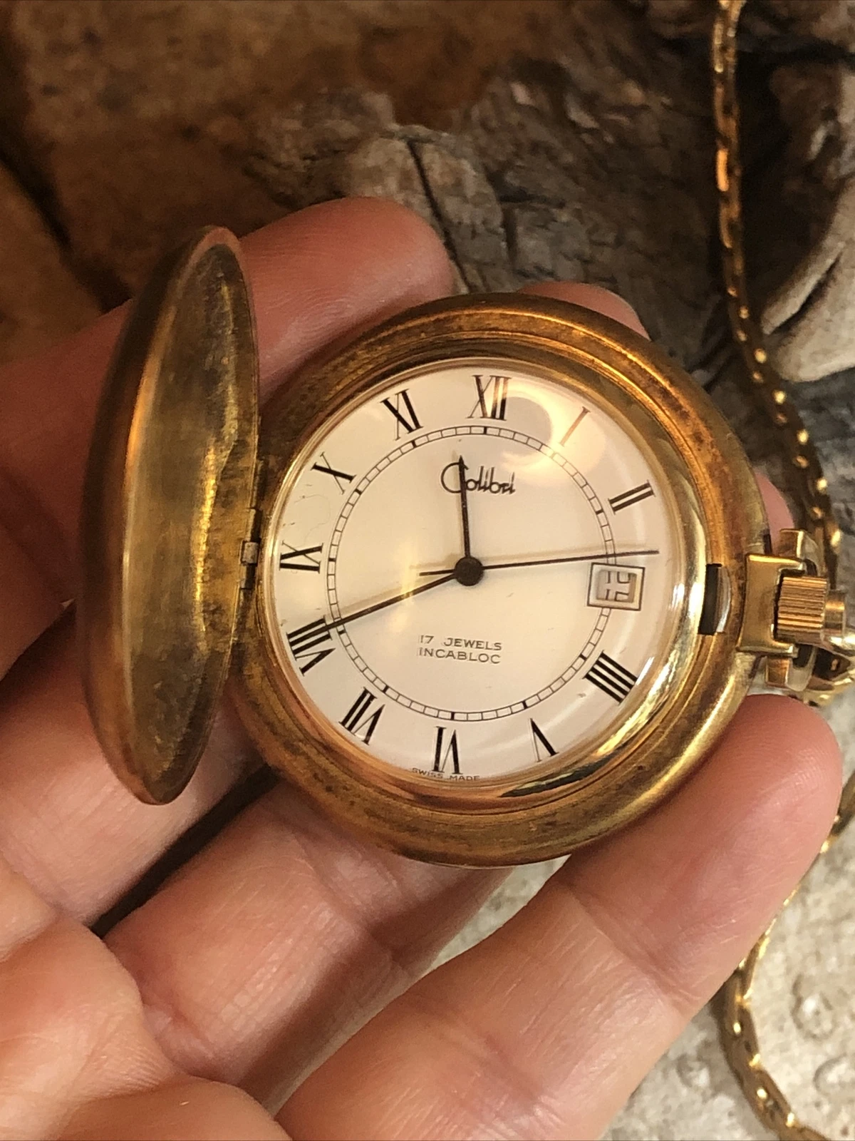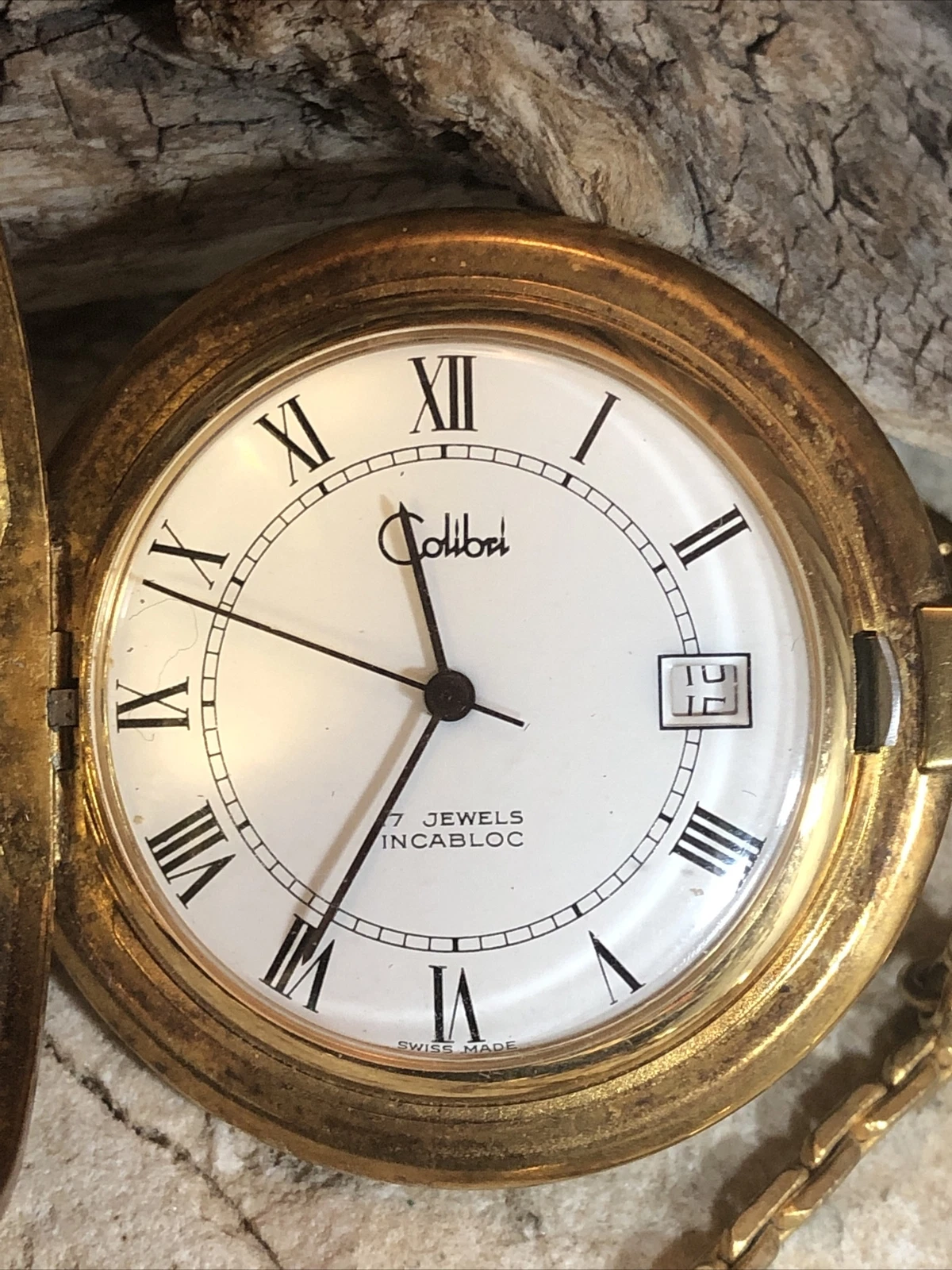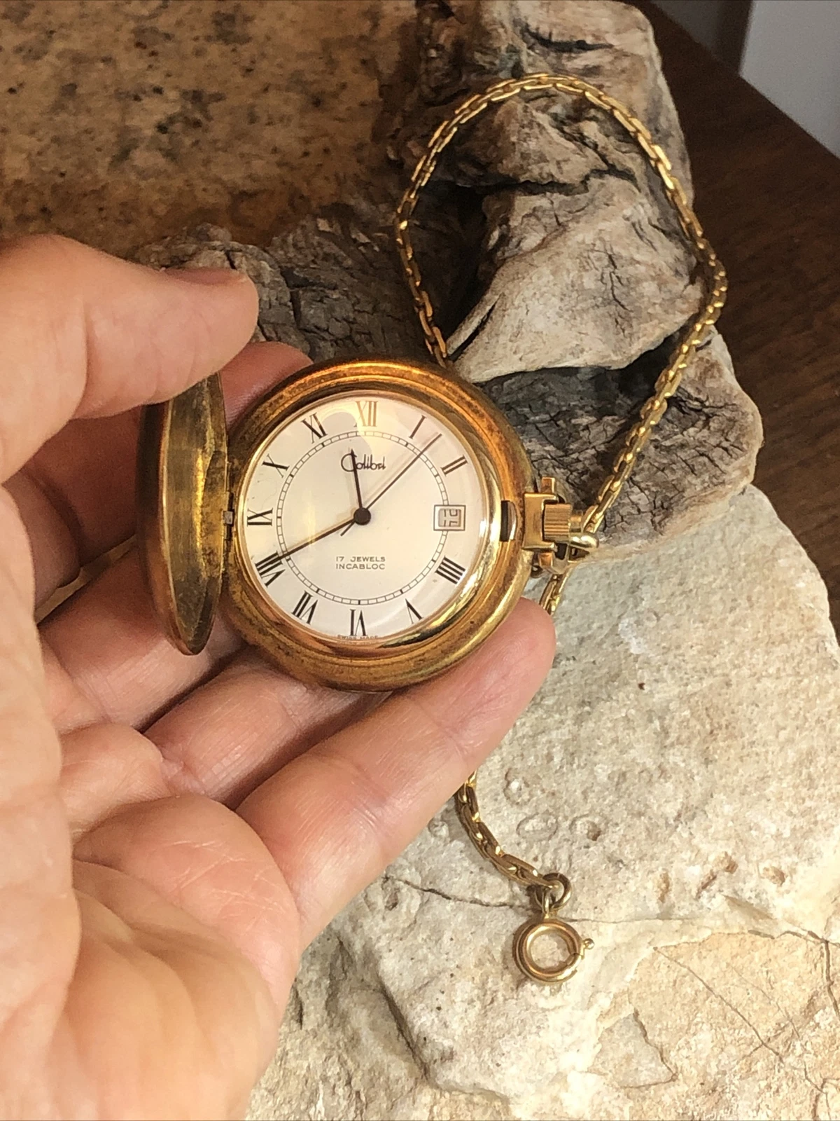 Vintag Gold tone Mechanical Colibri 17 Jewels Incablock Pocket Watch with Chain
