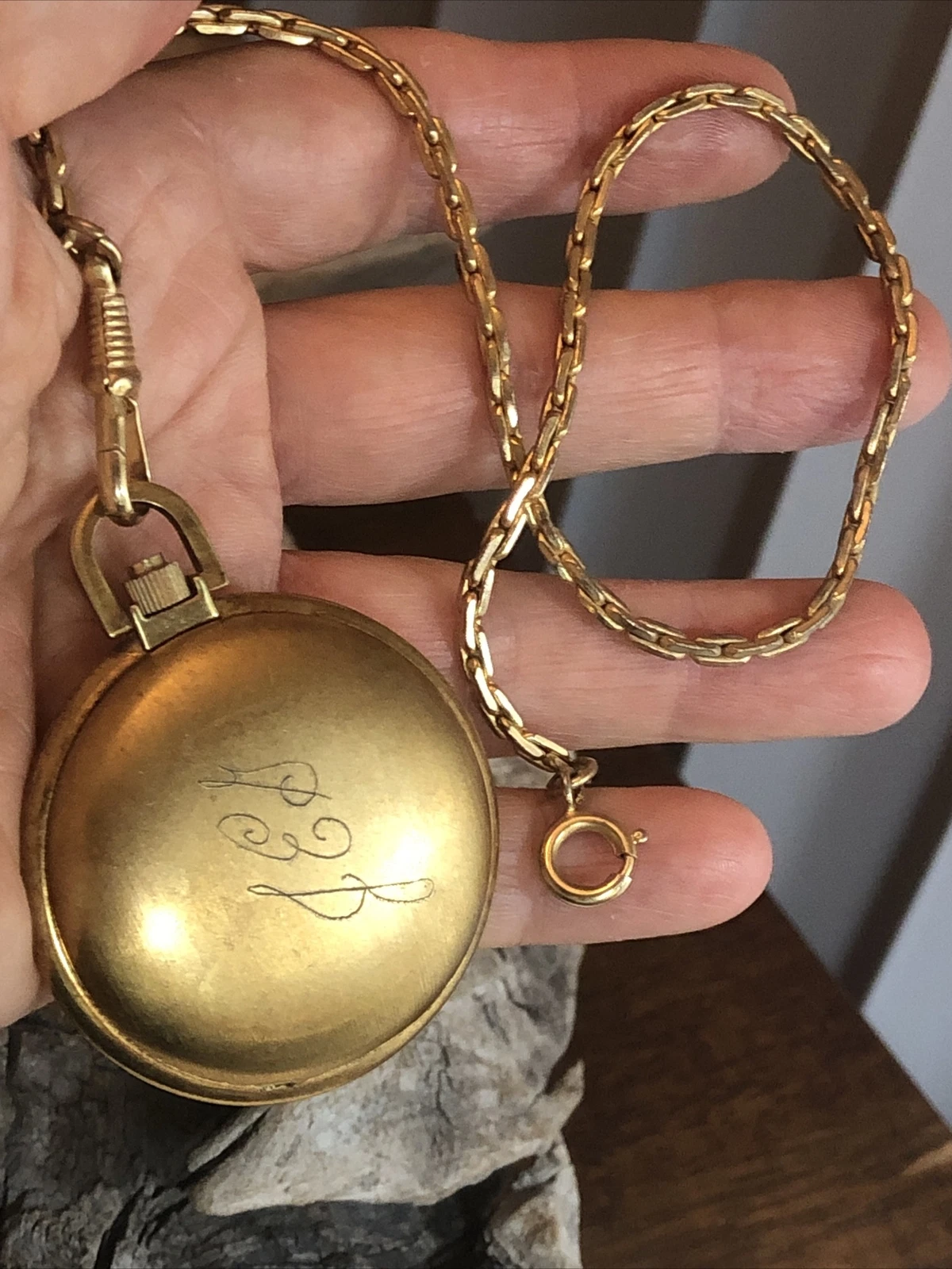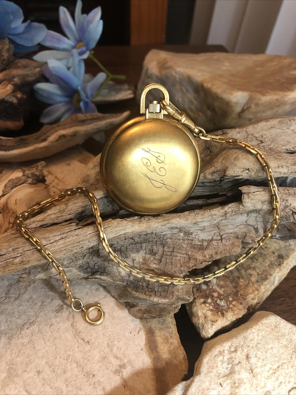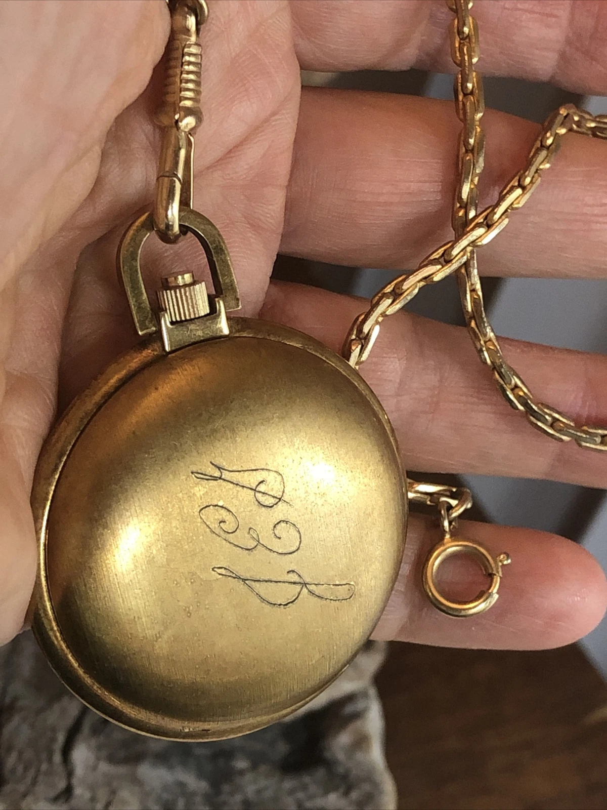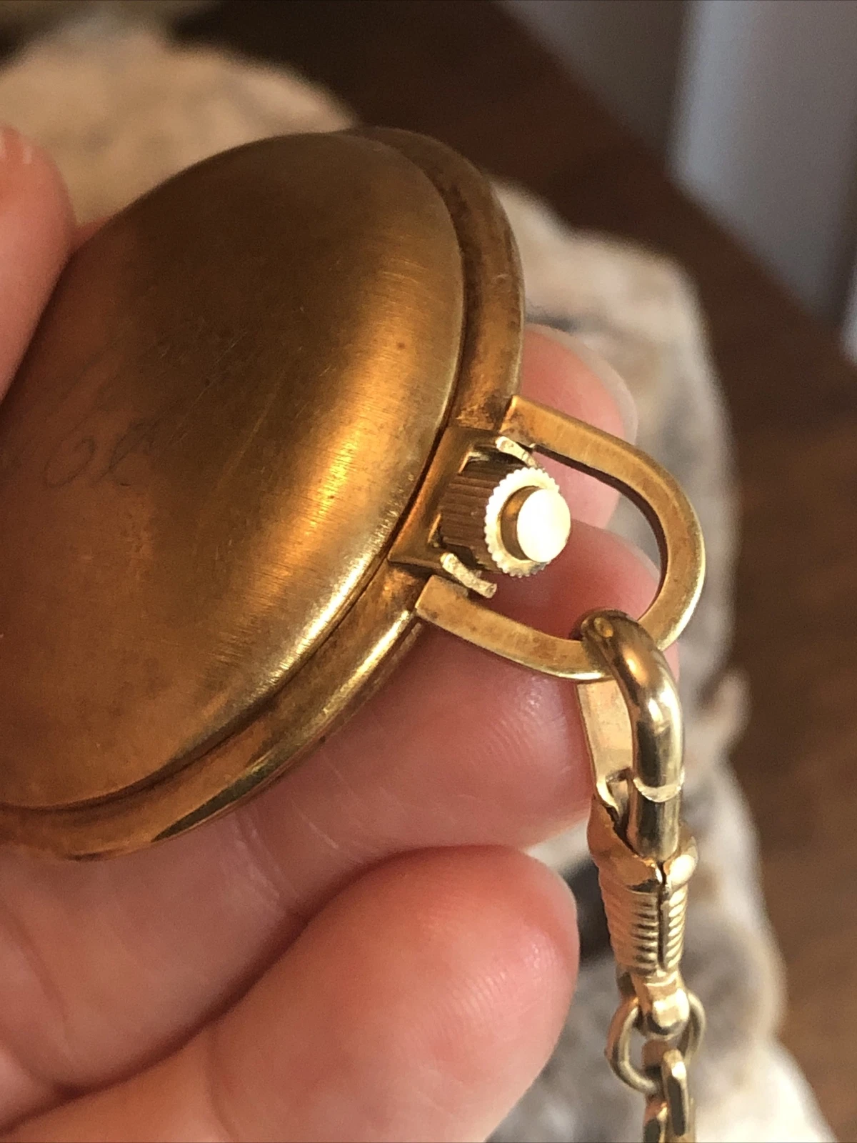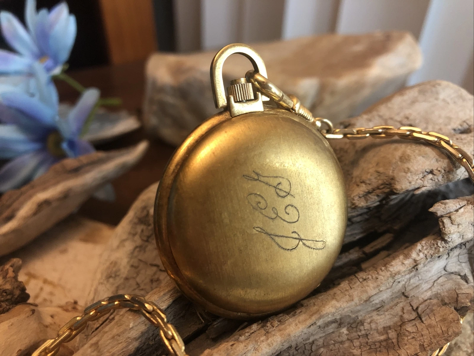 Vintag Gold tone Mechanical Colibri 17 Jewels Incablock Pocket Watch with Chain