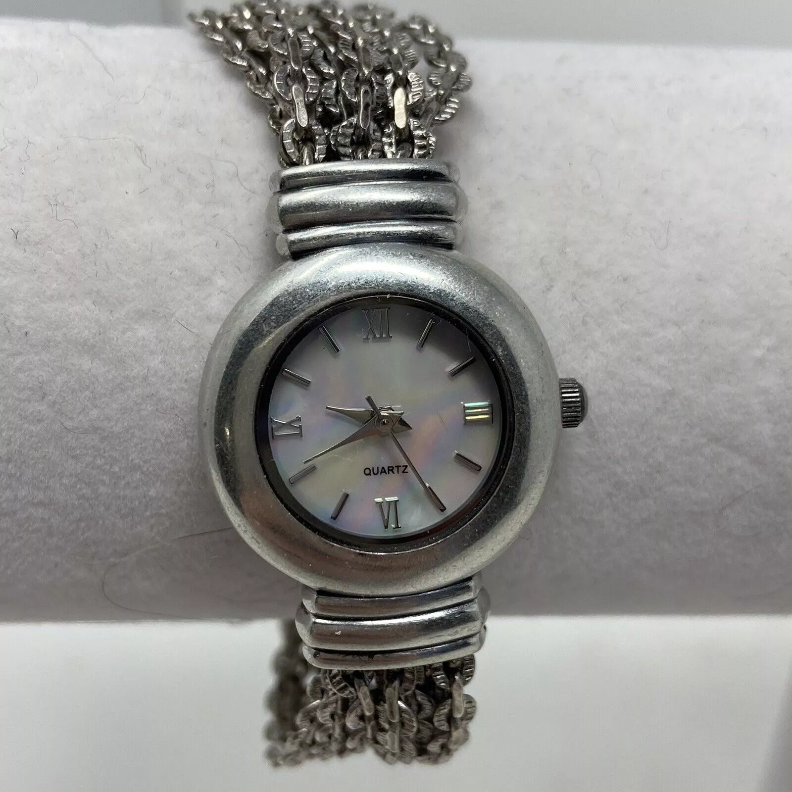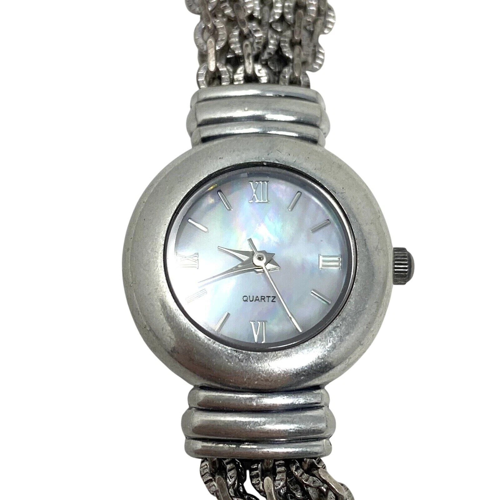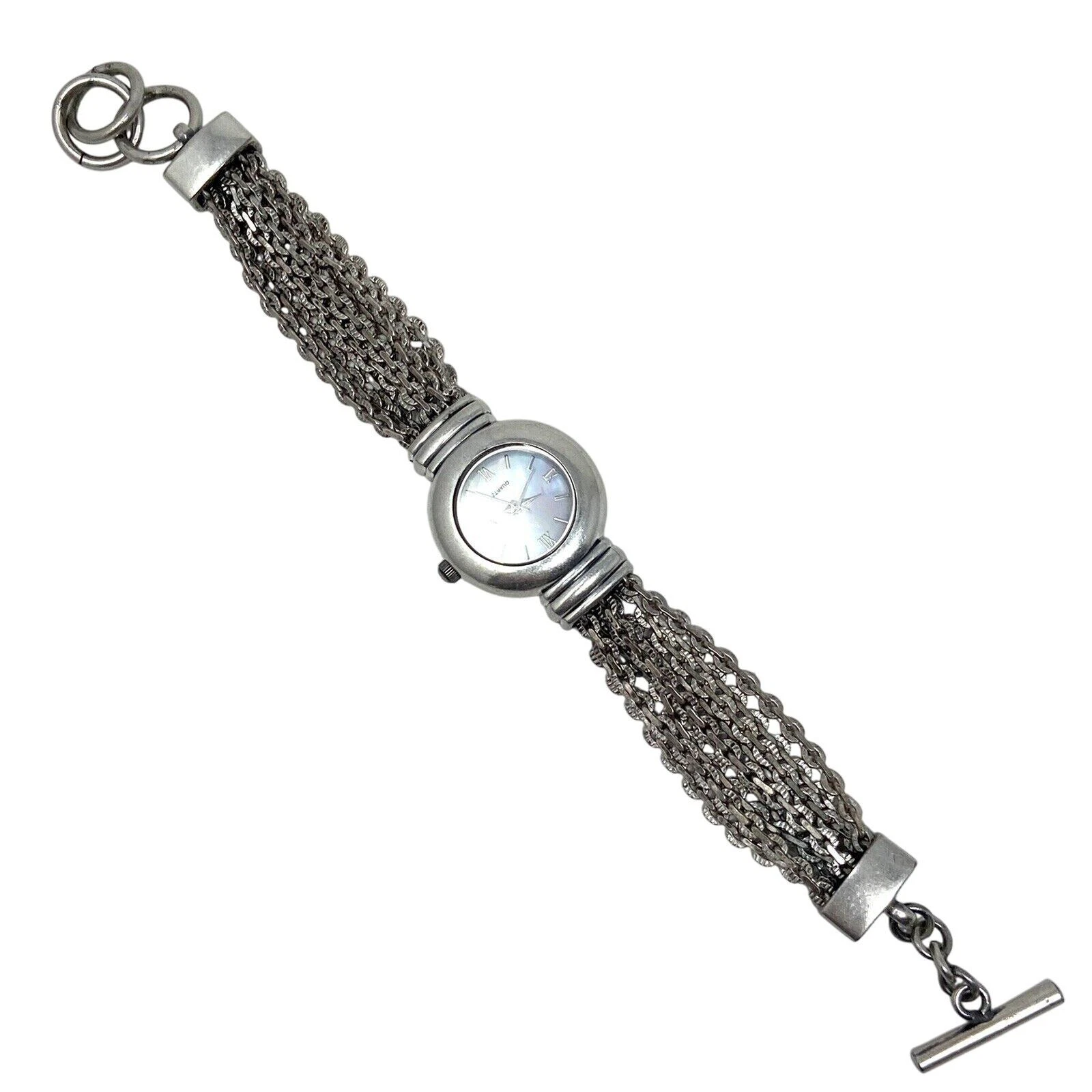 J Jill Ladies Silver Plated Multi Chain Wristwatch Mother Of Pearl Face