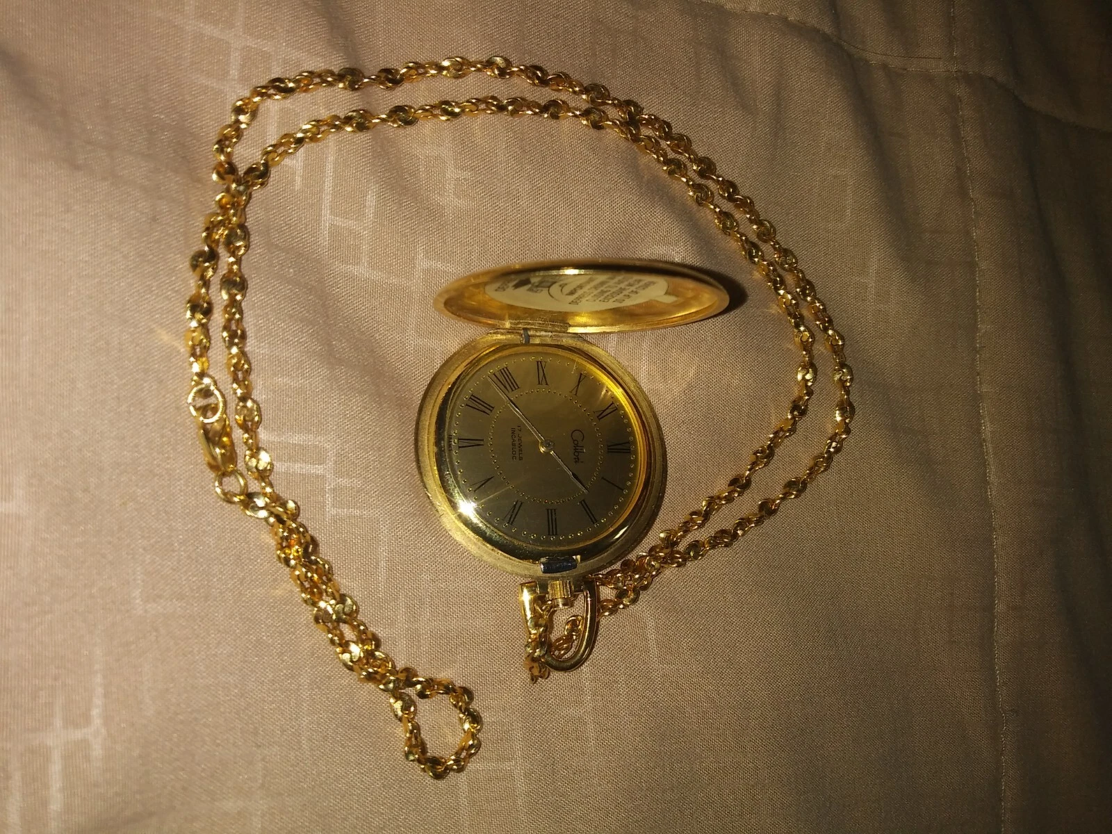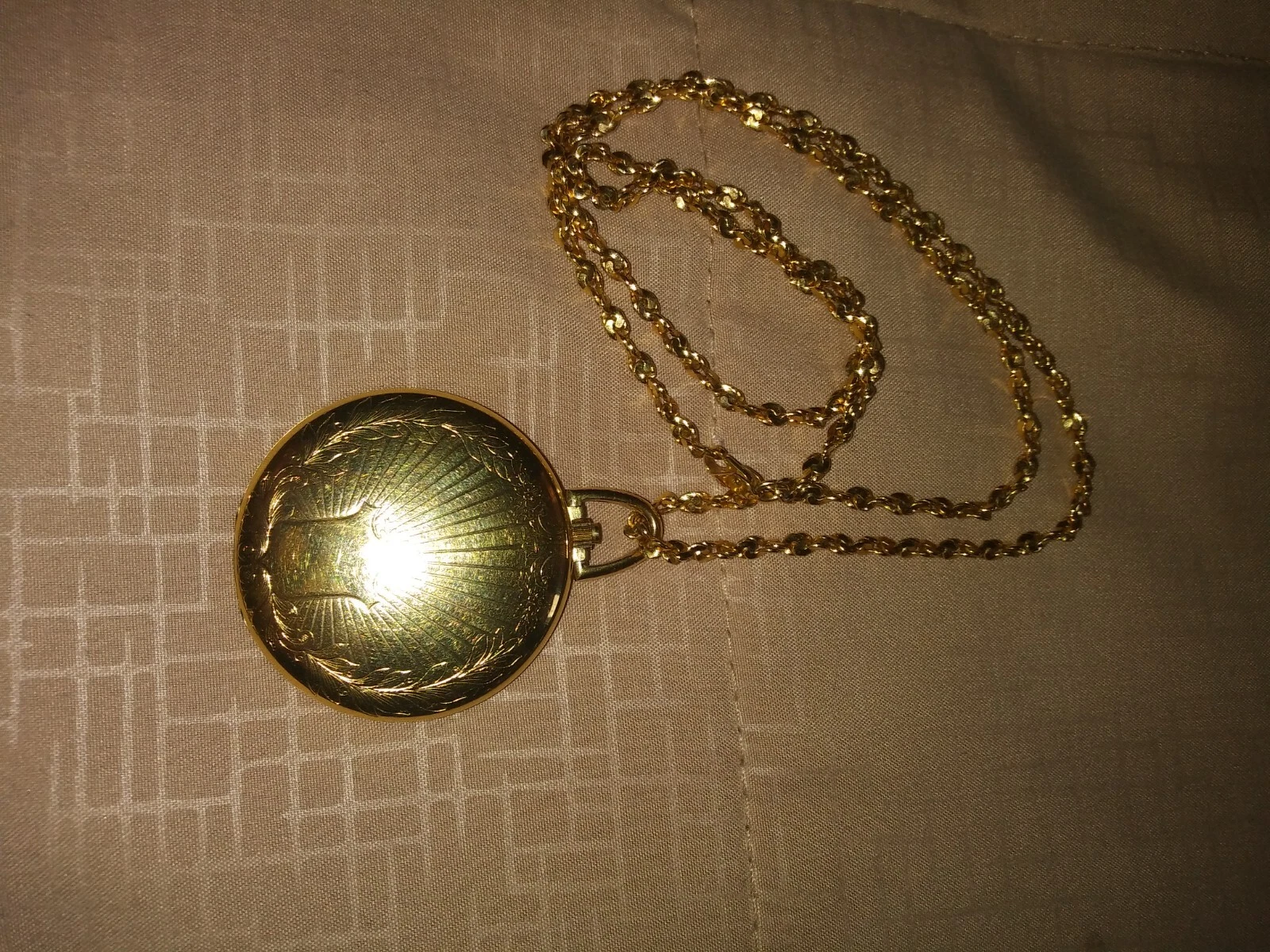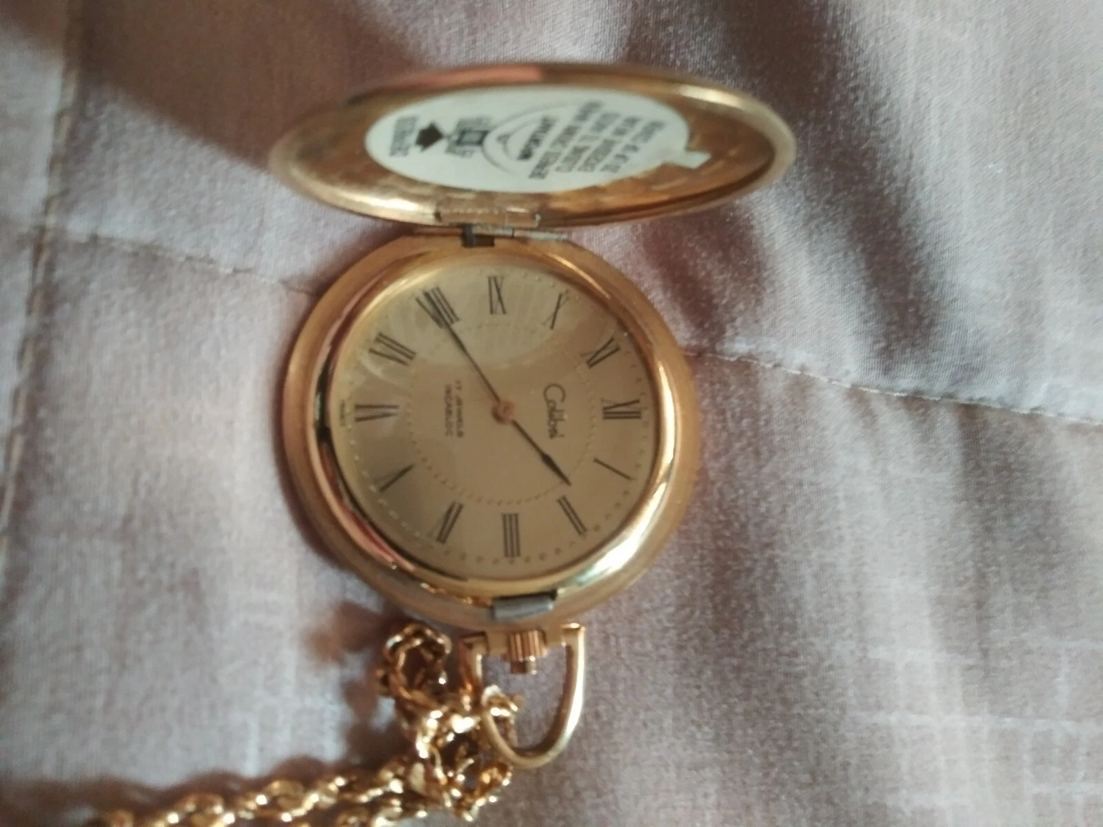 Colibri 17 Jewel Gold Pocket watch with chain, Wind up and in perfect condition.