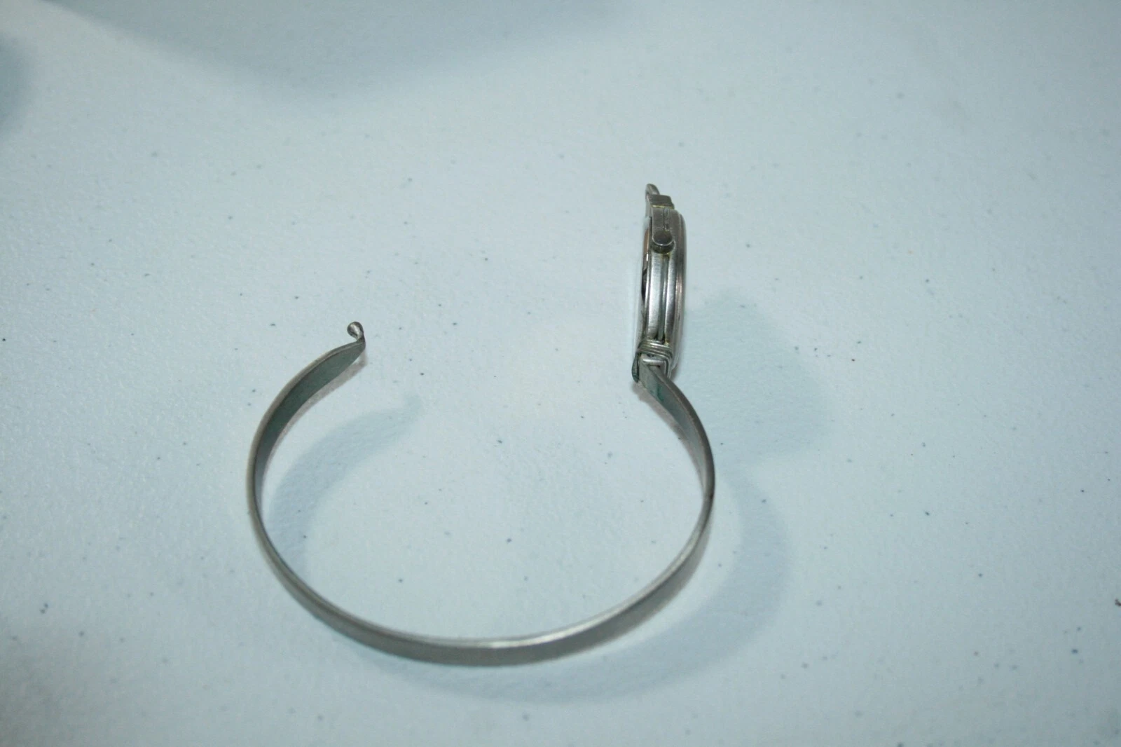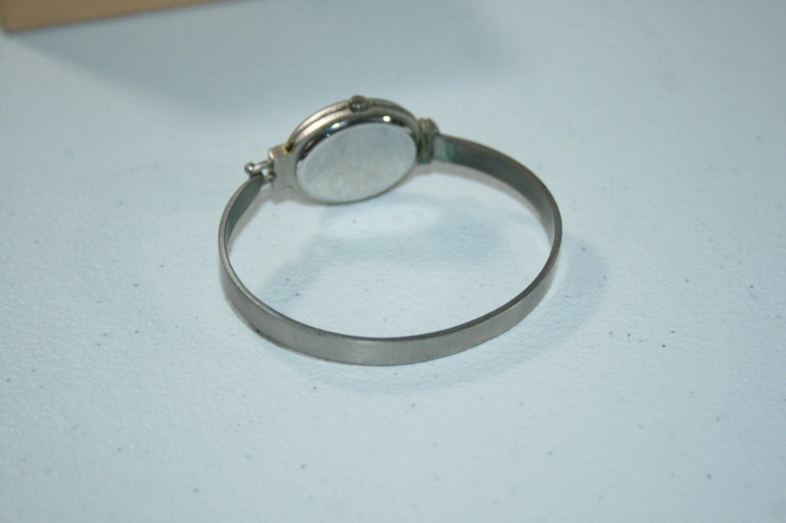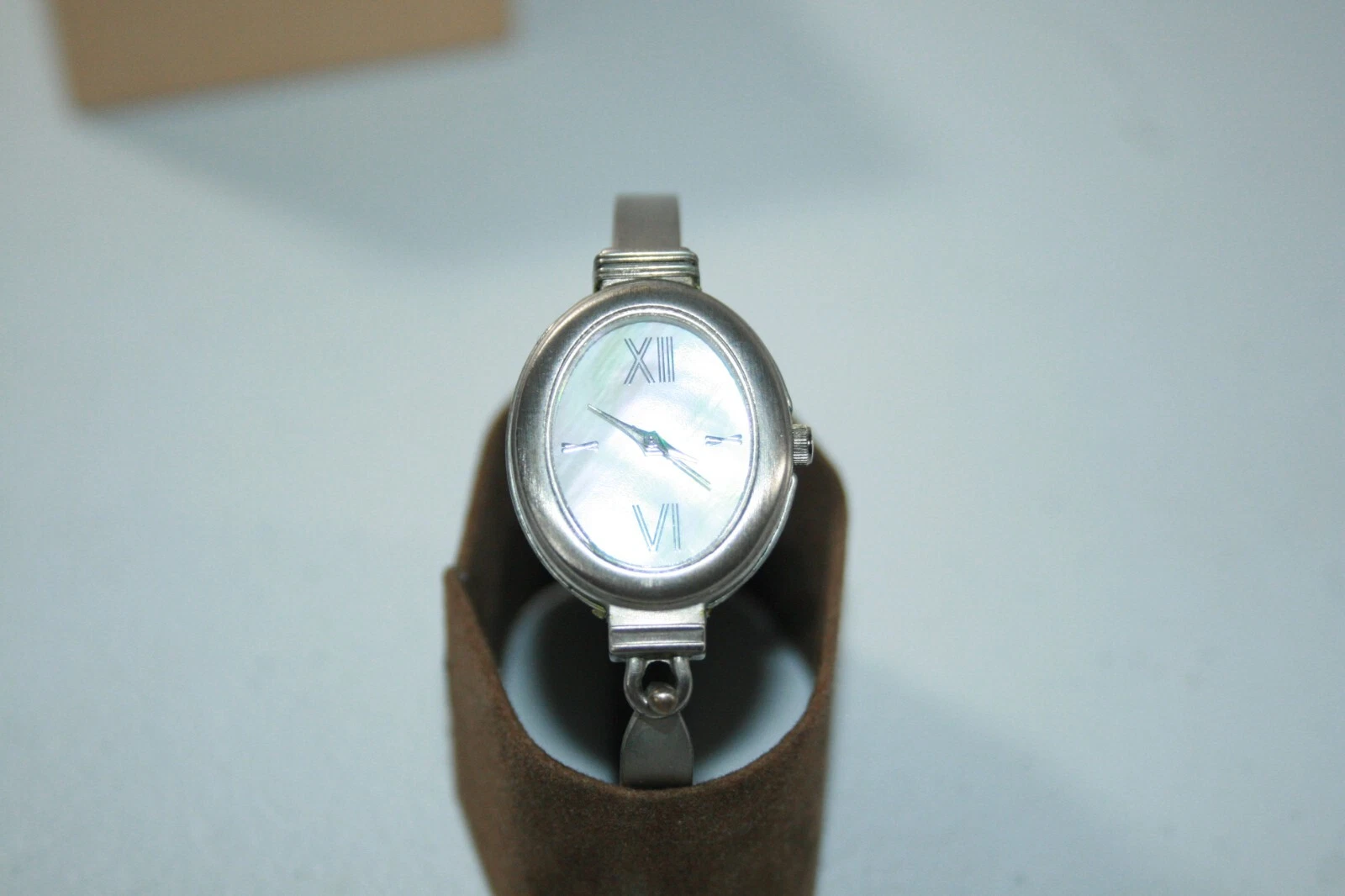 Vintage J Jill Ladies Silver MOP Dial Oval Cuff Bangle Analog Quartz Watch W Box