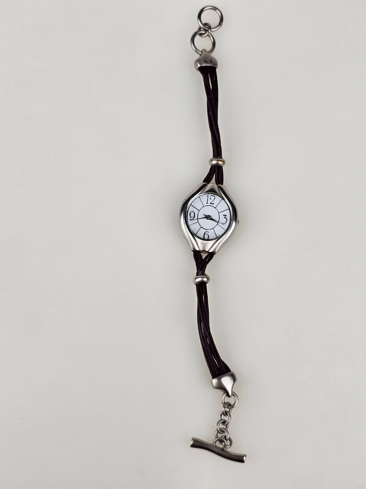 J. Jill 15-214 Japan Quartz Silver Tone White Dial Wristwatch Tested Working