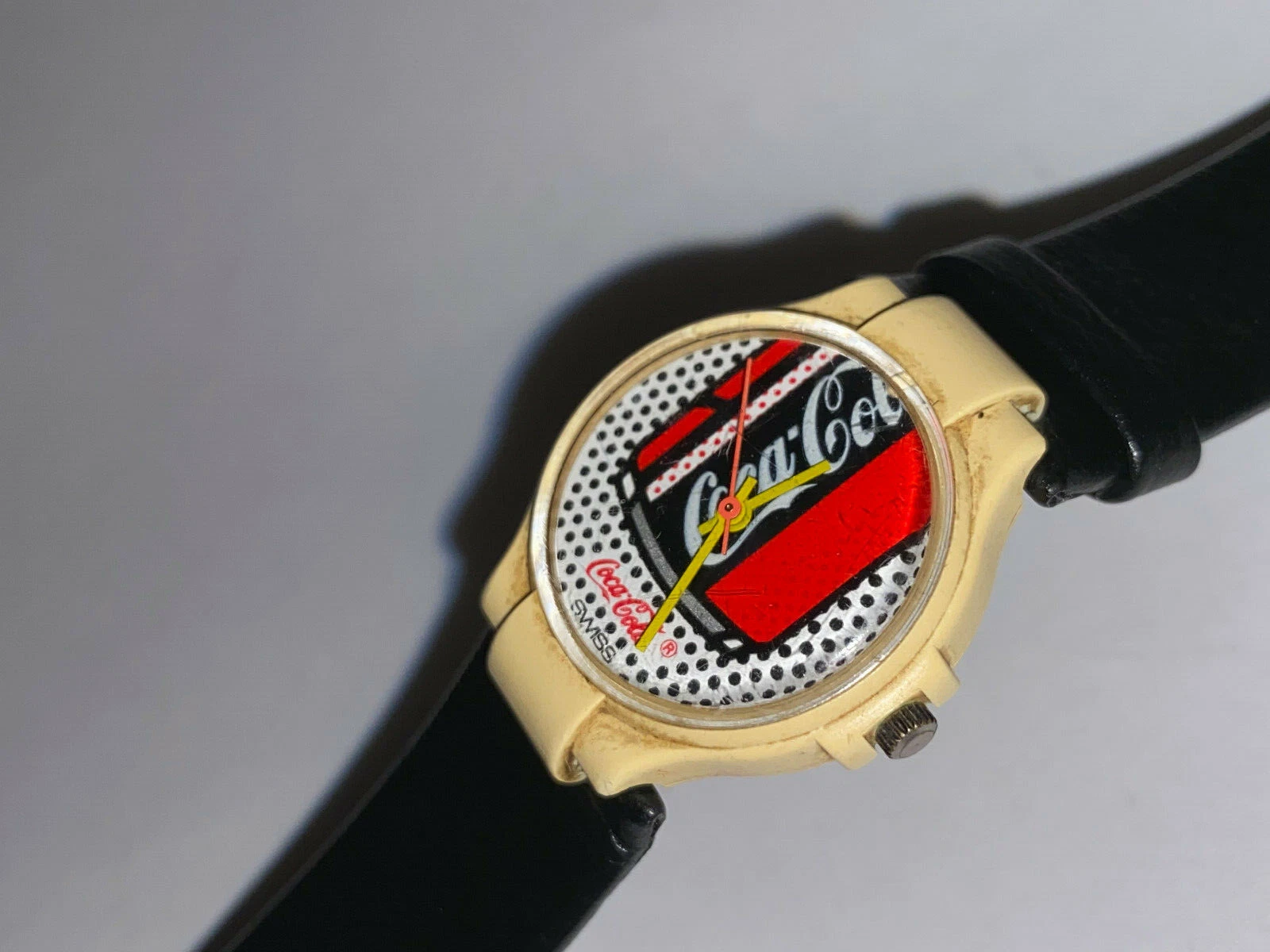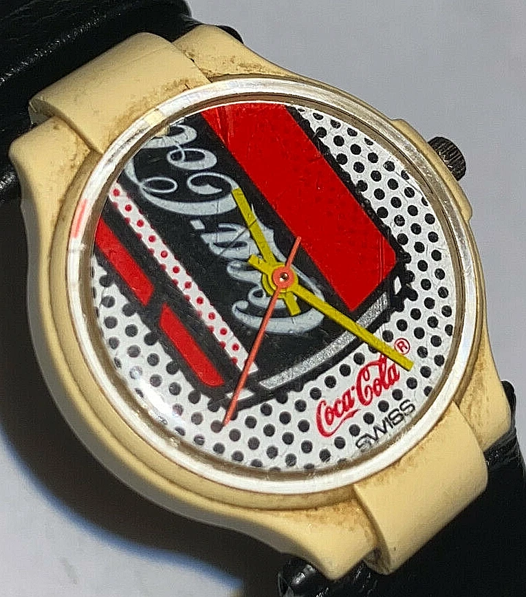 Retro Coca Cola Coke Swiss Can Dots Working Watch I.W. Suisse Leather Band