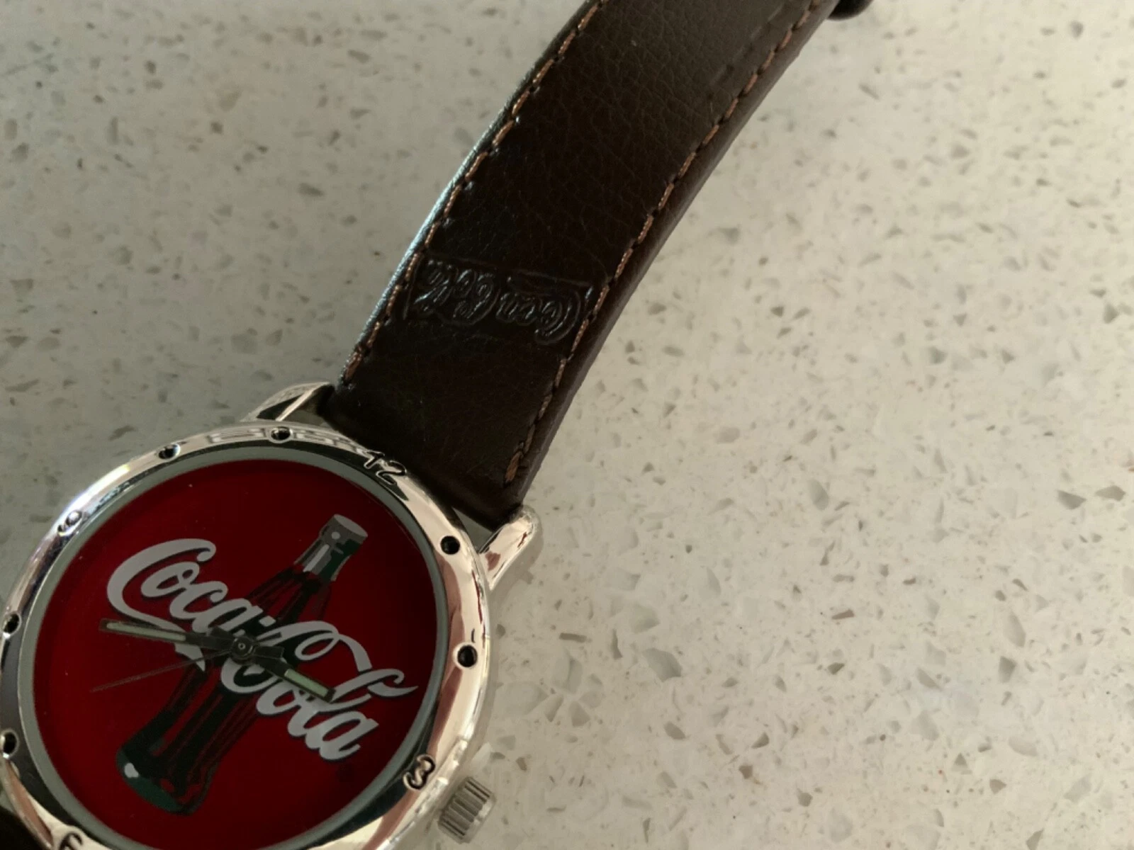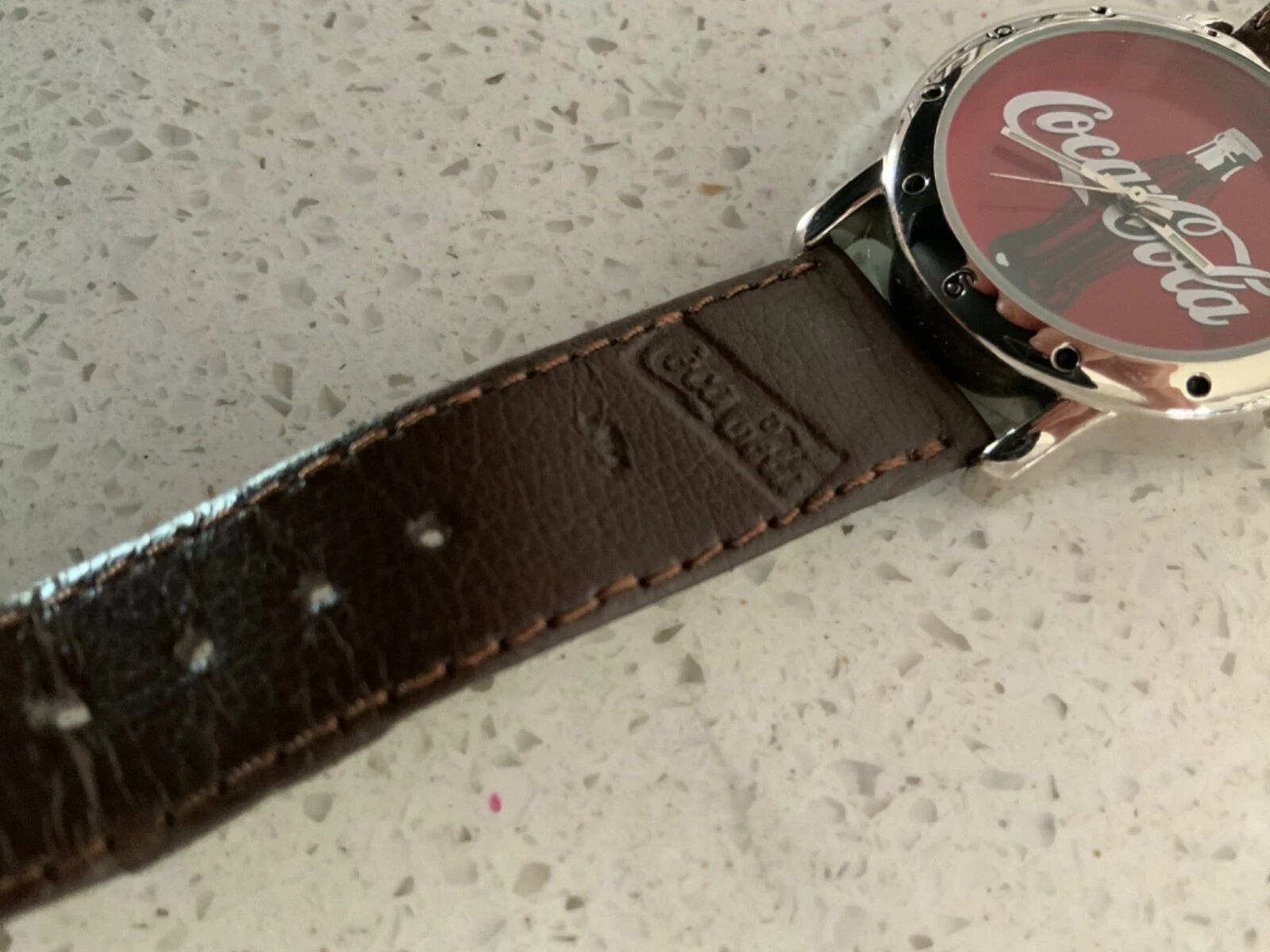 Coca Cola 2002 Watch with Leather Band W/Coca Cola Logo - Needs battery
